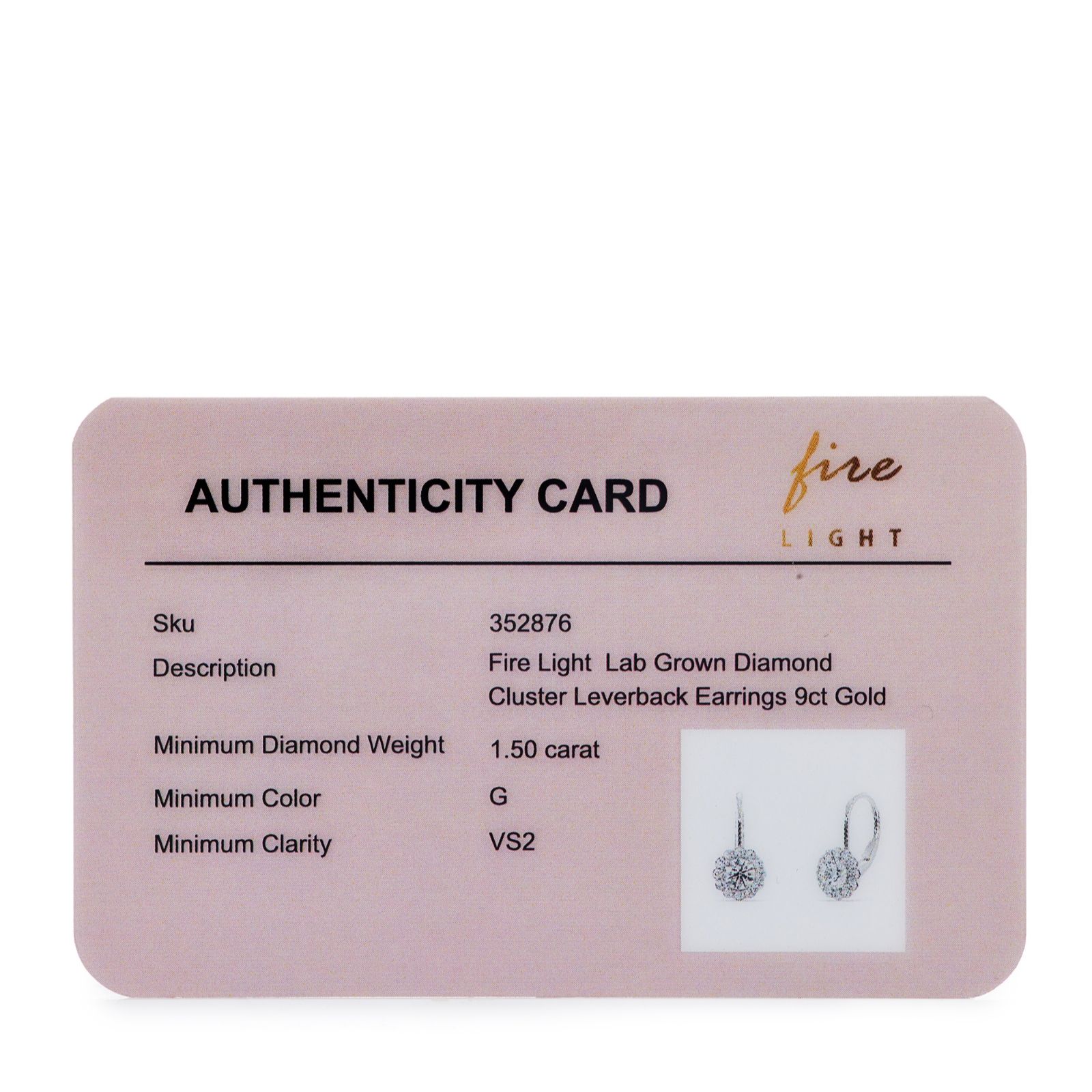 Express confidence with the Fire Light 1.50ct lab-grown diamond cluster leverback earrings, a radiant display of timeless elegance. Crafted from gold, each earring showcases a stunning arrangement of round brilliant cut lab-grown diamonds with exceptional clarity and colour, offering dazzling sparkle from every angle. Perfect for elevating any look, these earrings bring luxurious sophistication to your jewellery collection.