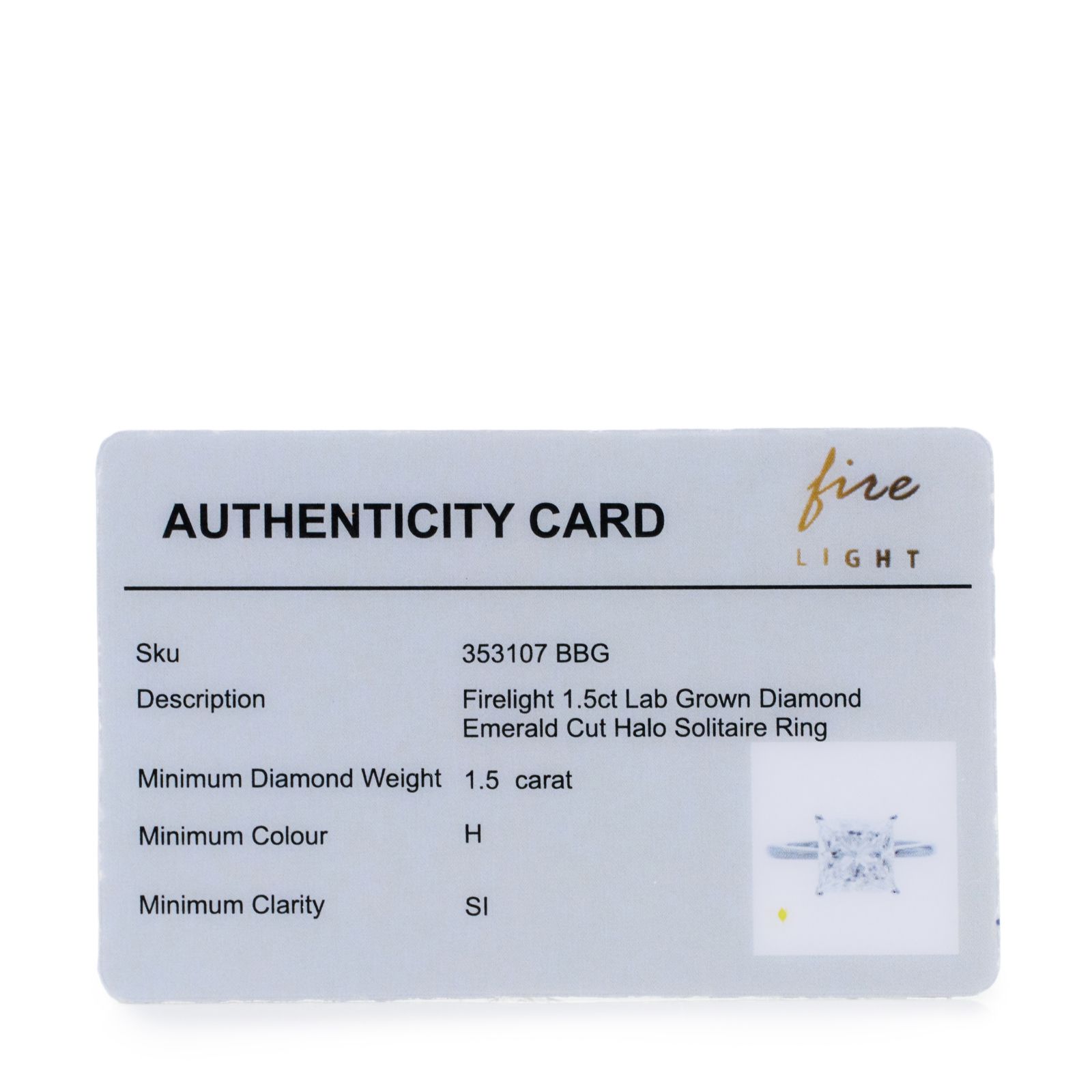 Let your style shine with the Firelight 1.5ct Lab Grown Diamond Emerald Cut Halo Solitaire Ring, a breathtaking piece crafted in luxurious platinum. At its heart sits a stunning emerald cut lab grown diamond, encircled by a halo of dazzling round stones, all meticulously set to catch the light with every movement. This elegant ring is perfect for marking lifes special moments or elevating your everyday look.