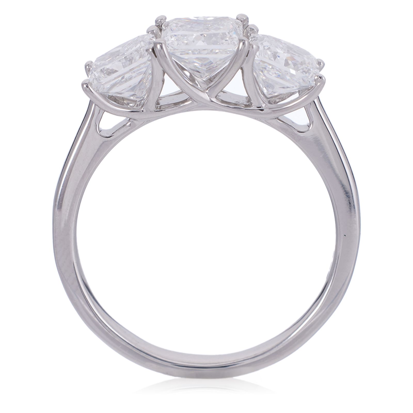 - Brilliant princess cut white lab grown diamonds: 1 x (5.5mm x 5.5mm), 2 x (4.7mm x 4.7mm)