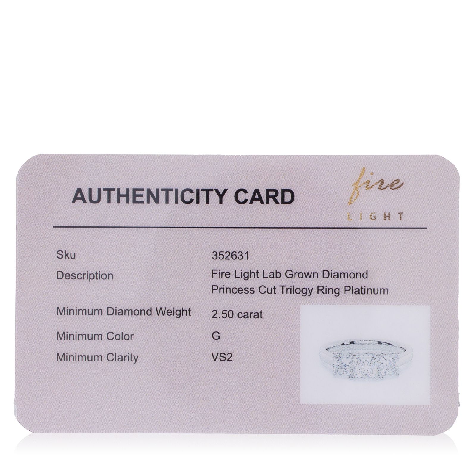 Celebrate lifes special moments with the Firelight trilogy ring, showcasing a trio of dazzling lab grown princess cut diamonds set in radiant platinum. Each stone is carefully selected for its exceptional brilliance, with a centrepiece flanked by two perfectly matched diamonds, making this ring a beautiful symbol of past, present and future for your jewellery collection.