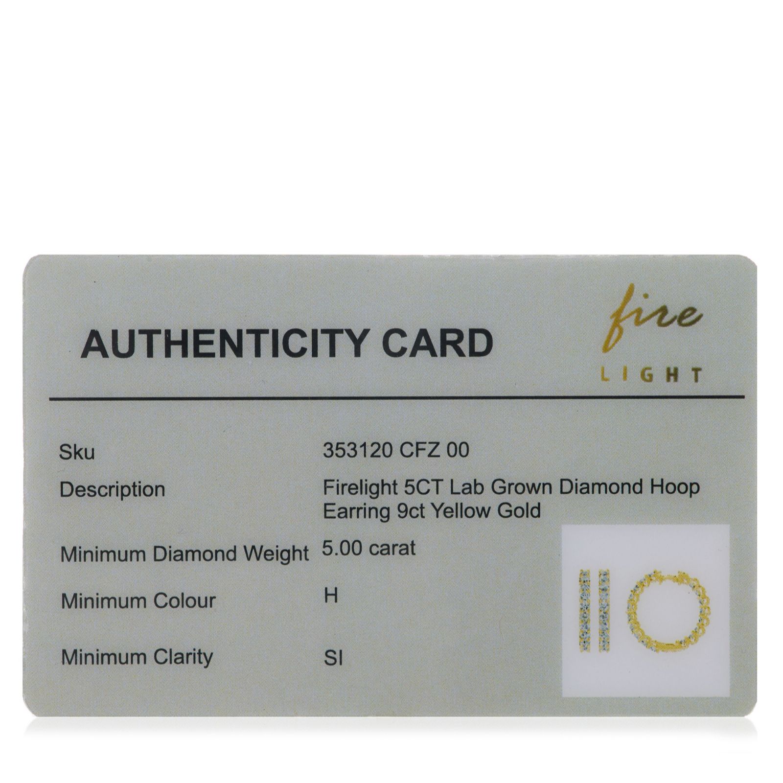 Turn heads with the Firelight 5ct Lab Grown Diamond Hoop Earrings, a stunning pair crafted in luxurious 9ct gold. Each hoop dazzles with a spectacular array of full cut white lab grown diamonds, offering H colour and SI clarity for radiant brilliance. The elegant post and huggie fastening ensures a secure fit, making these hoops a sparkling statement for any special occasion or a cherished addition to your jewellery box.