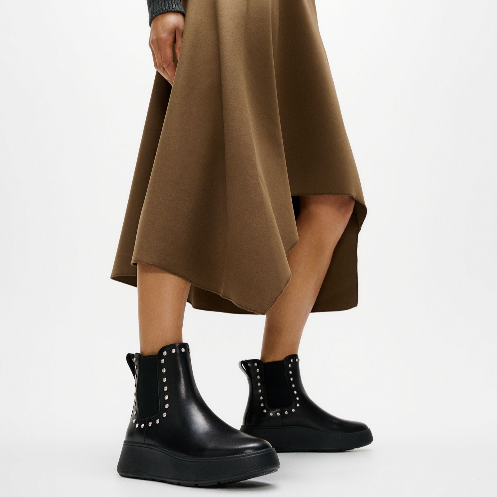 Slip into timeless style with the F-Mode Gem-Trim Leather Flatform Chelsea Boots from Fitflop, where iconic design meets a hint of sparkle. These boots blend classic lines and modern flair with their subtle gem accents, making them a smart pick for everything from relaxed weekends to busy days in the city. For effortless style, team them with slim jeans or a midi skirt and a cosy knit.