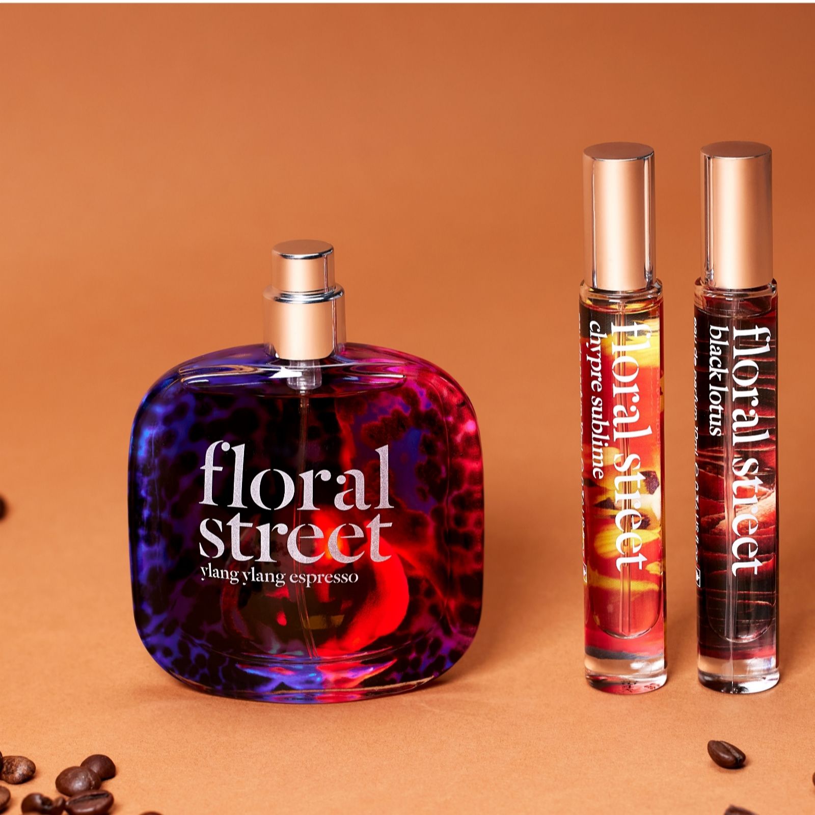 - will you opt for the Woody & Spicy collection, featuring rich Ylang Ylang Espresso in a 50ml bottle, along with 10ml bottles of elegant Chypre Sublime and sensual Black Lotus? Or will you choose the Modern Florals collection, boasting a 50ml bottle of bright Neon Rose and 10ml bottles of dreamy Wonderland Peony and fruity Sweet Almond Blossom?