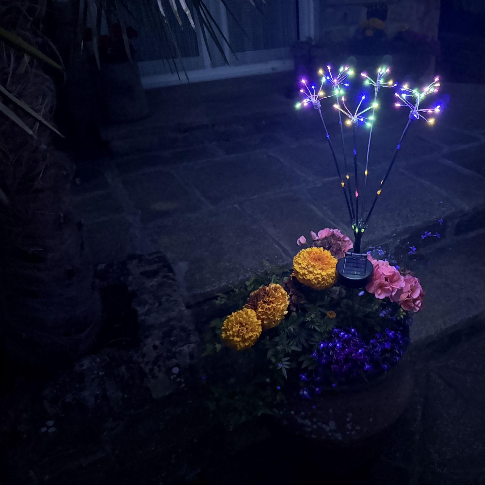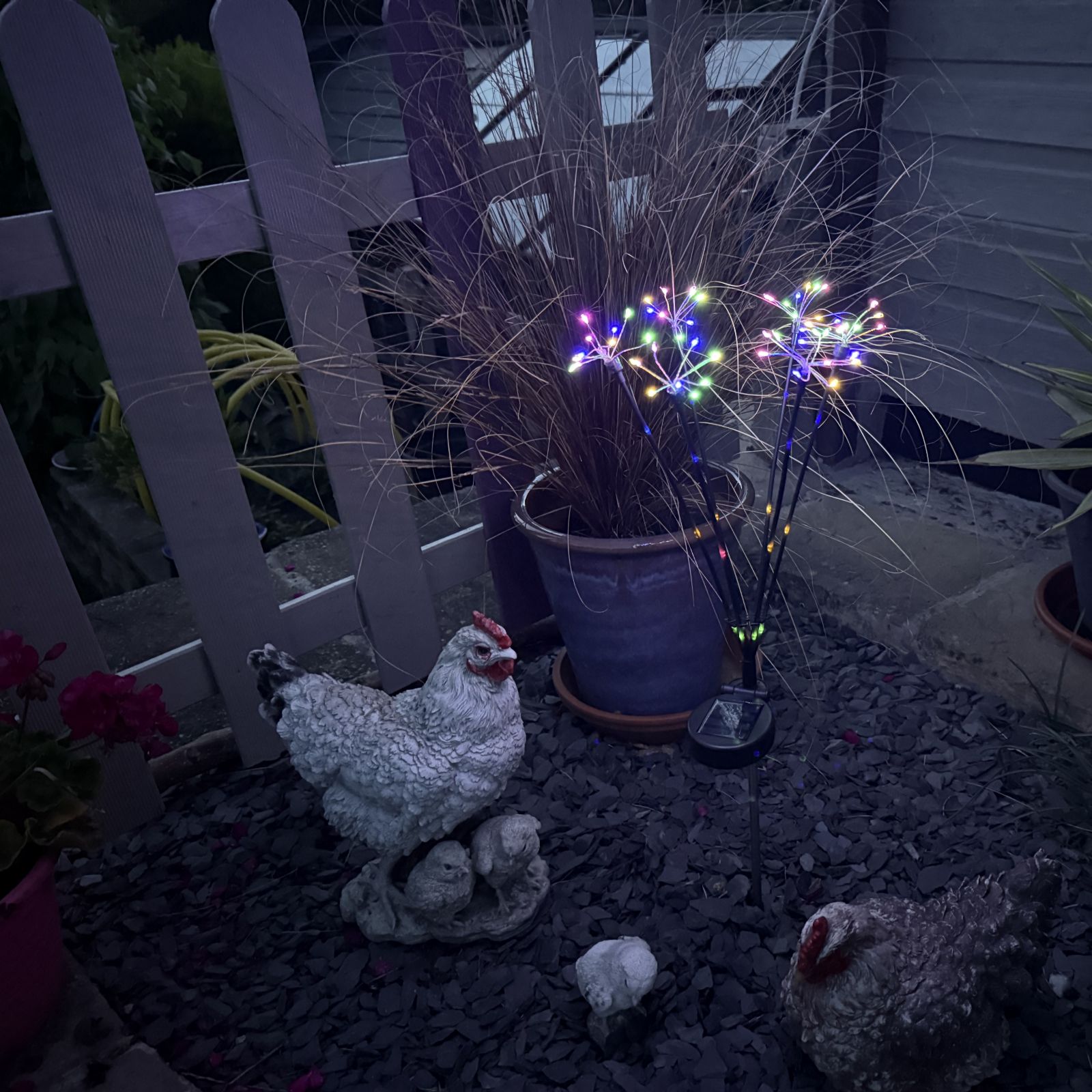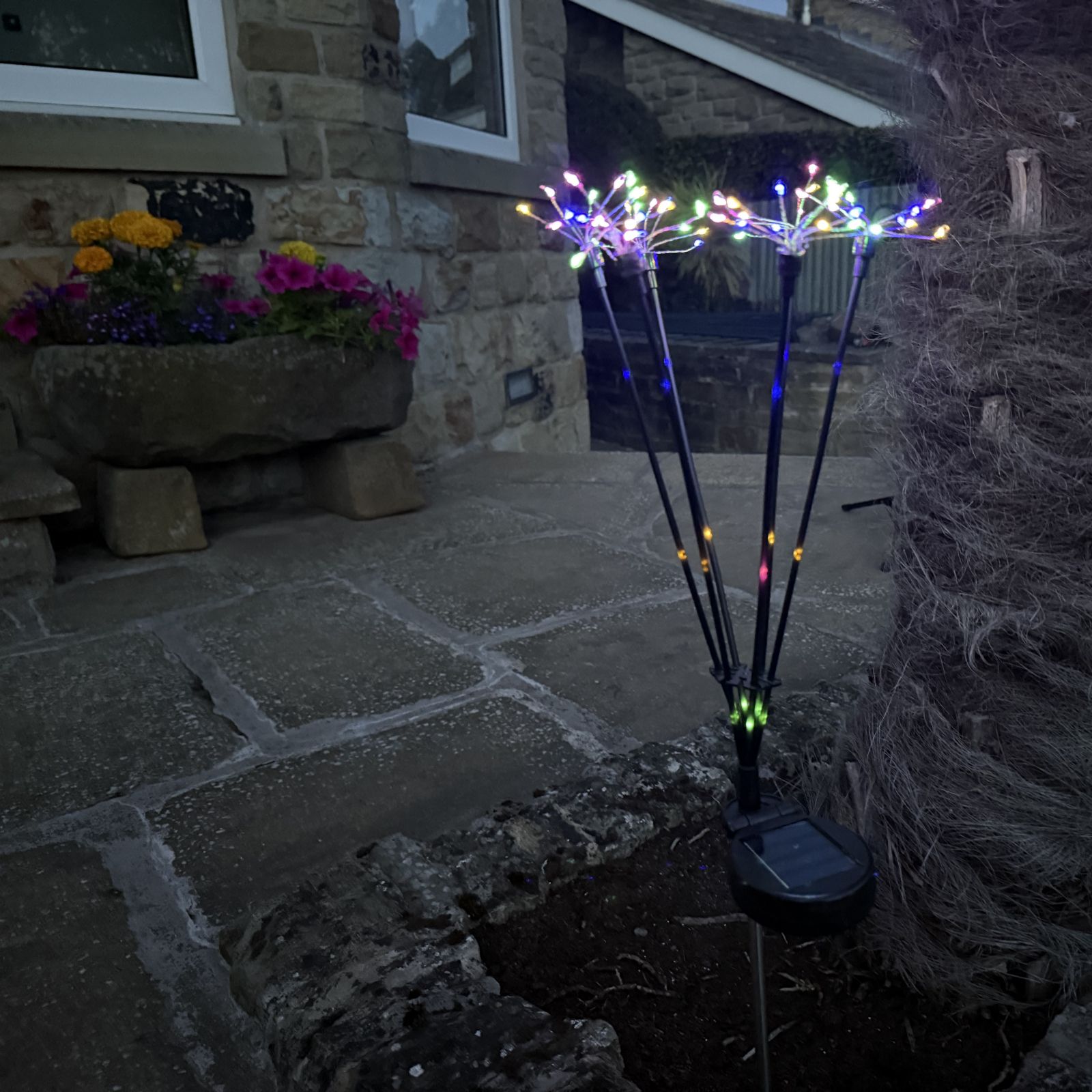 Bring a magical touch to your evenings with the Flourish set of two solar fibre lights, designed to bathe your garden in vibrant colour after dusk. Featuring two lighting modes, these decorative outdoor lights can glow steadily or flash for a playful effect, making them perfect for parties, relaxing nights outdoors or adding year-round charm to your patio, lawn or flowerbeds.