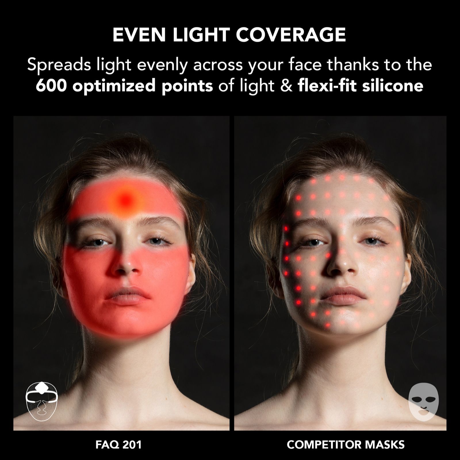 - Innovative flexi-fit translucent optical silicone adapts to facial contours for even light distribution