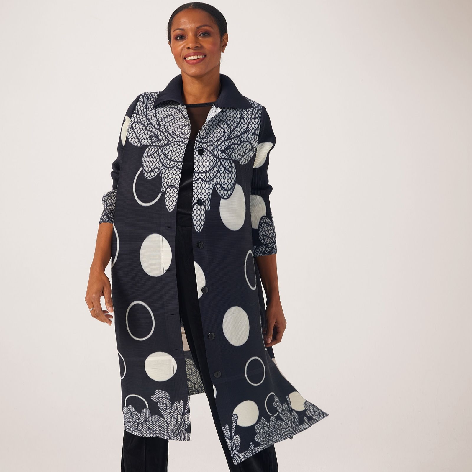 Frank Usher Button Through Pleated Coat Dress with Collar