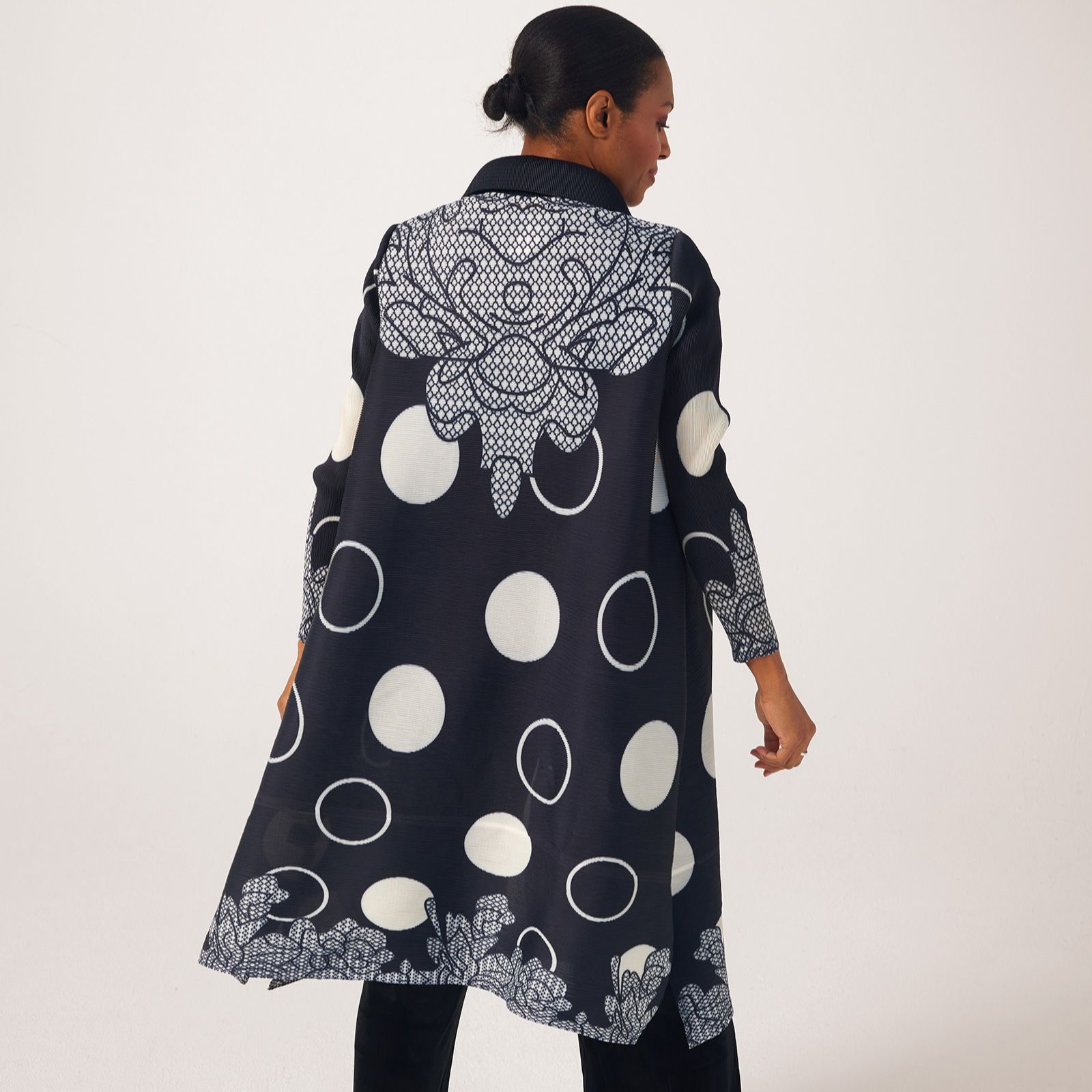 Turn heads in the Frank Usher button-through pleated coat dress. This stunning piece features a collar neck and watch-grazer sleeve length, offering a sophisticated silhouette. The heavily pleated woven fabric with horizontal pleats creates a bouncy effect, adding a playful touch. Perfect for both casual outings and formal events, pair it with ankle boots for a chic daytime look or with heels for an evening affair.