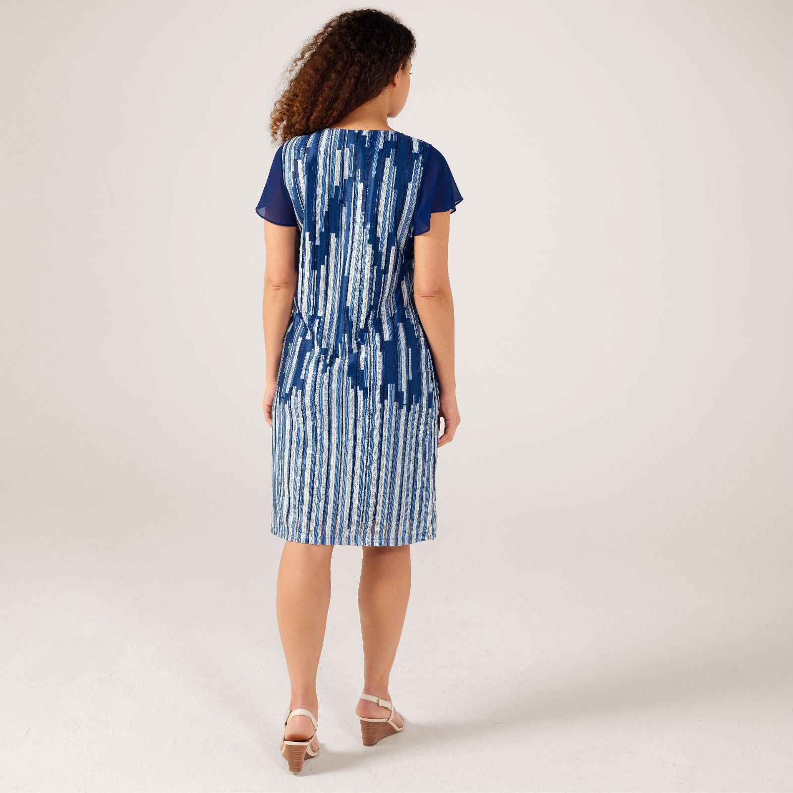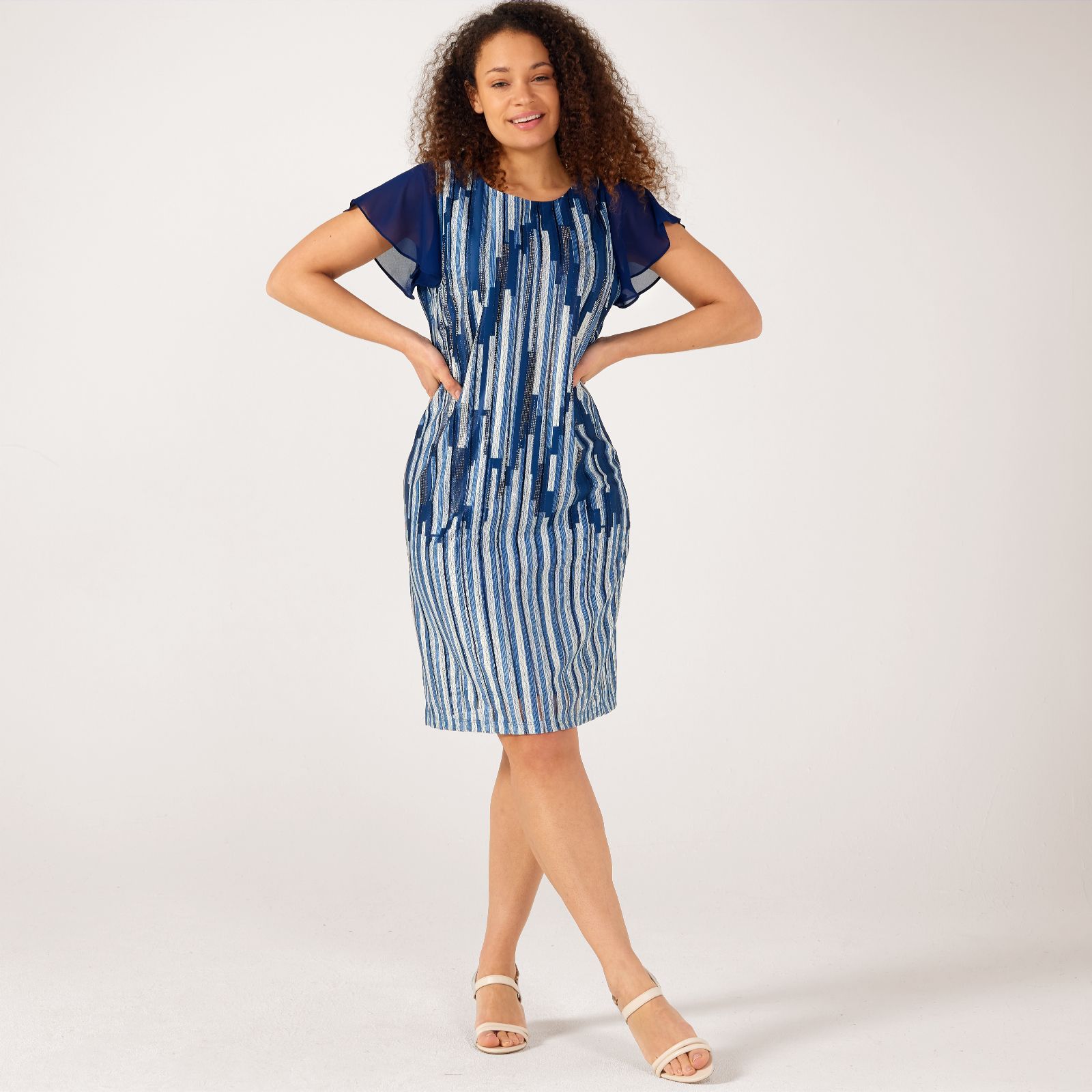 Make every entrance memorable with the Frank Usher chiffon dress, adorned with bling and stud details that catch the light beautifully, creating a rain effect that's simply enchanting. This piece combines the softness of chiffon with a semi-fitted silhouette that gracefully skims just below the knee, ensuring you're the epitome of elegance at any event. Whether it's a sophisticated evening out or a special occasion, this dress promises versatility and style.