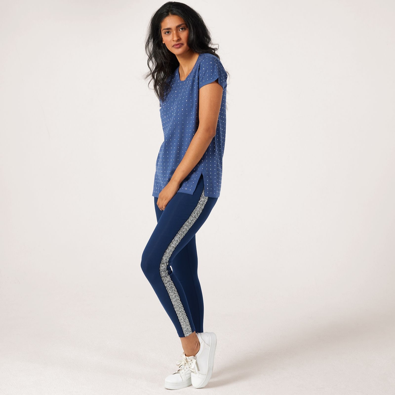 Step out in style with these jersey sequin stripe leggings from Frank Usher. The sleek fitted silhouette is elevated by a shimmering sequin stripe down each side, bringing a touch of glamour to your everyday look. Whether you're dressing up for an evening out or adding sparkle to your off-duty wardrobe, these ankle-length leggings deliver both comfort and eye-catching appeal. Try pairing with a simple tunic and heels for a chic ensemble.