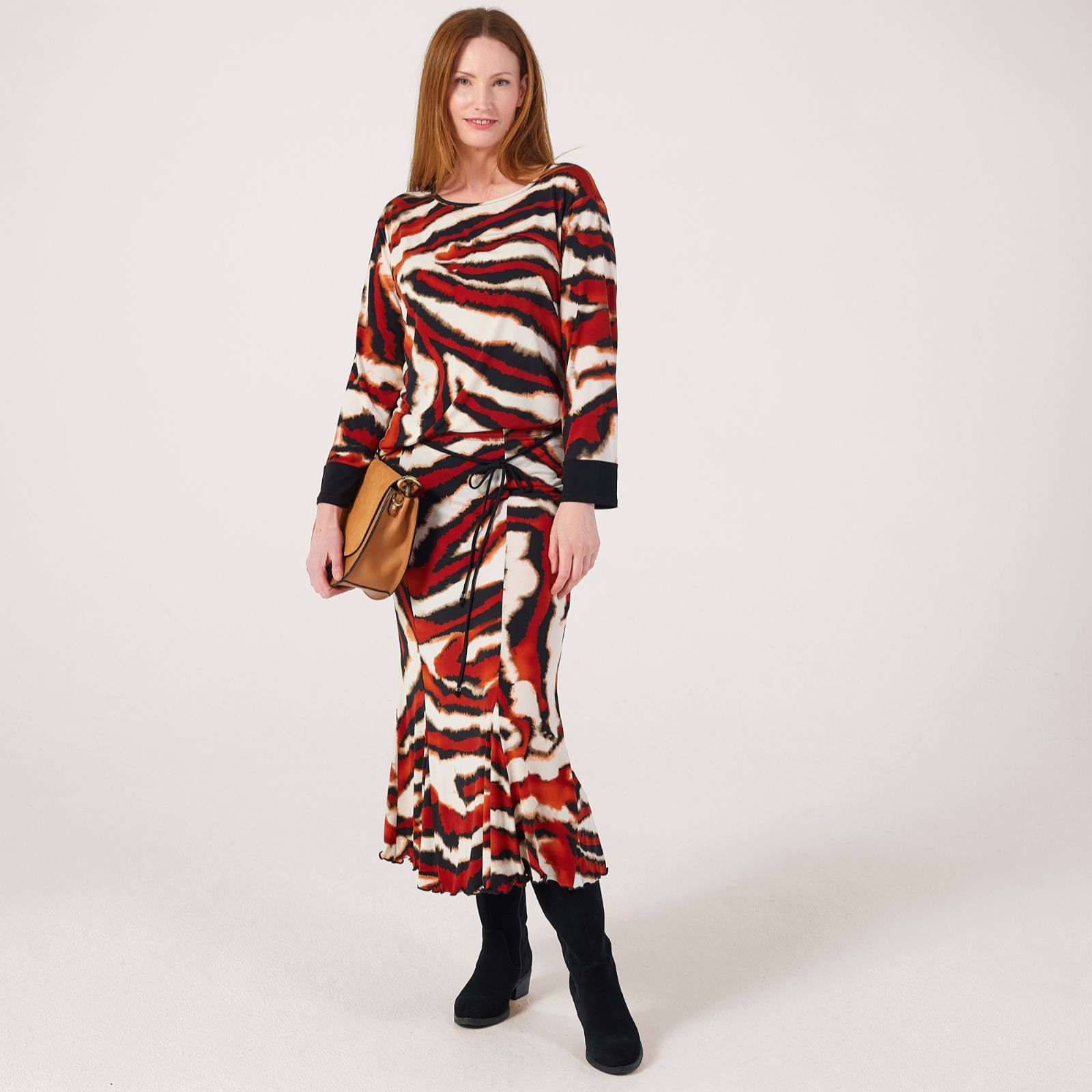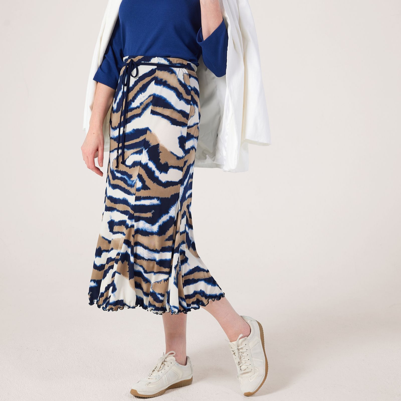 Be ready for any party, weekend brunch or evening out with the gorgeous midaxi printed skirt from Frank Usher, designed in a slinky jersey fabric with panel details that create a beautifully floaty silhouette. The tie waist adds a classic touch, while the semi-fitted shape ensures comfort and style. Pair it with a sleek blouse and heels for a polished look or dress it down with a soft knit and ankle boots for effortless chic.