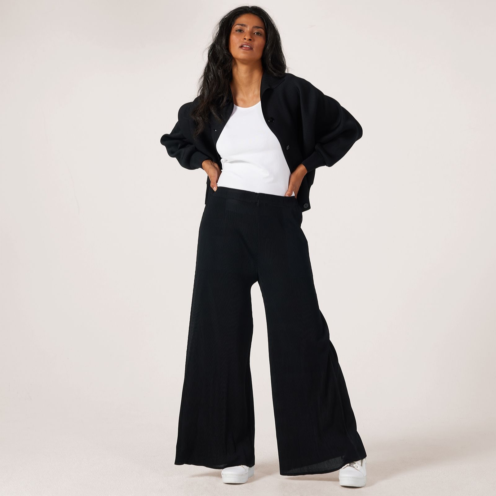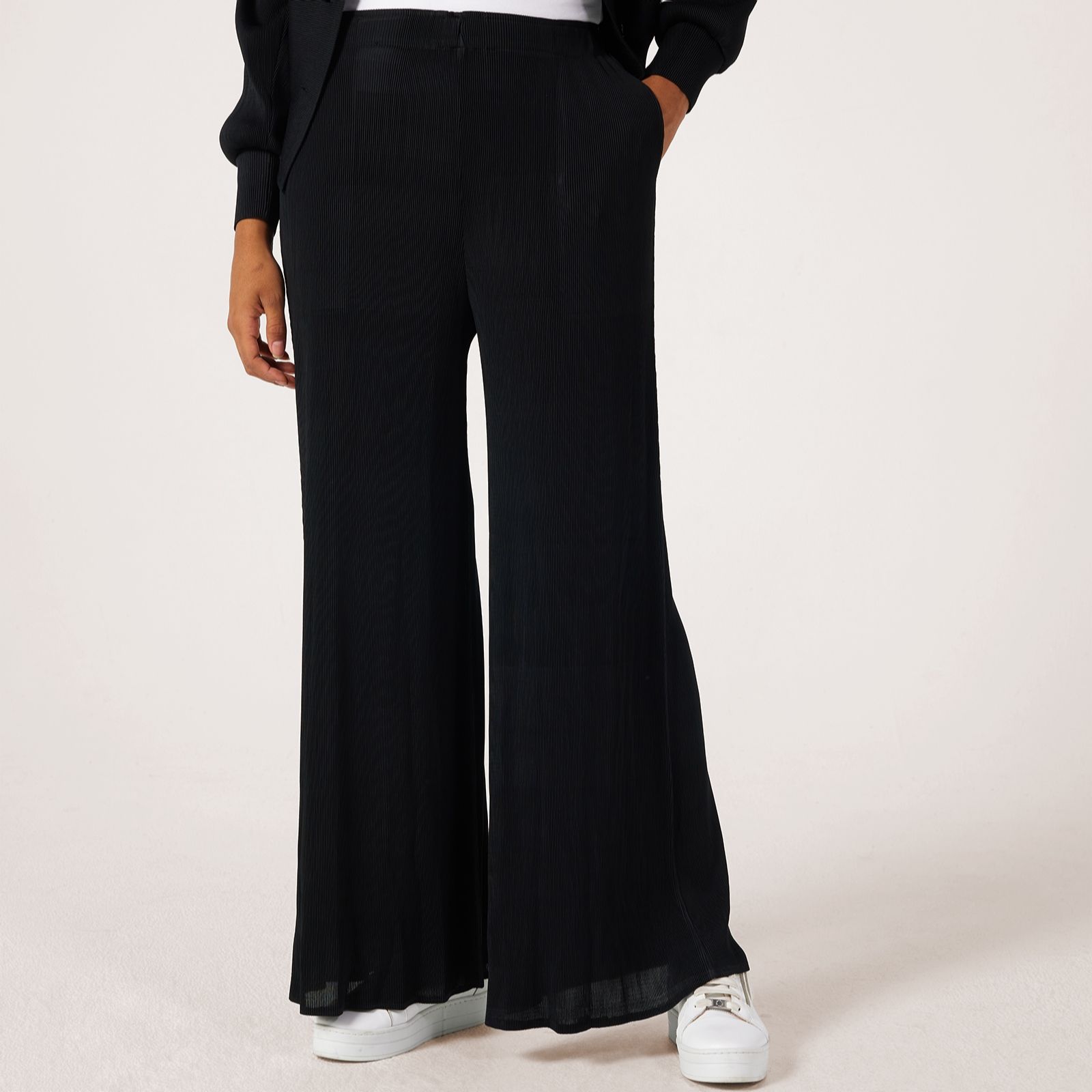 Slip into relaxed sophistication with these pleated trousers from Frank Usher, where smart vertical plisse detailing and a wide leg style create a look that's effortlessly modern. The high-rise and elasticated waistband promise all-day comfort, making them ideal for everything from relaxed brunches to spontaneous dinners out. For a chic finish, team them with a crisp blouse and statement jewellery.