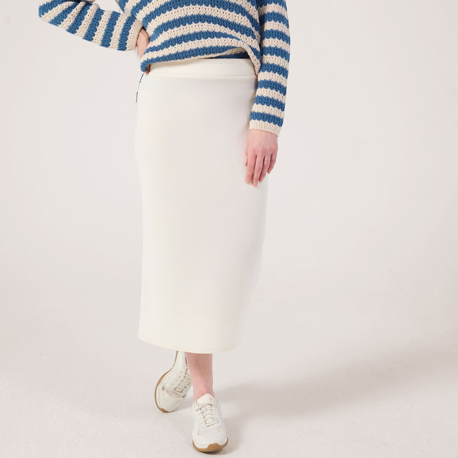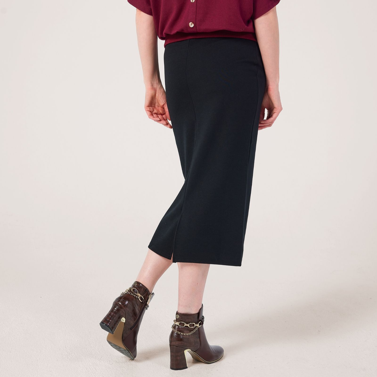 Step into effortless sophistication with the Frank Usher pull-on midi pencil skirt, designed in a ponte-style knit fabric that flatters your shape with a fitted silhouette. Featuring a sleek elasticated waist and a stylish vertical slit at the back, this skirt is ideal for both office settings and evening outings. Combine it with a crisp blouse or match it with coordinating tops for a polished and versatile look. Easy to care for and comfortable all day.
