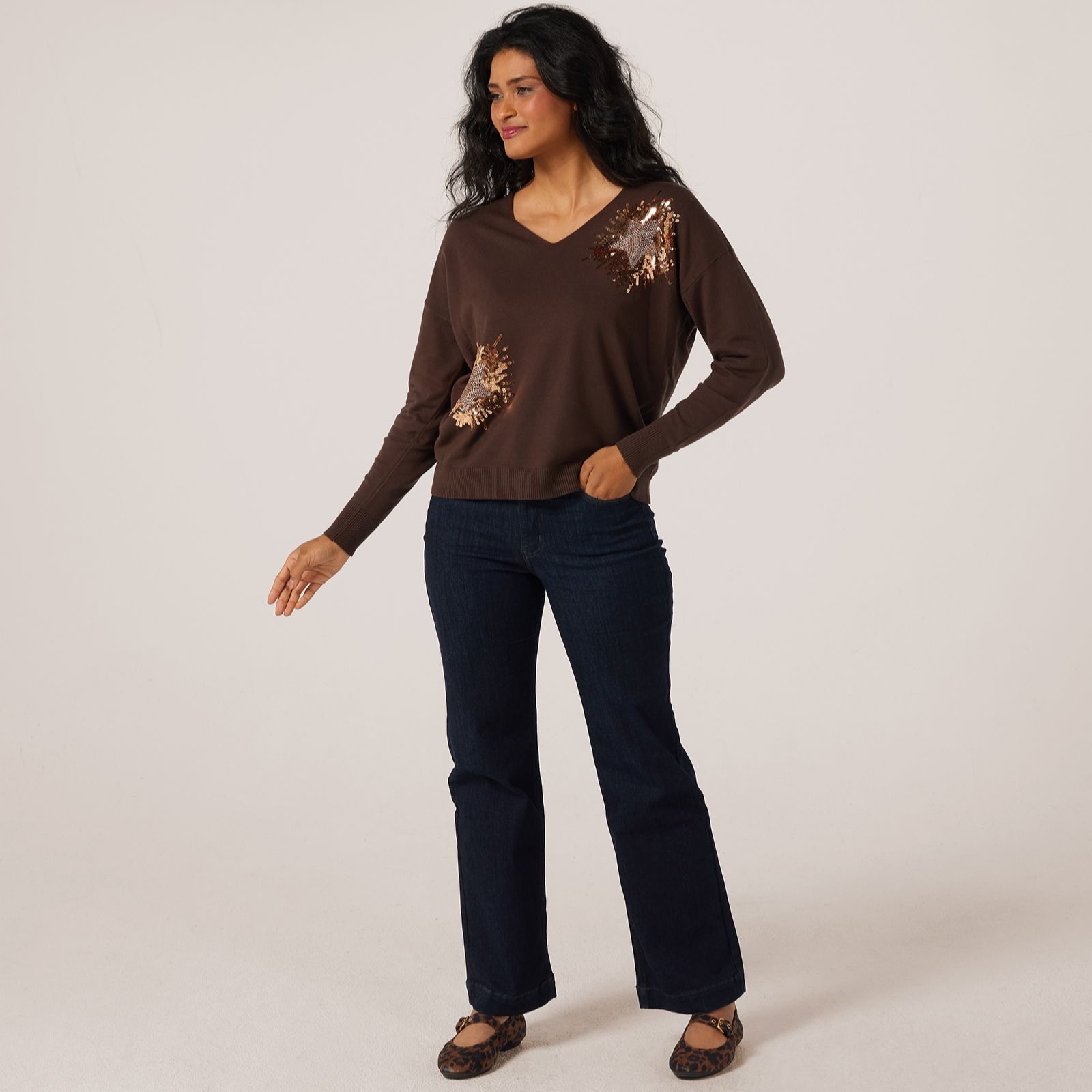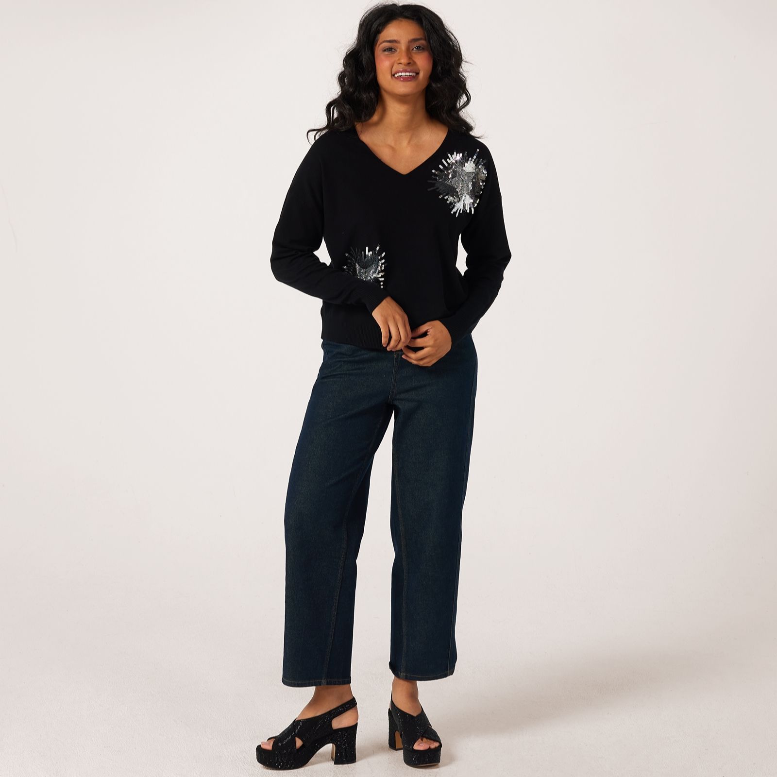 Frank Usher V-Neck Knitted Jumper with Sequin Motif