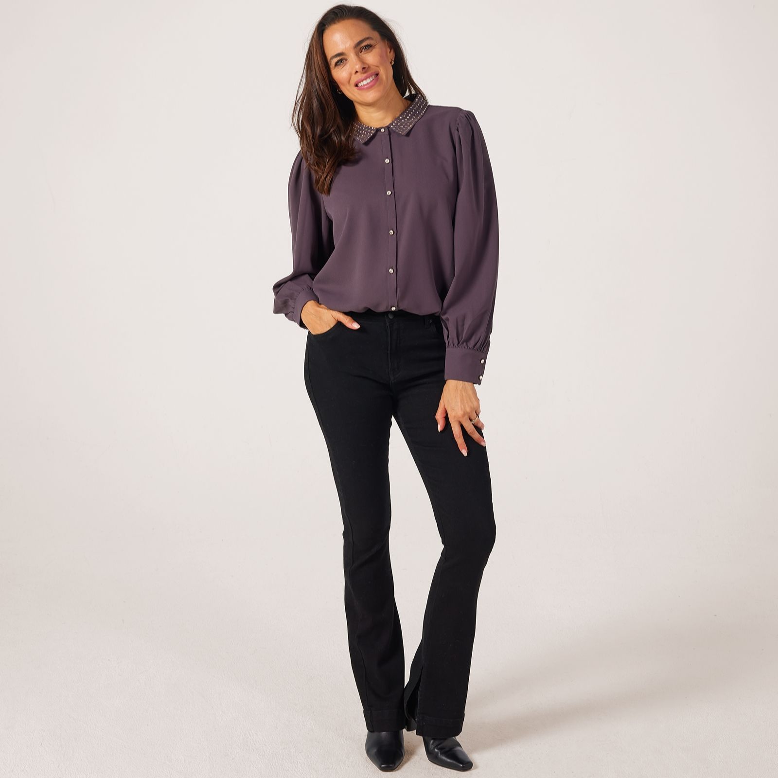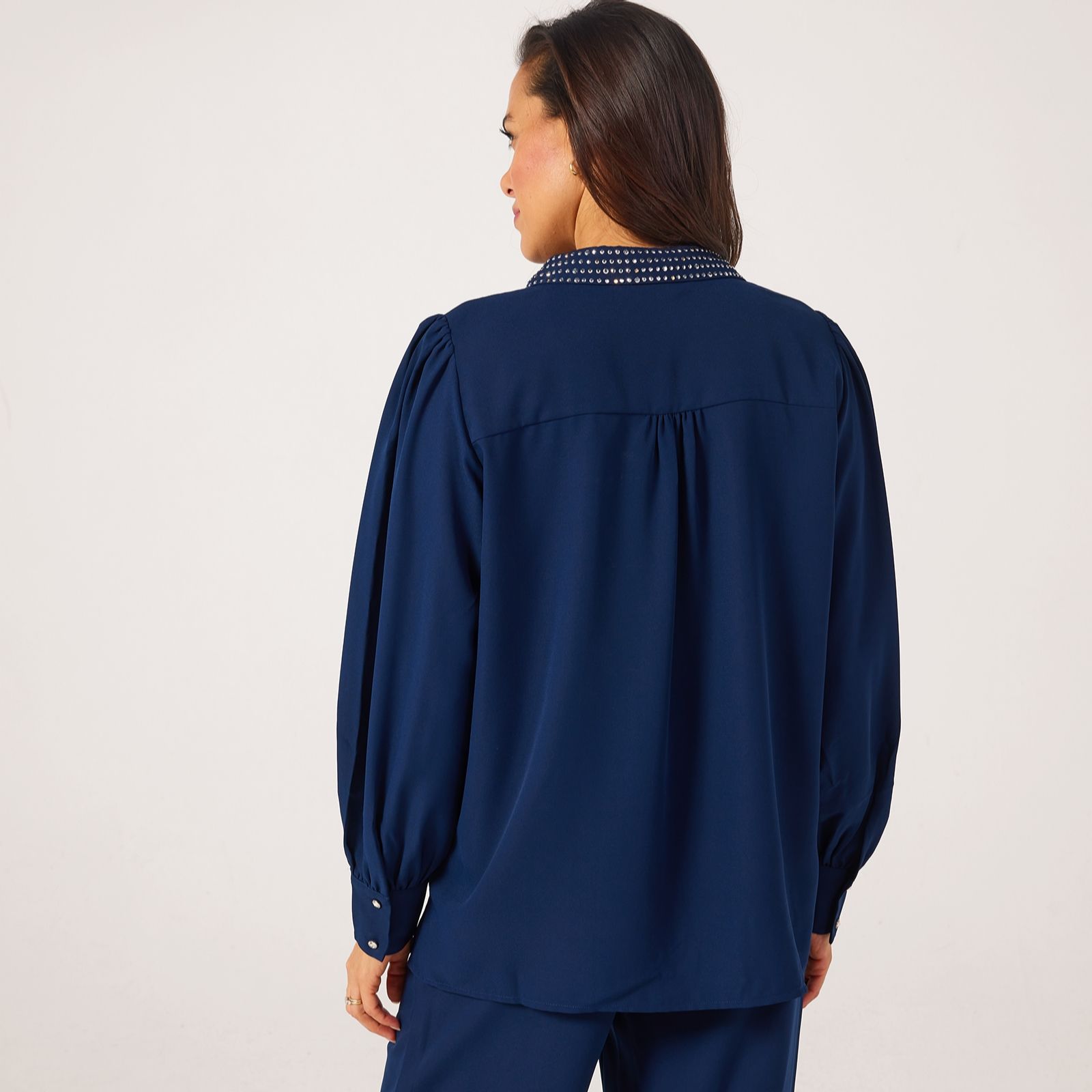 Frank Usher Woven Crepe Handfeel Long Sleeve Studded Shirt