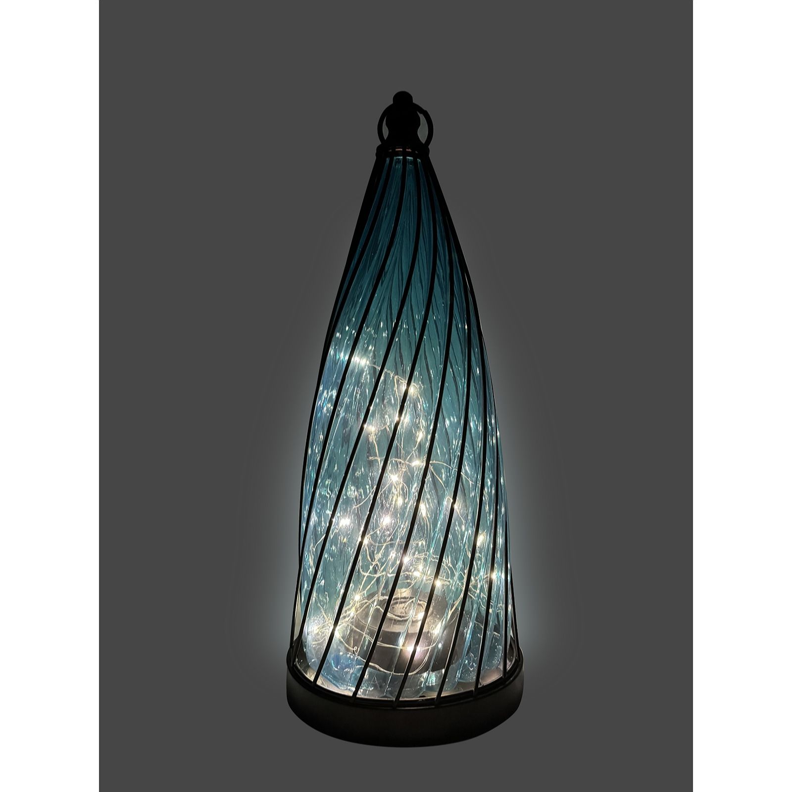 Let your outdoor evenings shine with the Garden Reflections spiral lantern, where a graceful spiral design glimmers with the soft radiance of 30 warm white rice LEDs. Perfect for garden parties or quiet nights on the patio, this lantern adds a magical glow to any corner, indoors or out, and comes ready to use with batteries and a handy timer function for effortless ambience.