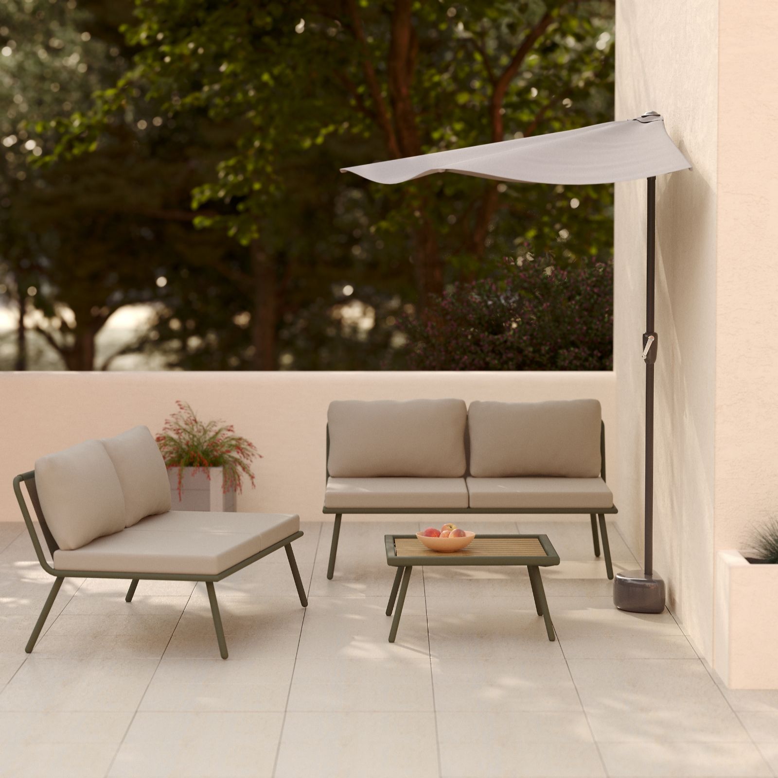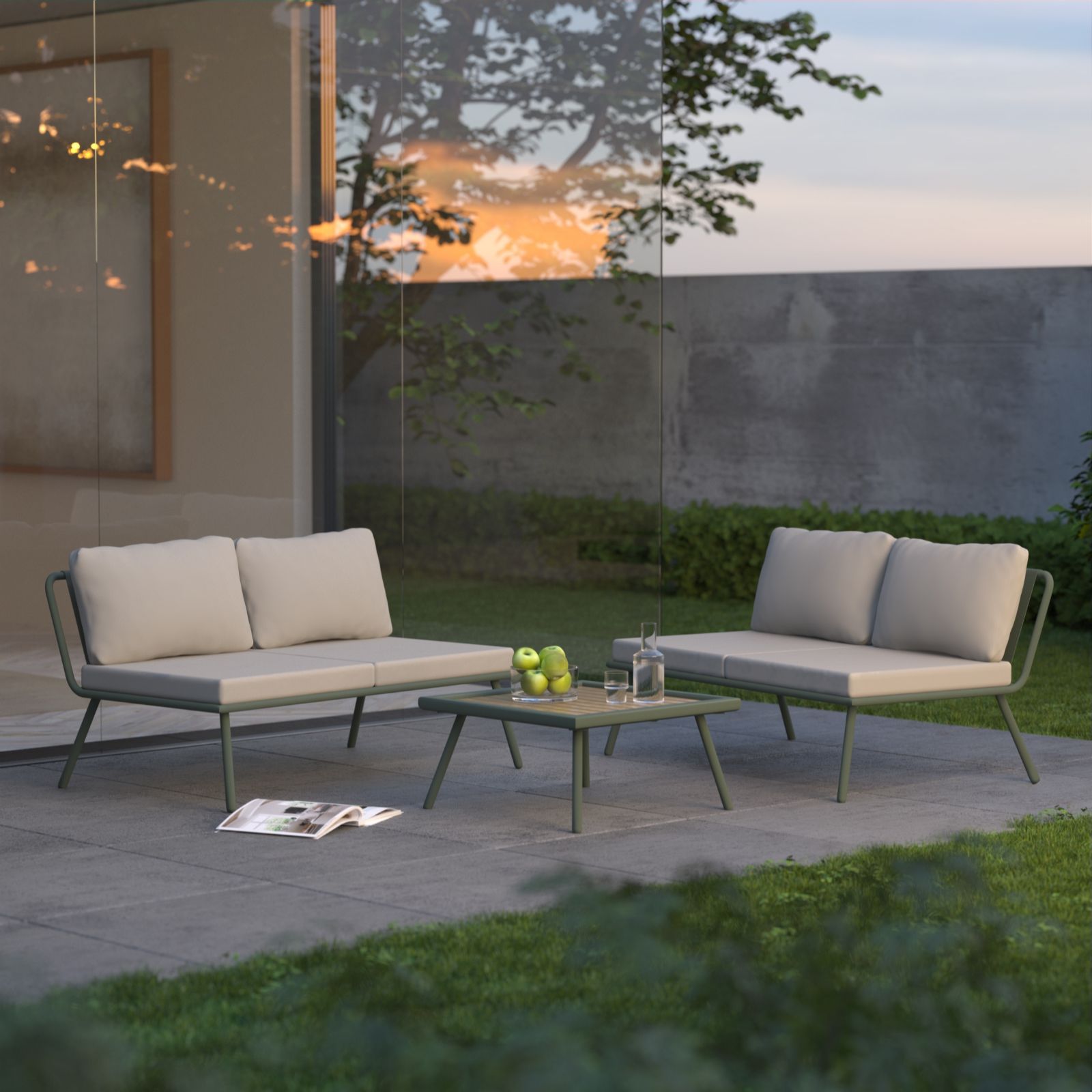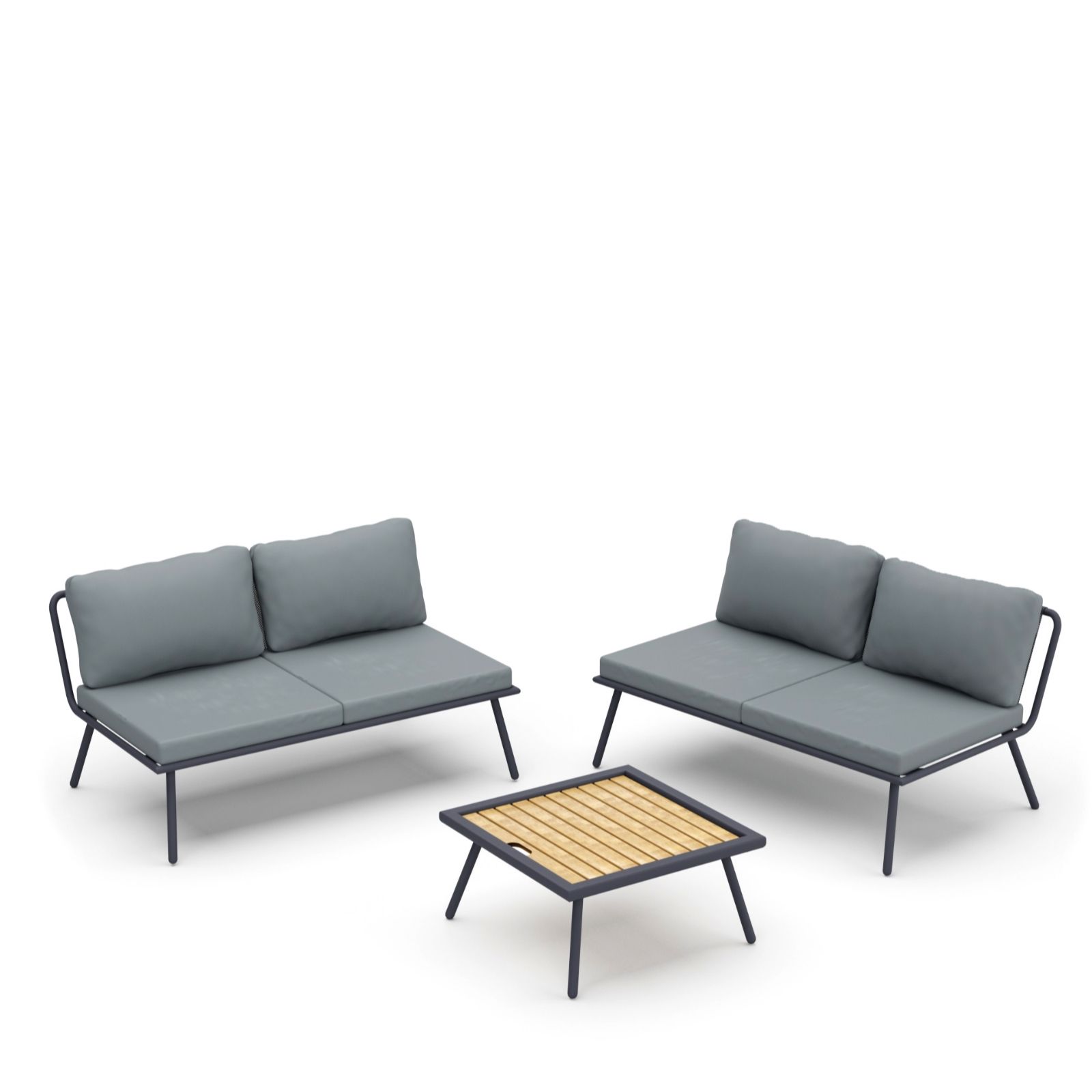 Change your outdoor space whenever the mood strikes with the multi-way pair of two-seater sofas and table from Garden Stories. Crafted with anti-rust steel frames and plush 11cm cushions, each sofa features a five-position adjustable backrest that can transform into a lounger, while the coffee table's slat top and adjustable height make it perfect for relaxed alfresco moments. Ideal for patios, gardens or balconies, this versatile furniture set is easy to move, assemble and maintain.