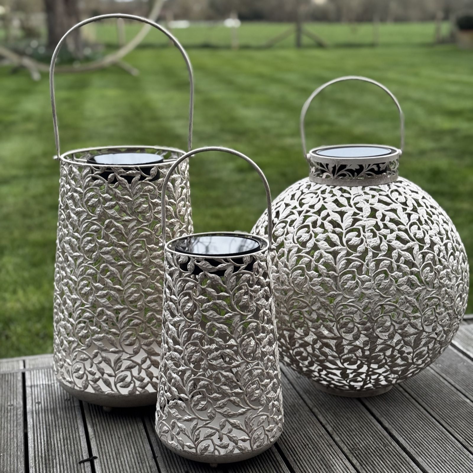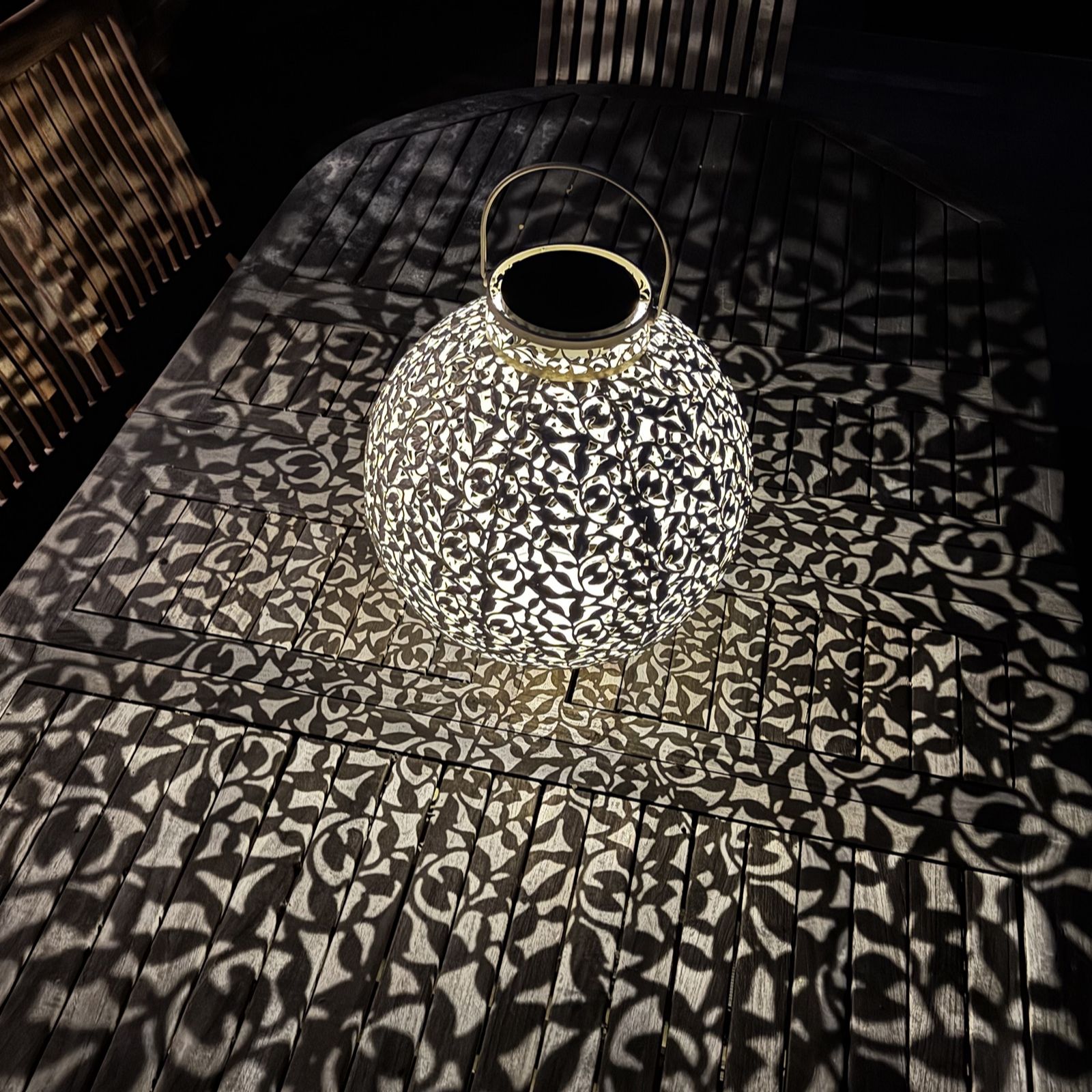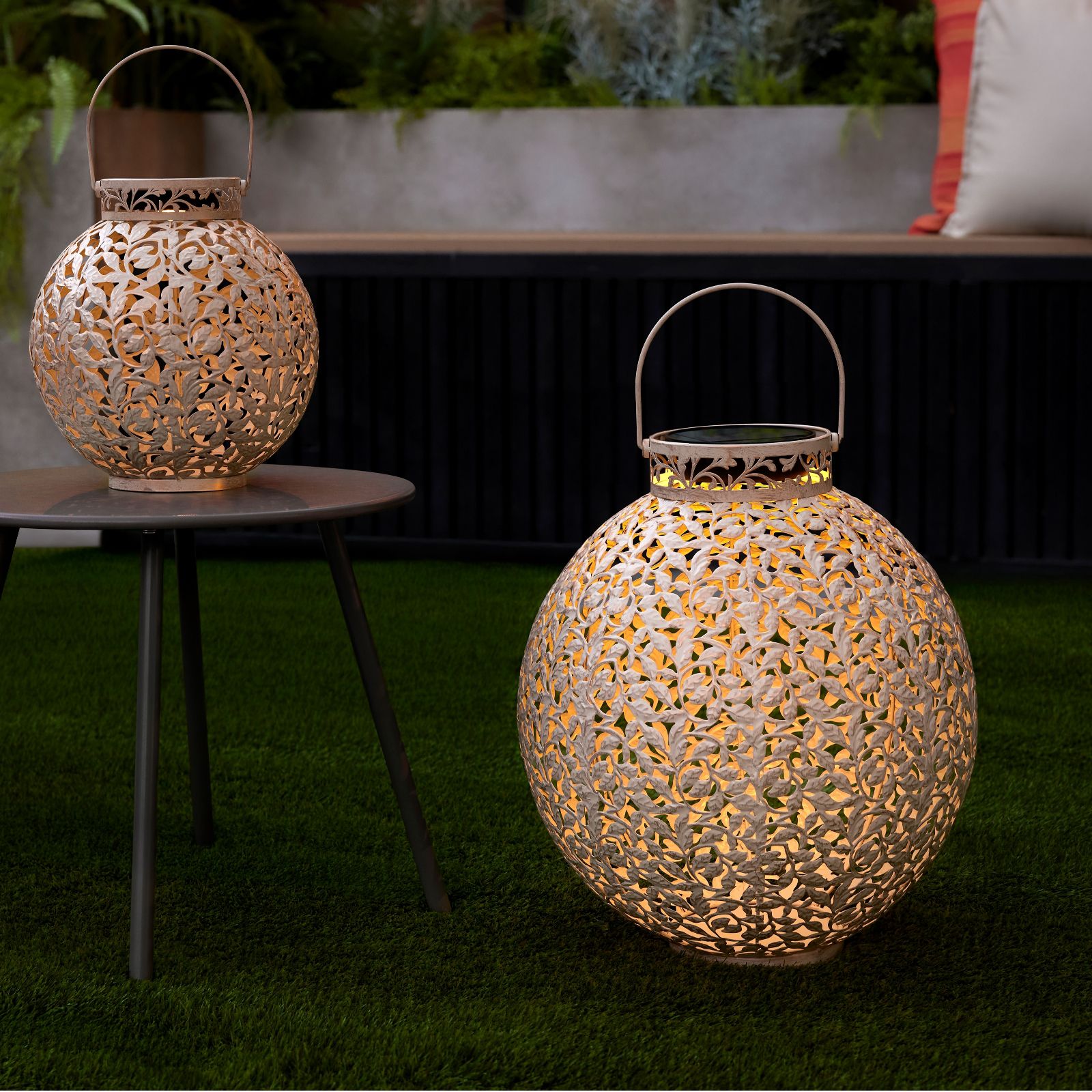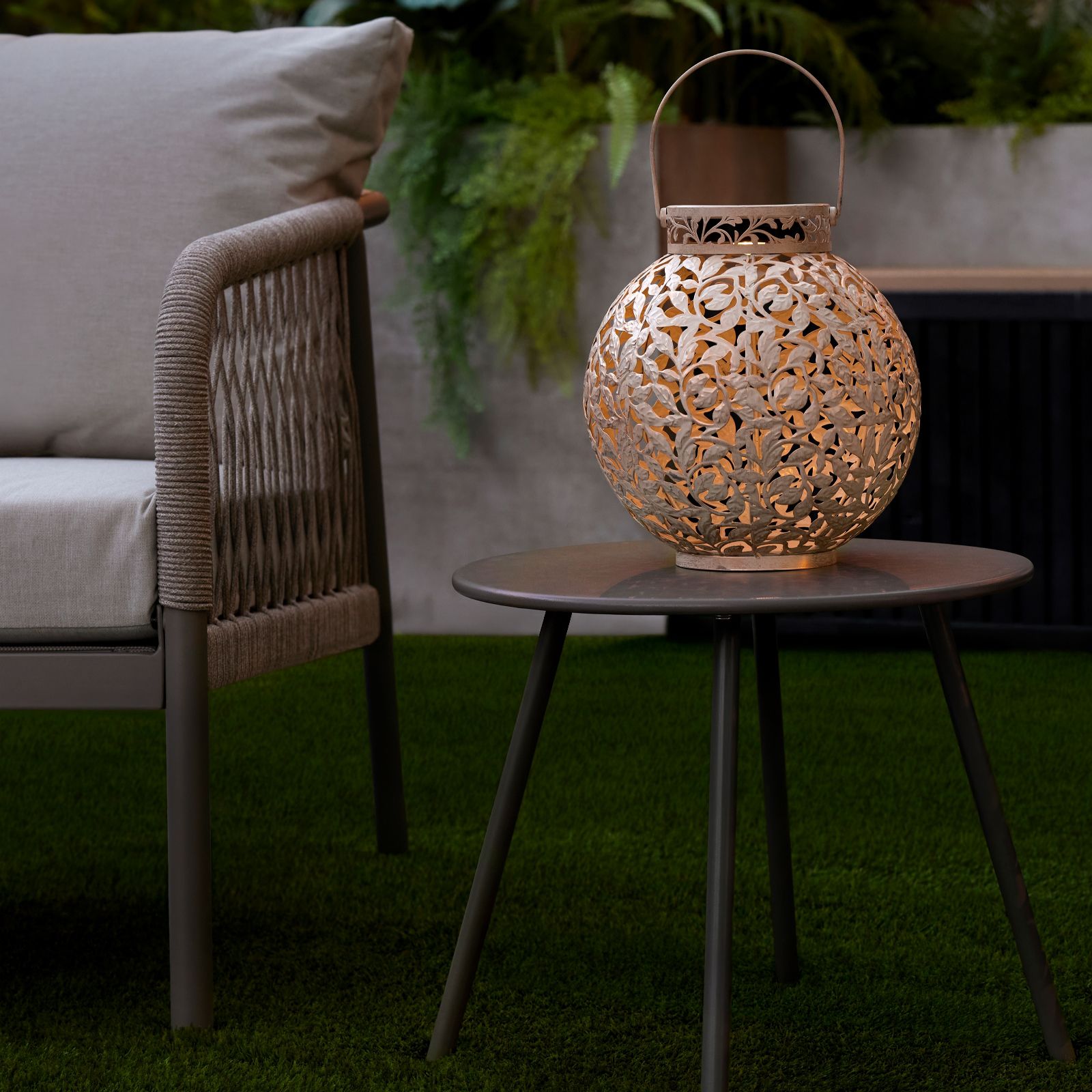 you'll love this lantern's sophisticated fretwork leaf design, which allows the warm light to shine through when it switches on at dusk. Ideal for elevating your garden or bringing a sophisticated twist to your patio, this lantern is sure to make any spot in your outdoor area a favourite.