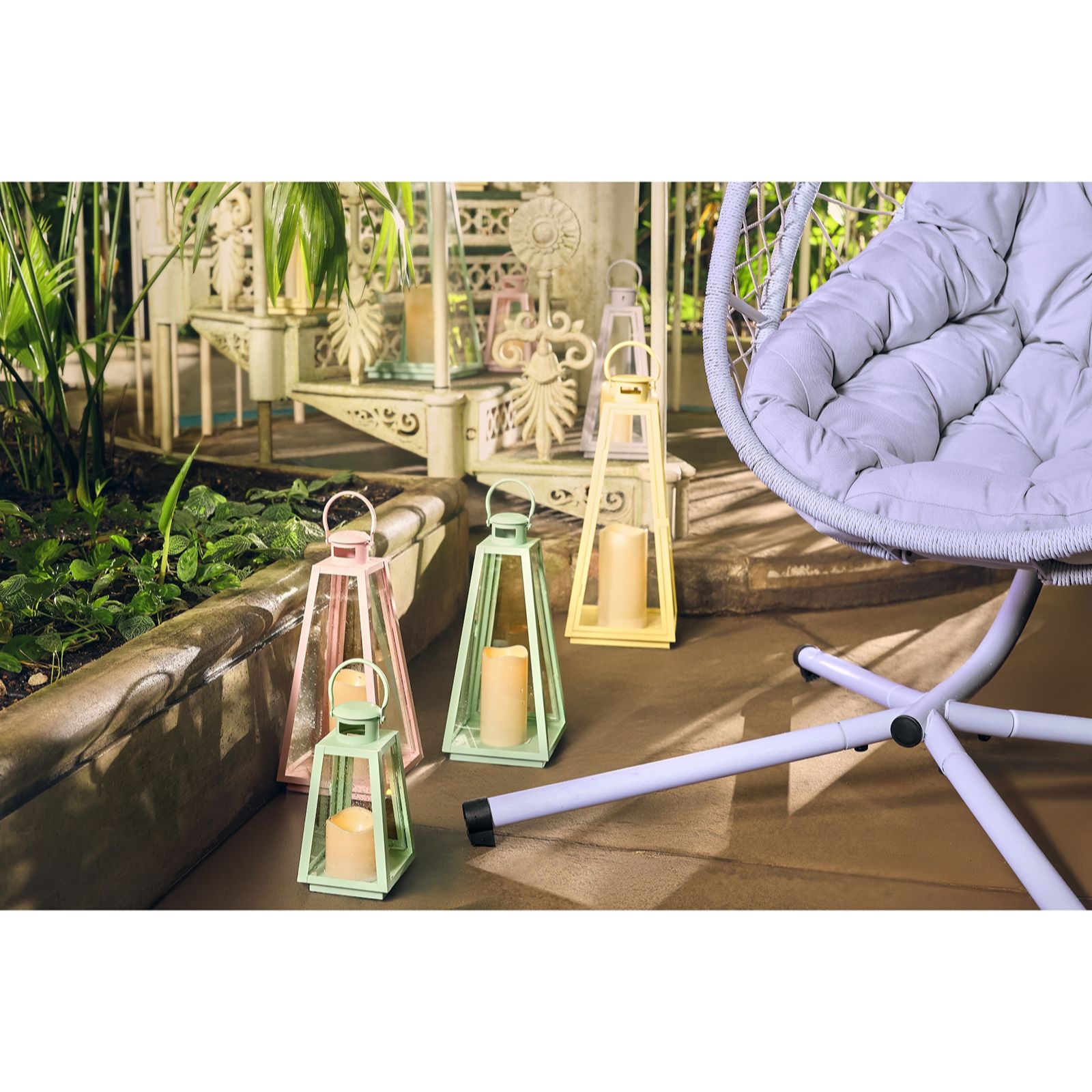 Garden Stories Sorbet Collection Large Indoor Outdoor Lantern with LED Candle