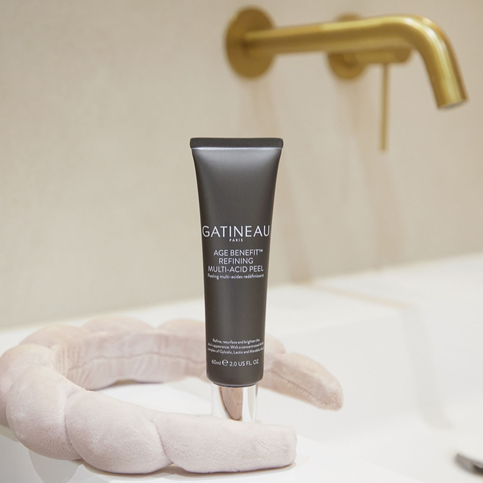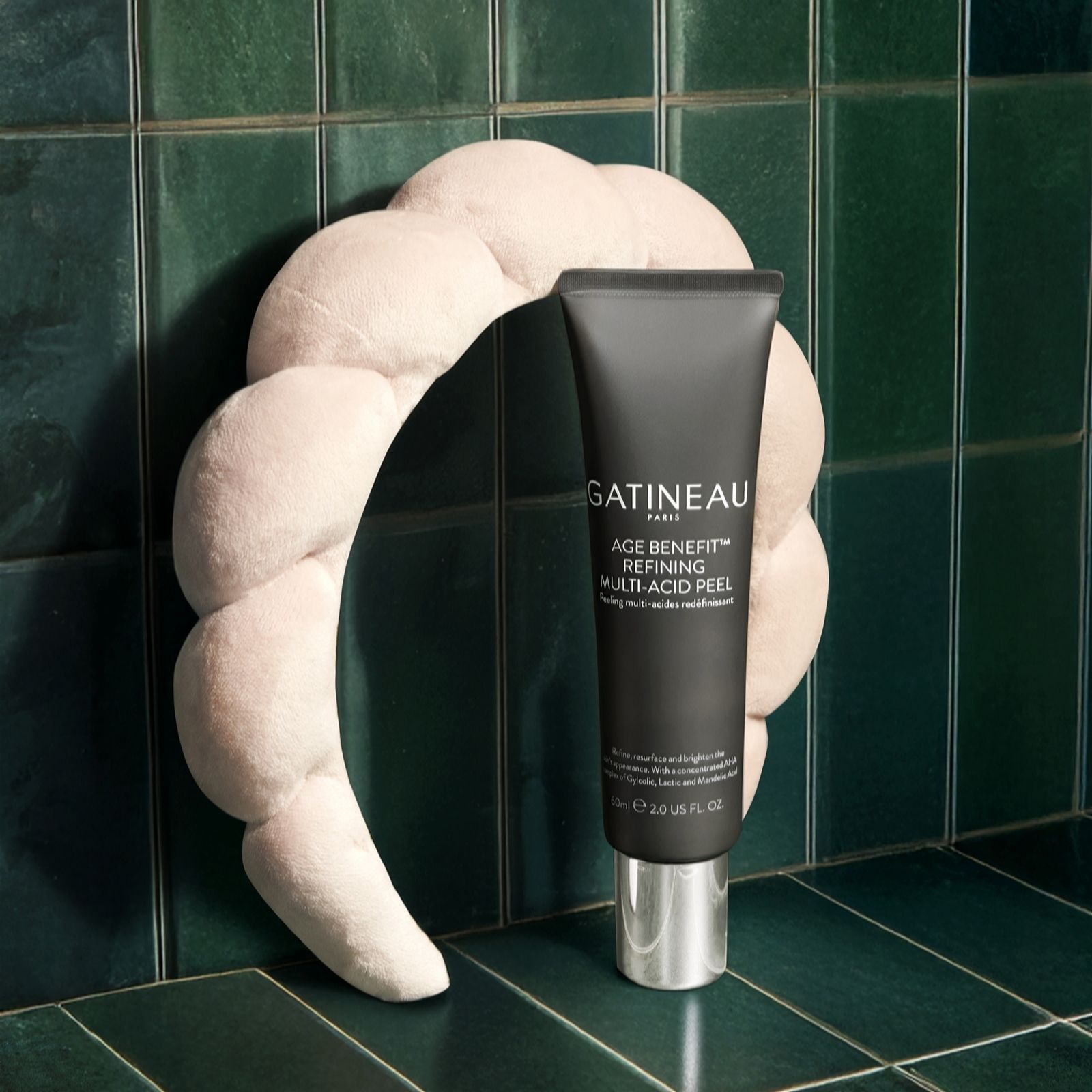Experience a radiant complexion with Gatineau's Age Benefit Refining Multi Acid Peel. This advanced formula works to gently exfoliate, refine skin texture and promote brightness. Ideal for a weekly skincare ritual, it pairs beautifully with the included soft pink headband for a soothing, spa-like treatment at home. Help reveal smoother, glowing skin with ease using this targeted peel.