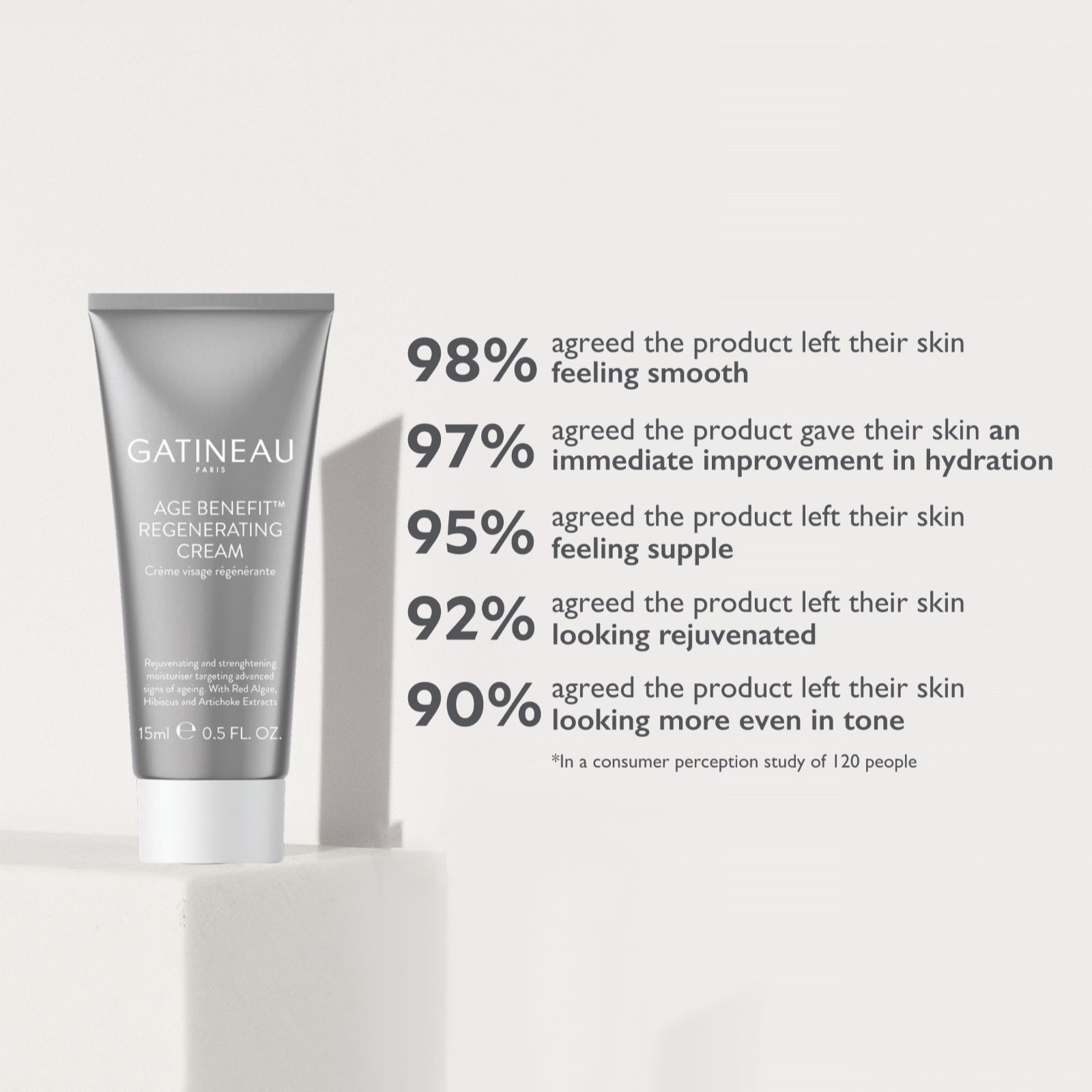 - 1 x Age Benefit Regenerating Cream (15ml) - helps to improve the appearance of your skin's texture and radiance. Formulated with artichoke leaf and hibiscus seed extracts