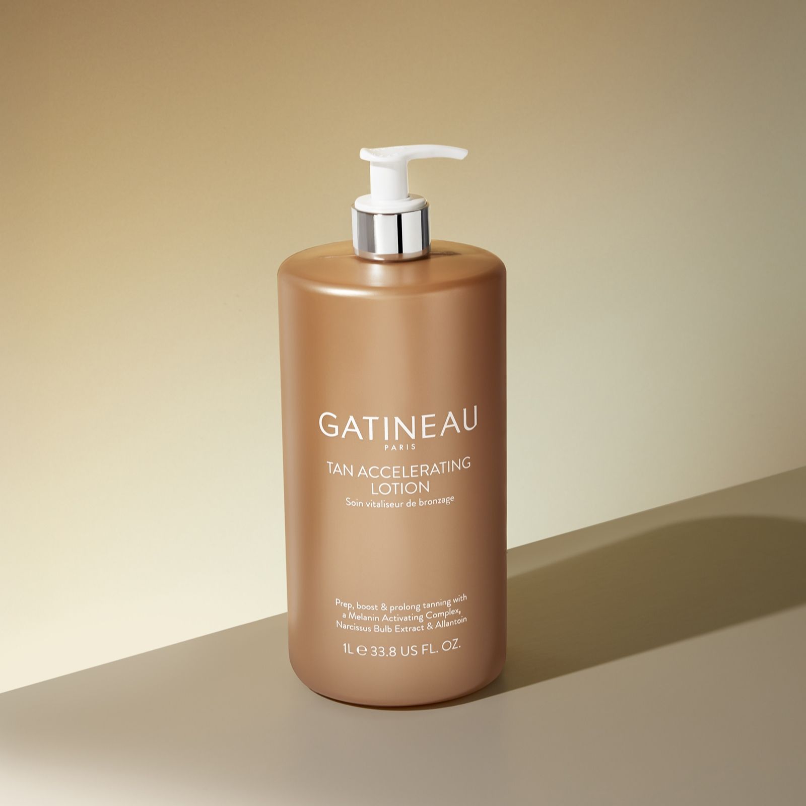 Get ready for a beautifully even tan with Gatineau Supersize Tan Accelerator. This innovative lotion is designed to help prepare, boost and prolong your tan both before and after sun exposure. The refreshing cream is quickly absorbed, leaving your skin feeling smooth and satiny, with a deeper, longer-lasting tan.