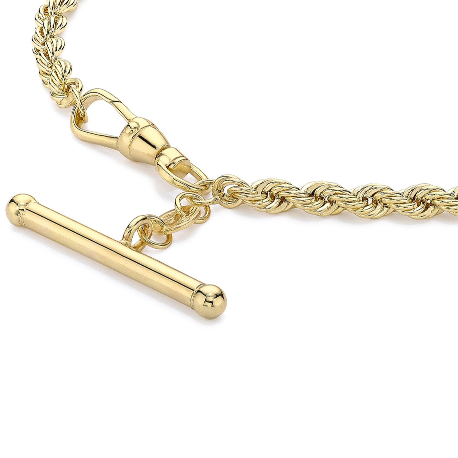 GOLD 9ct Yellow Gold T-Bar Rope Albert Bracelet 3.14g