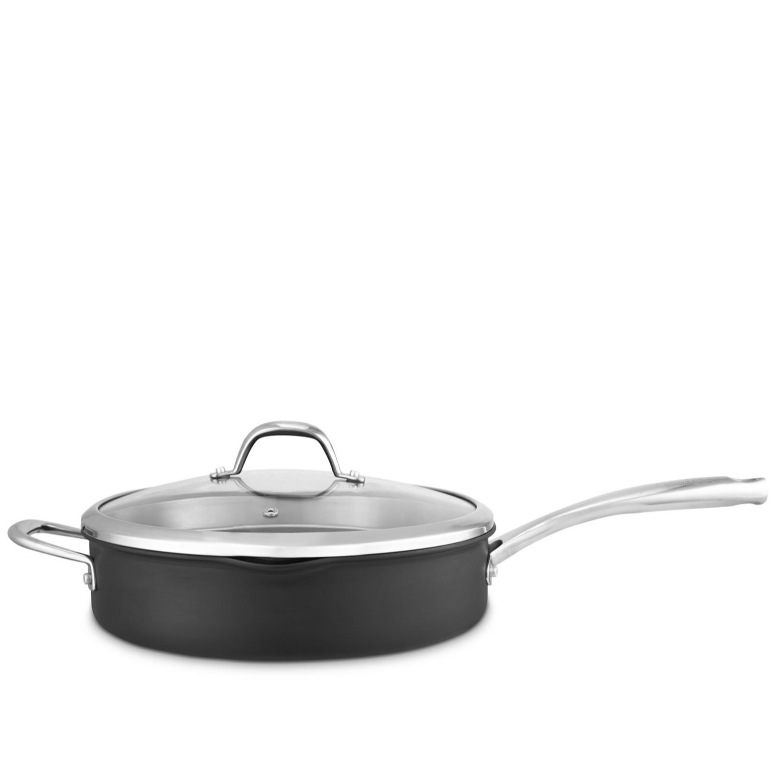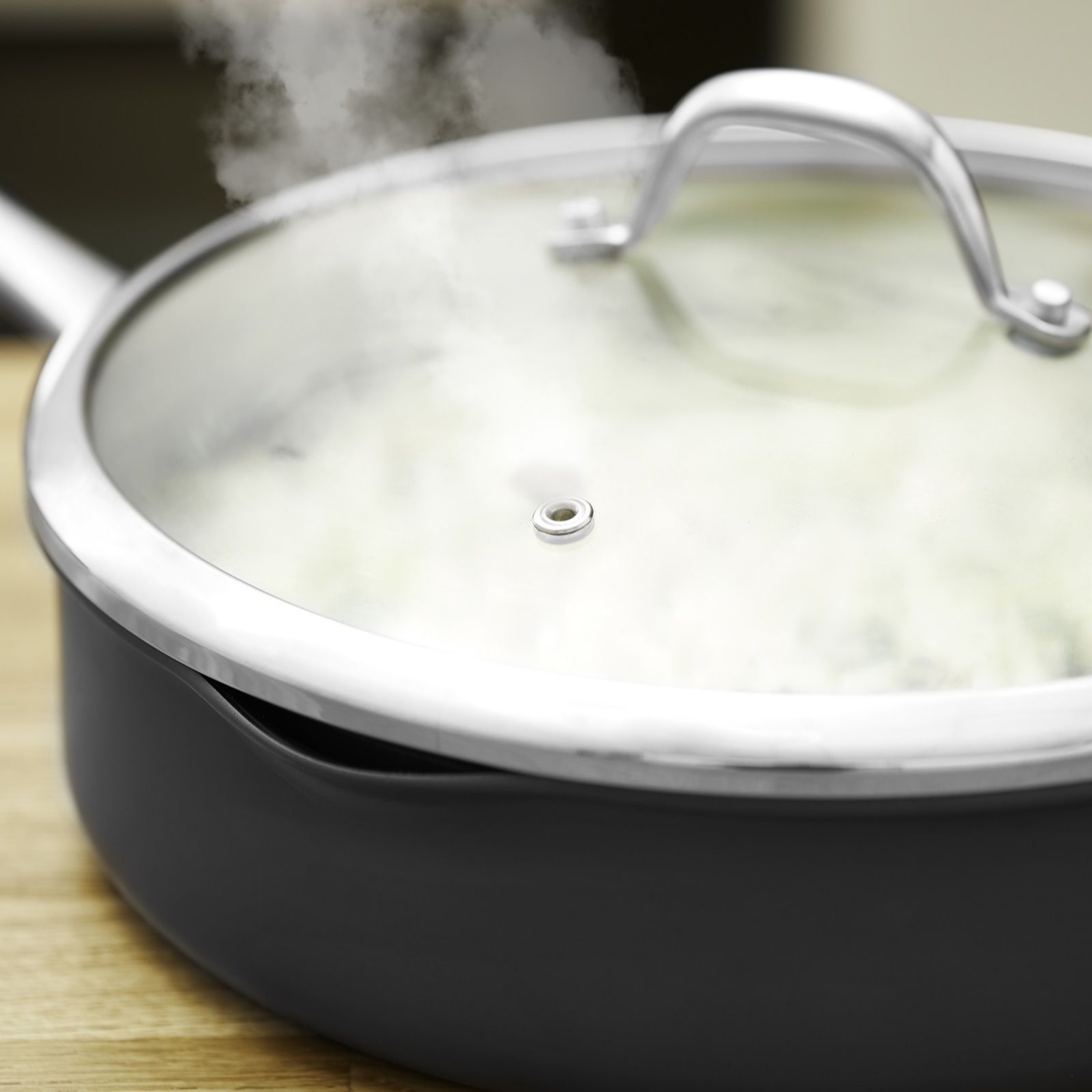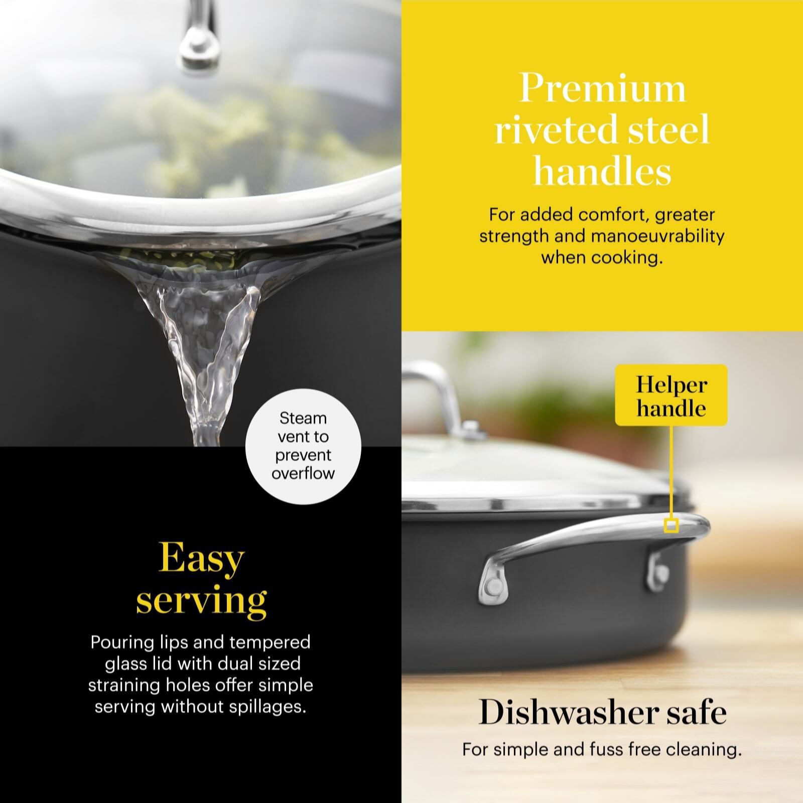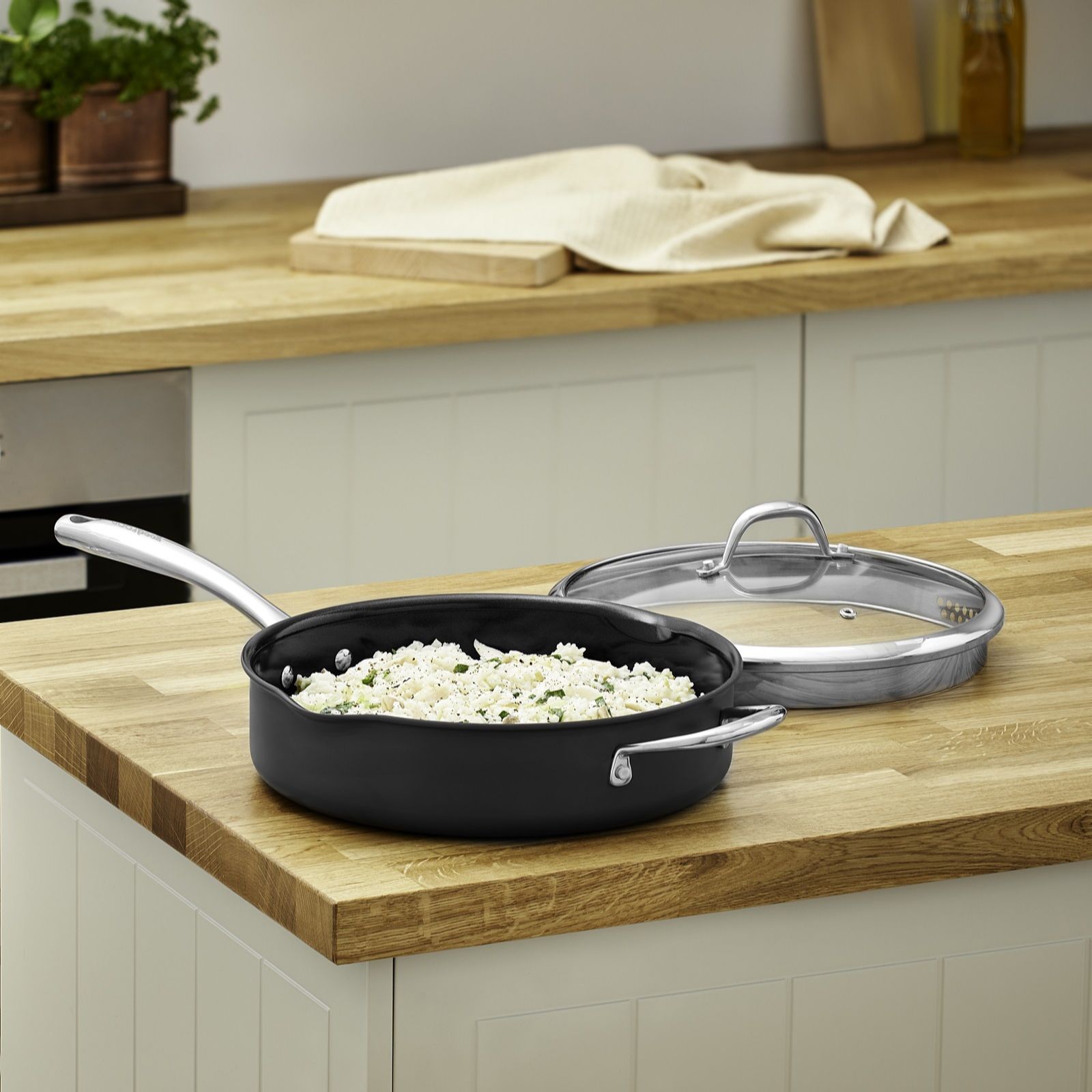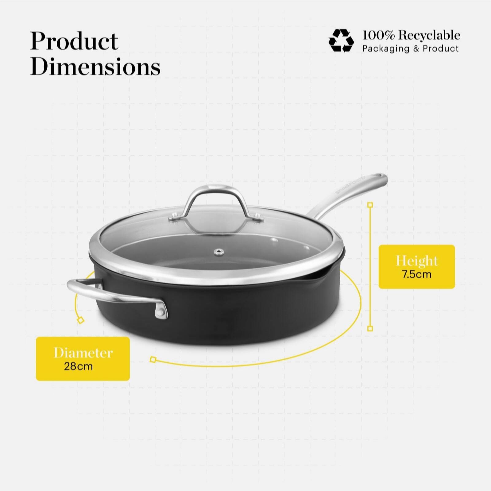 - 1 x 28cm (11") hard anodised grey and steel non-stick frying pan with lid