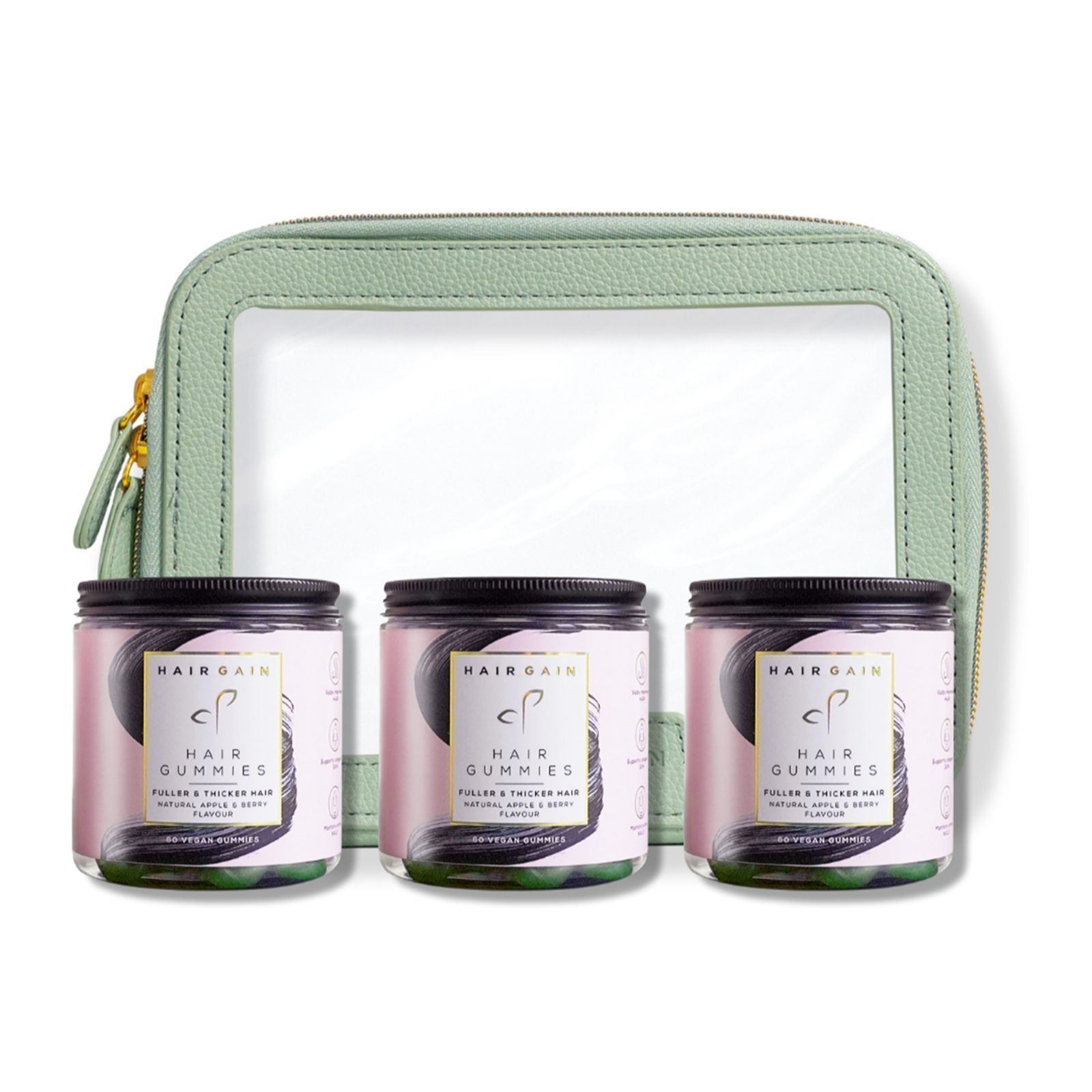Discover luxurious haircare with the Hair Gain Capsules & 50ml Mask Duo Set. This combination offers a boost that helps with the maintenance of thicker, fuller-looking locks that radiate vitality. The Hair Gain Capsules are infused with organic pea shoot powder, msm, silica, l-proline, zinc, and essential vitamins. Complementing this, the Hair Gain Hair Mask works to deliver long-lasting moisture, making it a must-have for all hair types seeking shine and fullness.