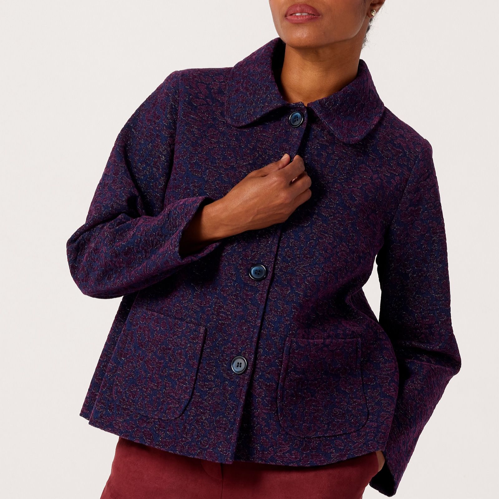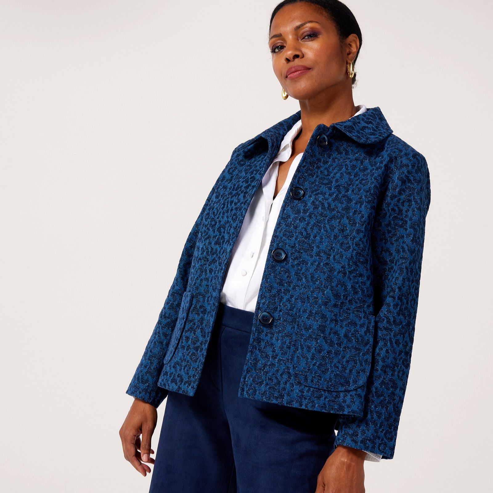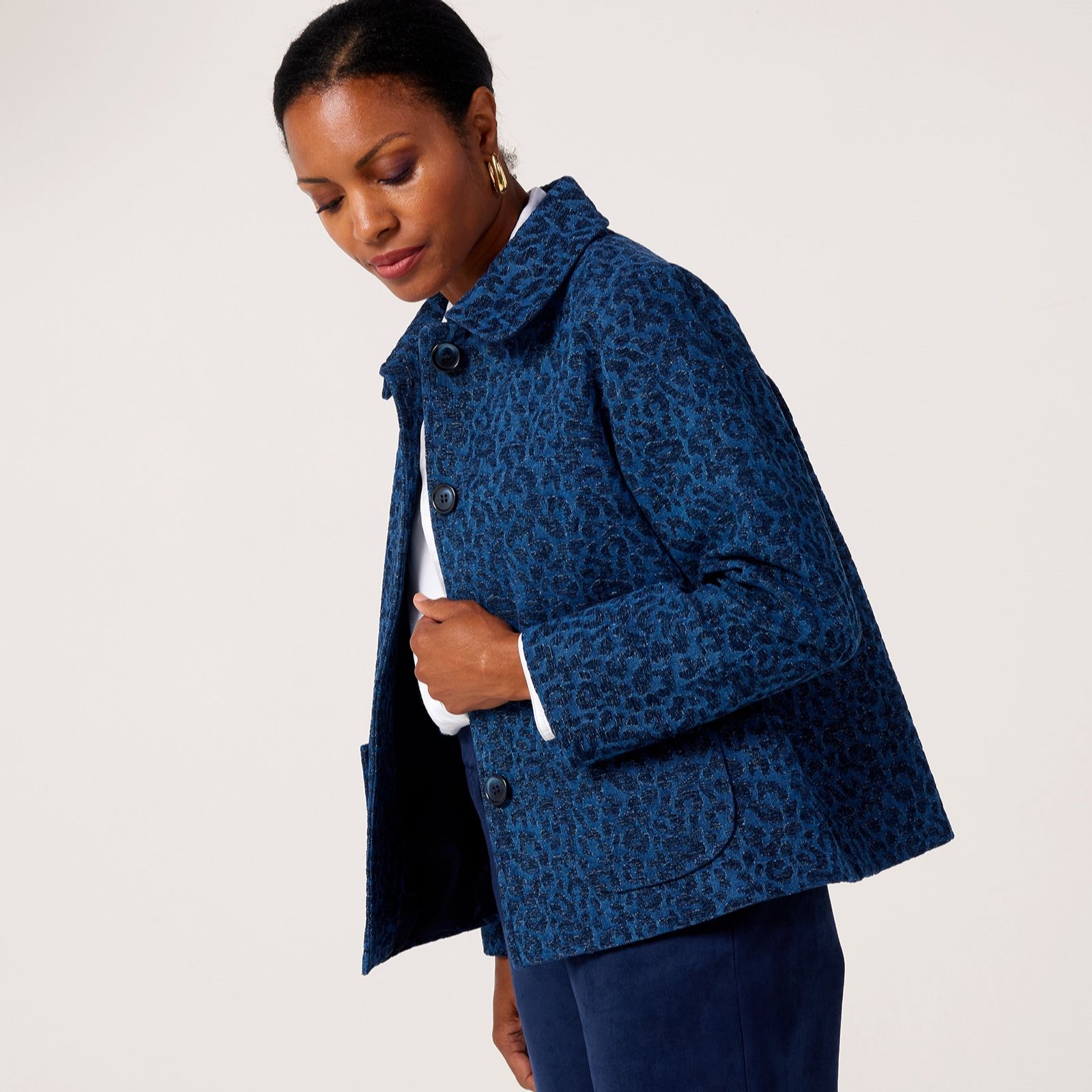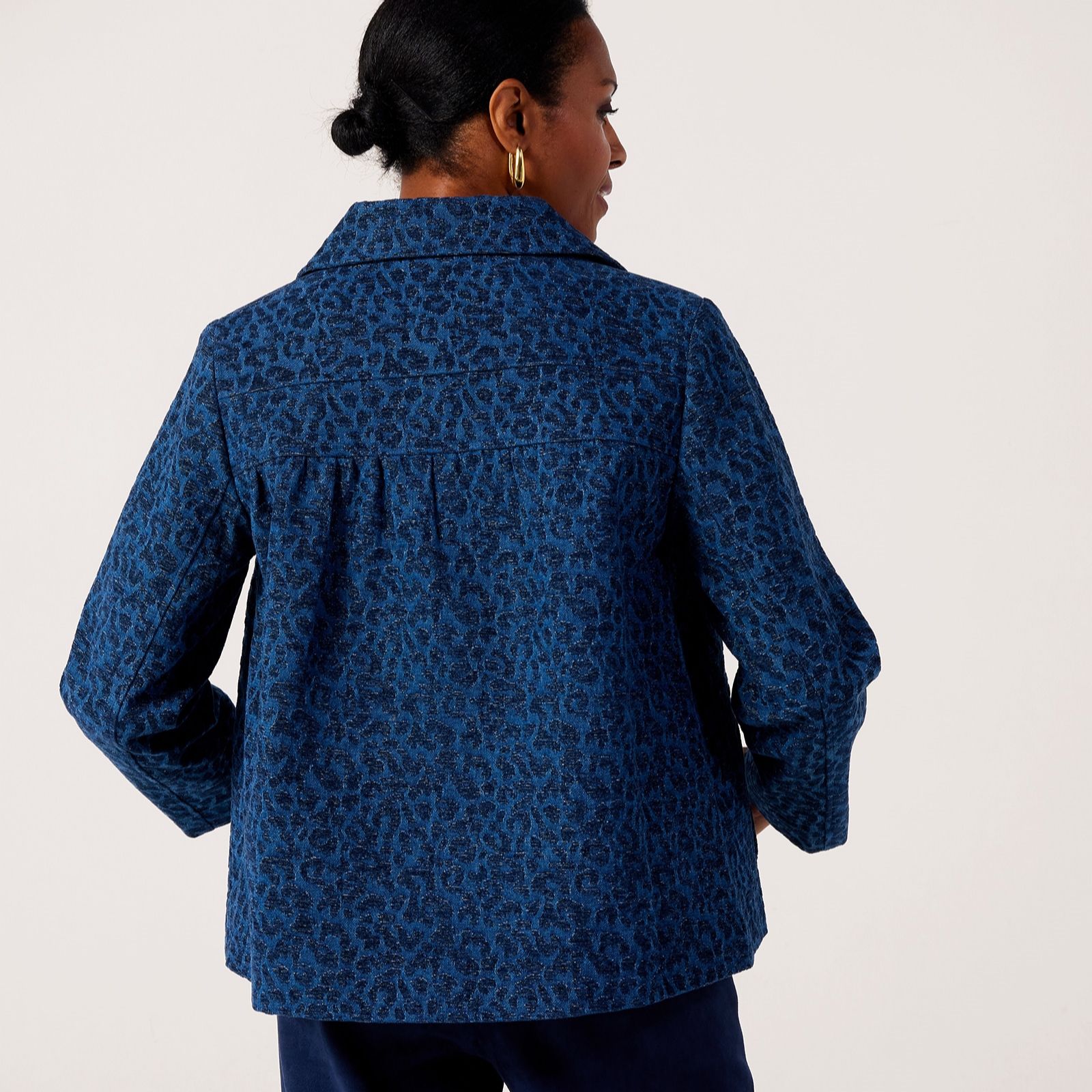 Channel a playful twist on a classic with this chenille animal-style denim jacket from Helene Berman, where tactile texture meets contemporary design. Its gathered back, collared neckline and statement patch pockets bring effortless flair whether you're heading out for brunch, taking in the sights of the city or adding an edge to your evening look. Pair with heels and tailored trousers for sophisticated, standout style.
