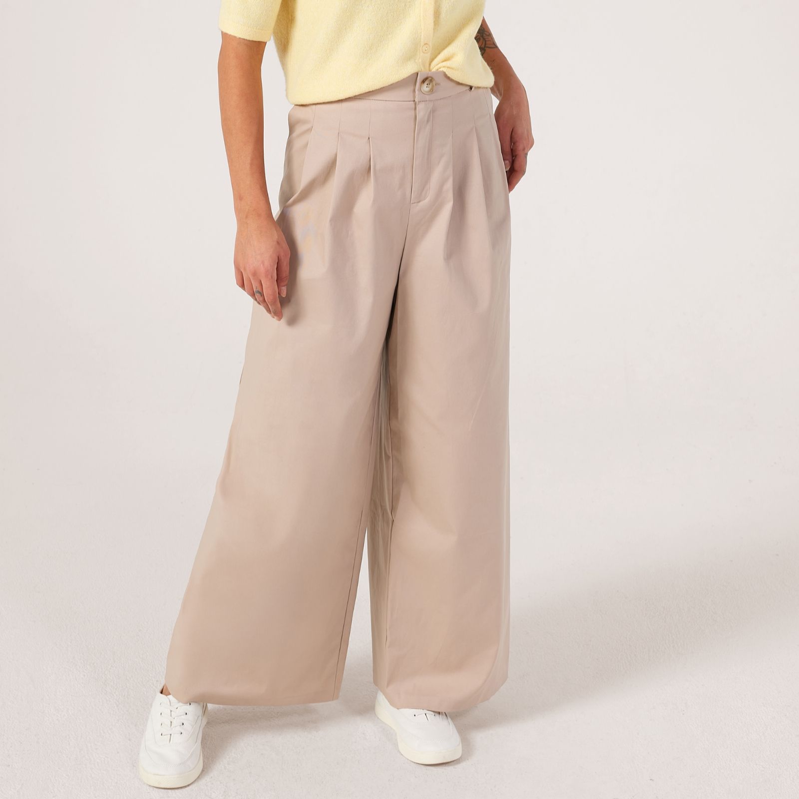 Add the perfect tailored touch to your wardrobe with the cotton stretch front pleat wide-leg trousers from Helene Berman. Designed with a semi-relaxed fit, they feature elegant front pleats, a zip fly with button fastening and an elasticated back for added comfort. Ideal for both smart and casual occasions, these trousers pair beautifully with a crisp blouse and loafers for a chic, polished look.