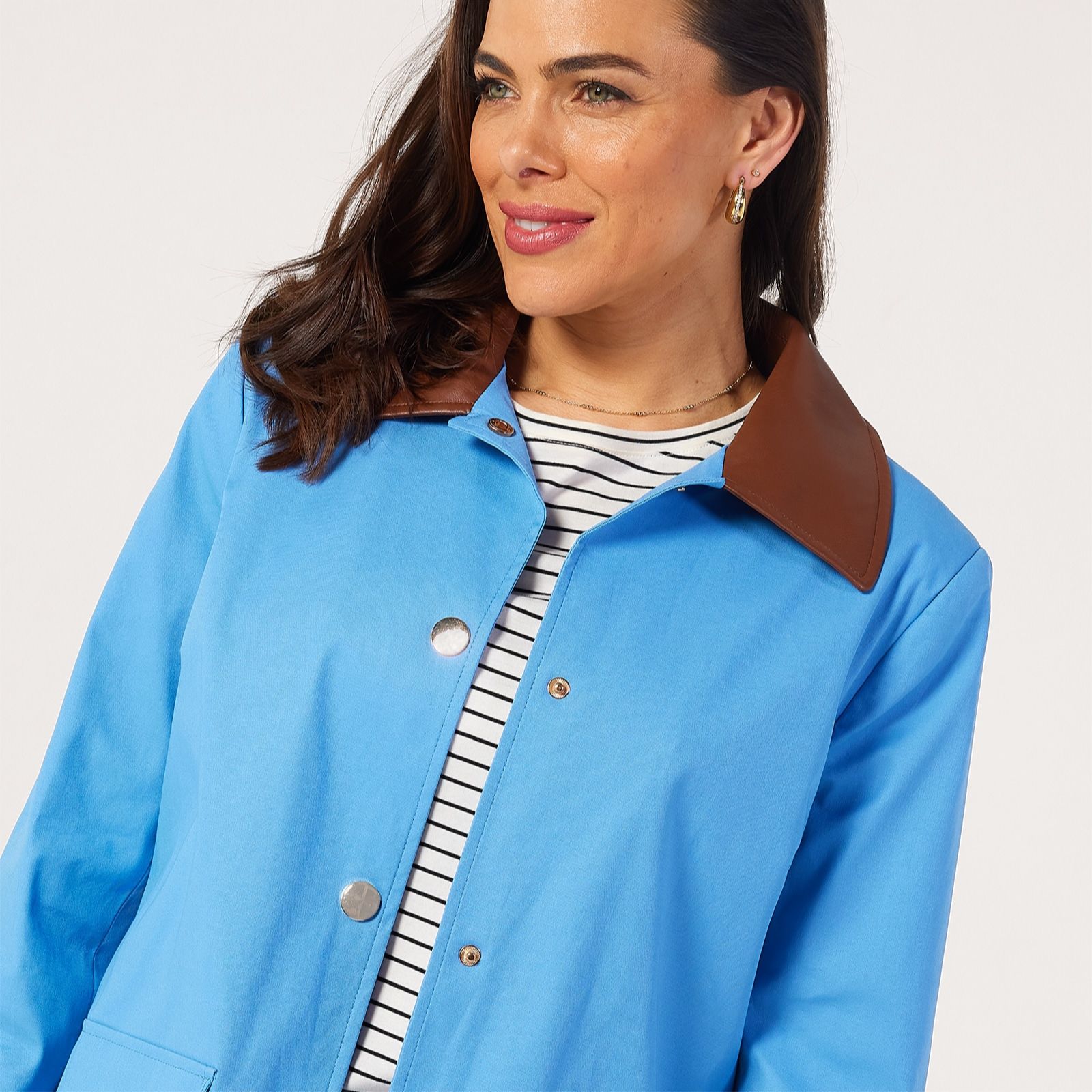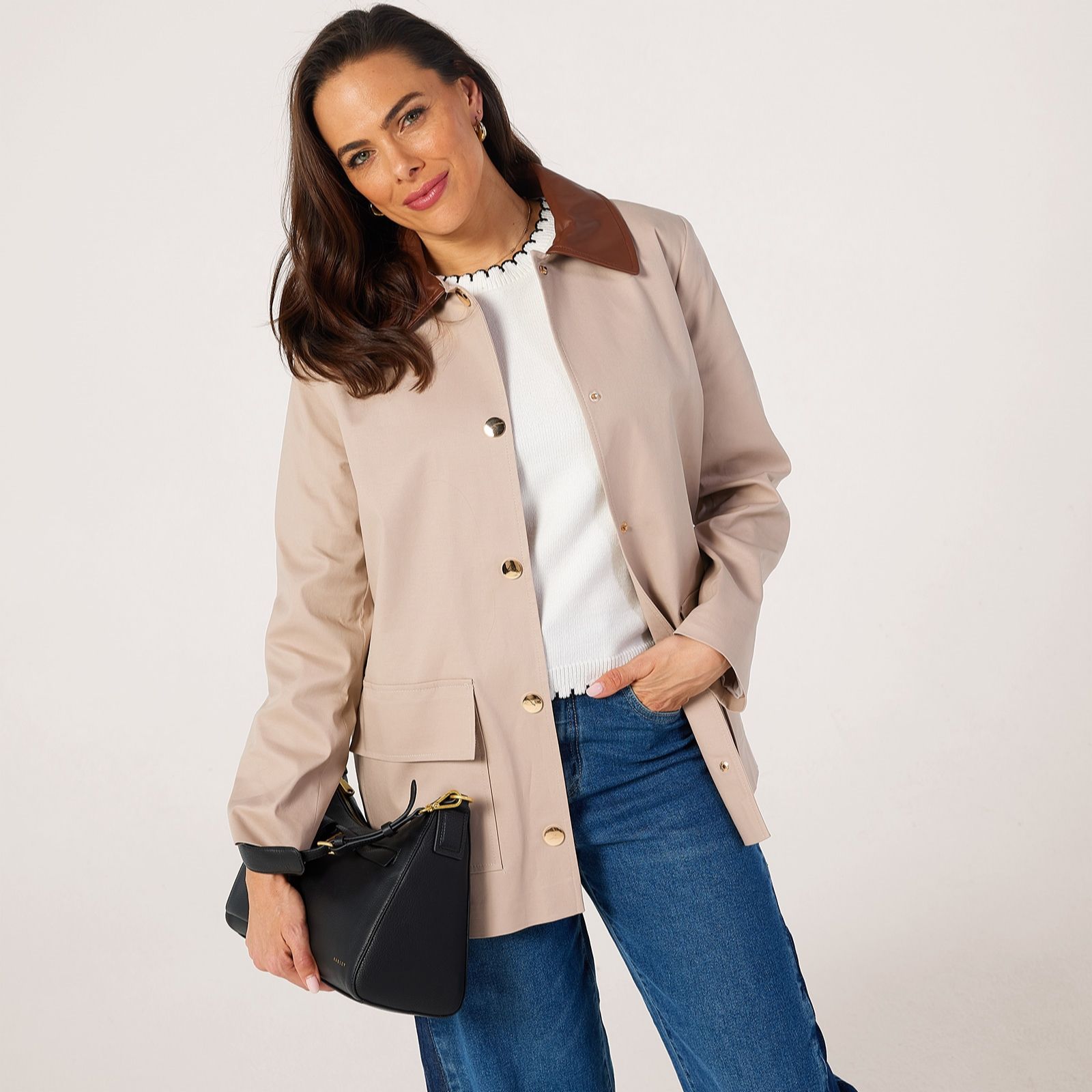 - it's all about clever layering during the transitional seasons and this jacket ensures you do it with flair. Featuring gold-toned button fastenings and that smart contrast collar, it will bring an elegant touch to your seasonal wardrobe while being practical too.