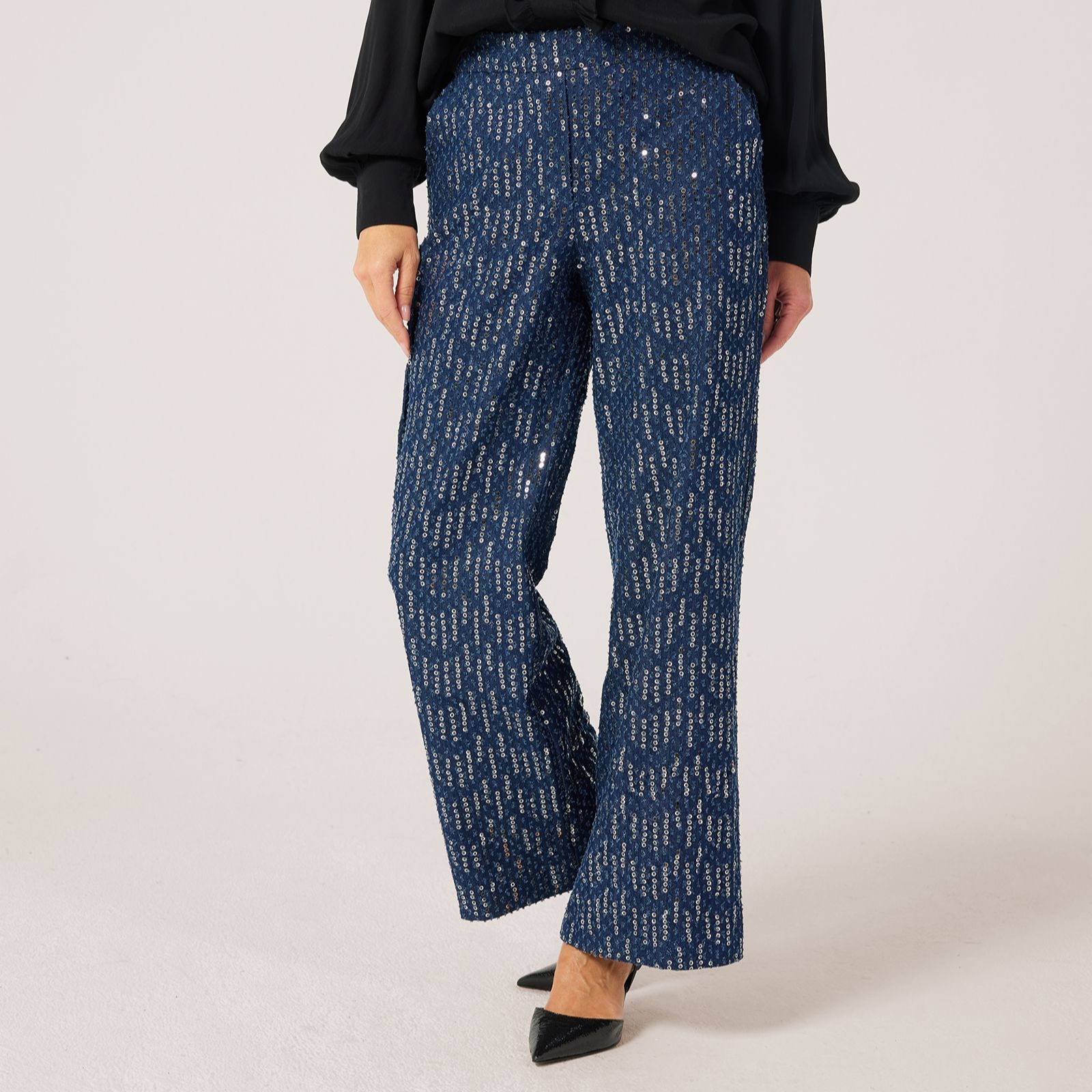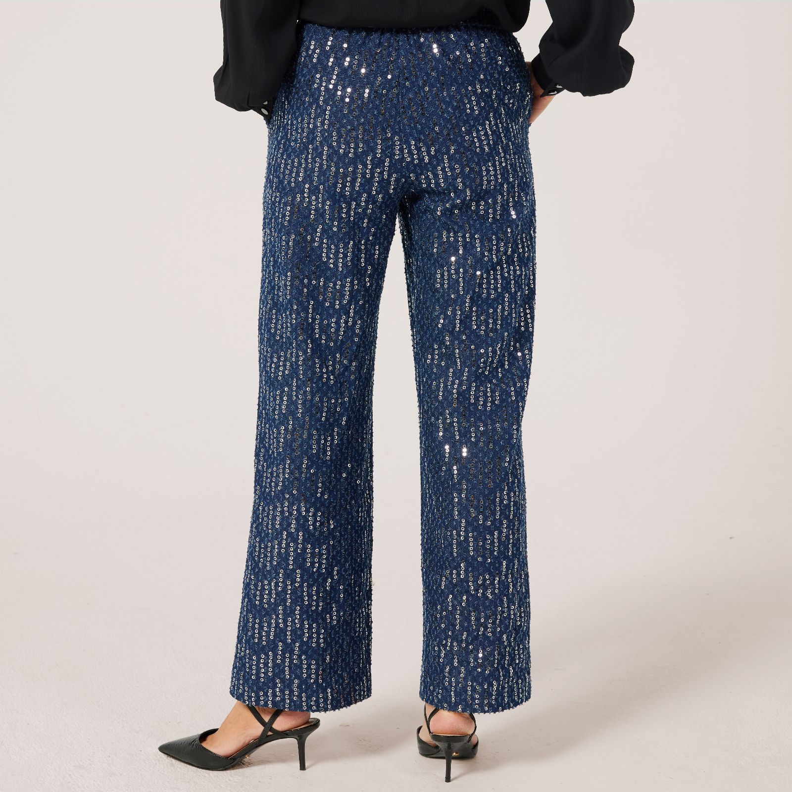 Stand out in the Helene Berman dark denim sequin trousers, where classic denim meets a touch of sparkle for an effortlessly chic party look. Perfect for evenings out or celebratory gatherings, their relaxed fit and elasticated back waist offer comfort without compromising on style. Pair them with a sleek blouse and heels for a polished ensemble that's ready to turn heads on the dancefloor.