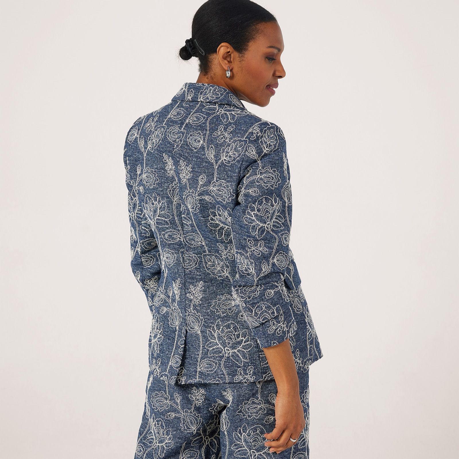 Strut your style into the spotlight with the Helene Berman embroidered and sequin blazer, where classic tailoring meets a touch of sparkle. Crafted in light denim with intricate embellishment, this semi-fitted piece is perfect for adding glamour to both day and evening looks. Wear it to elevate your workwear or pair with slim trousers and heels for a chic dinner ensemble.