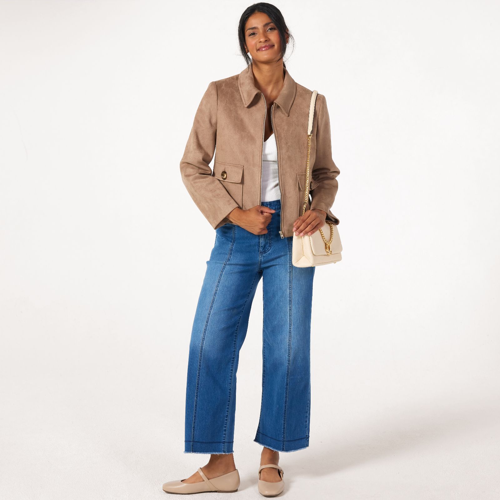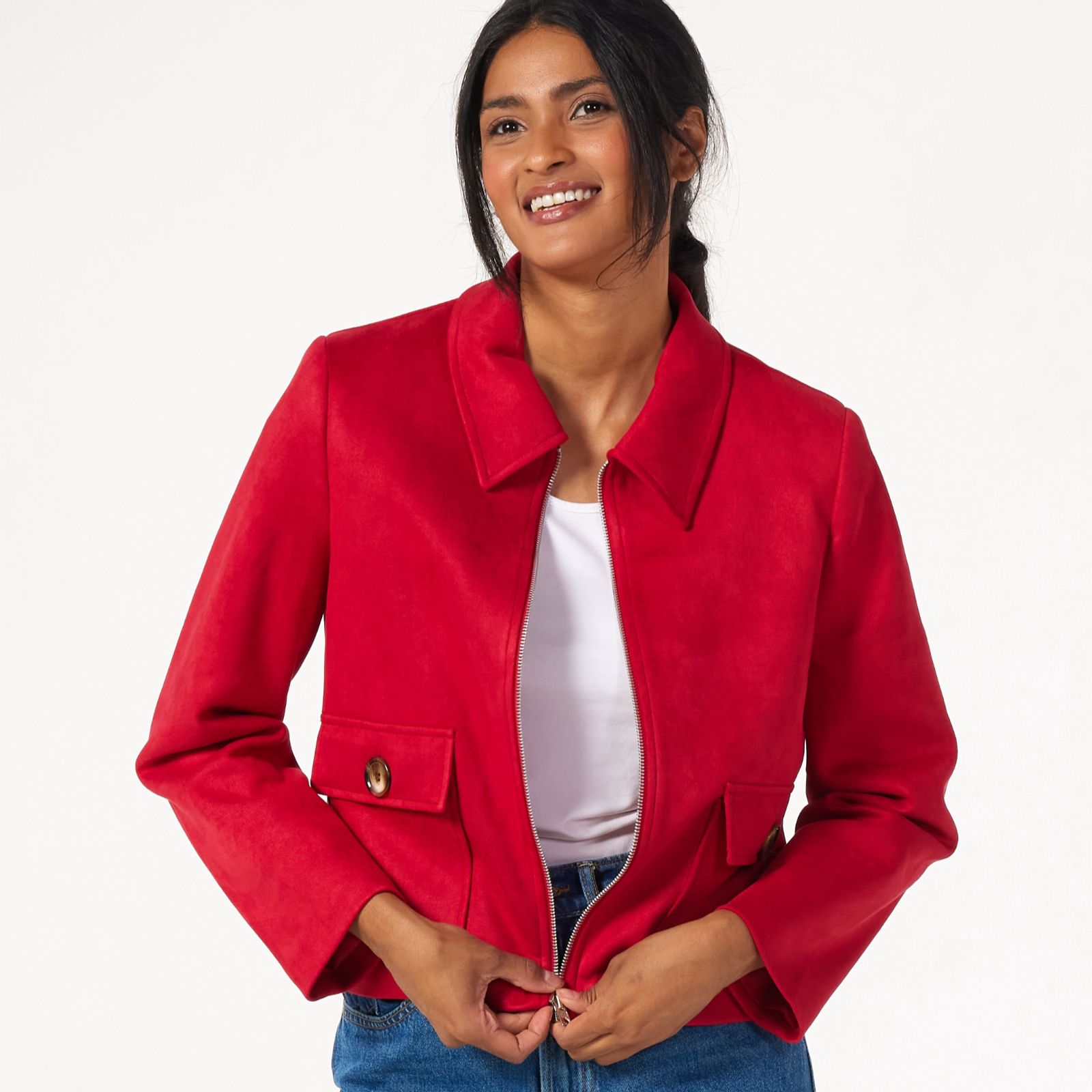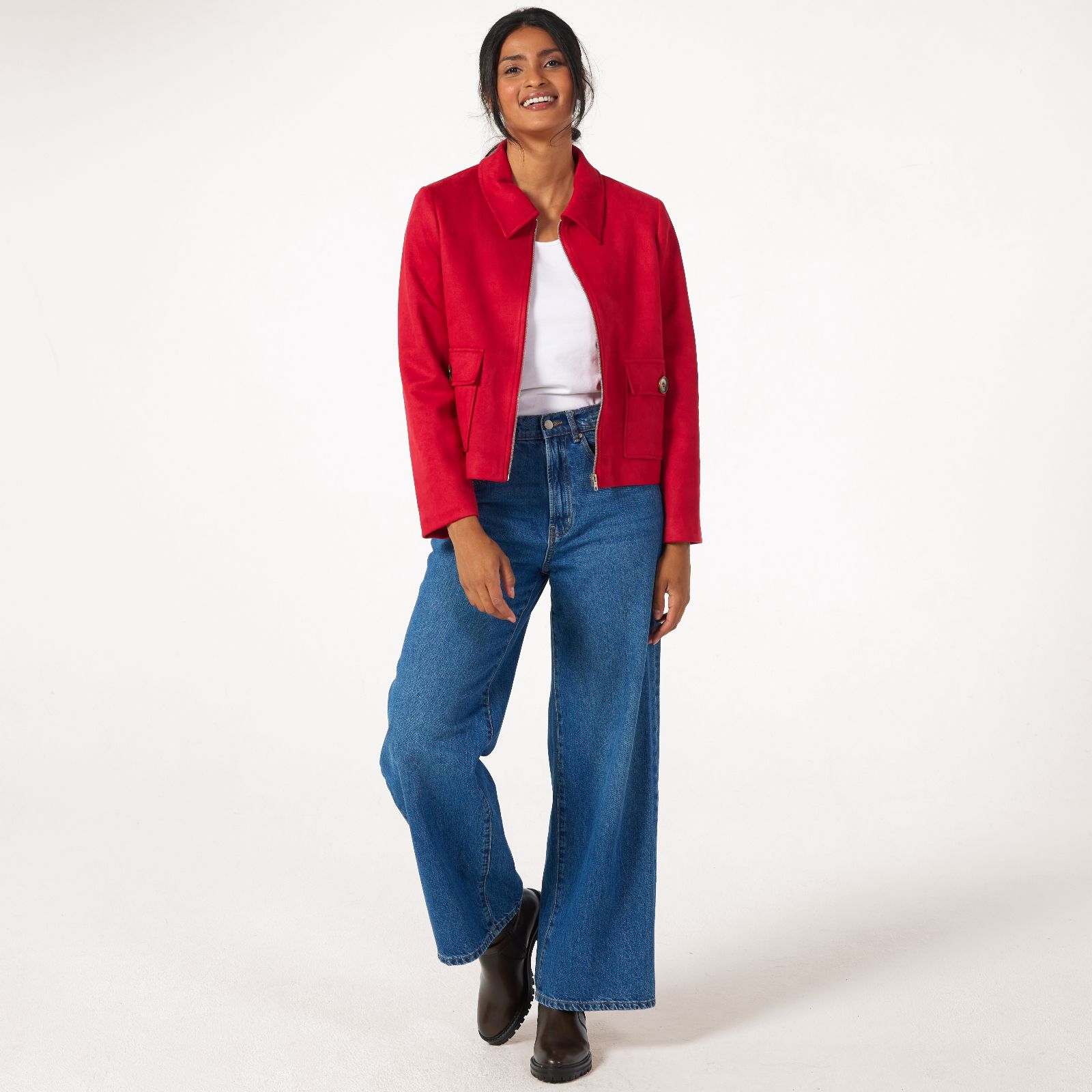 Effortlessly chic, this faux suede zip jacket with collar from Helene Berman brings a touch of luxury to any outfit, thanks to its refined design and classic patch pockets with flaps. Perfect for everything from casual lunches to evening outings, its fully lined finish ensures both comfort and polish. Try pairing it with tailored trousers or your favourite jeans for a smart, versatile look.