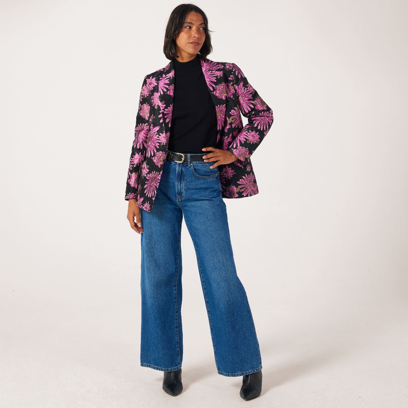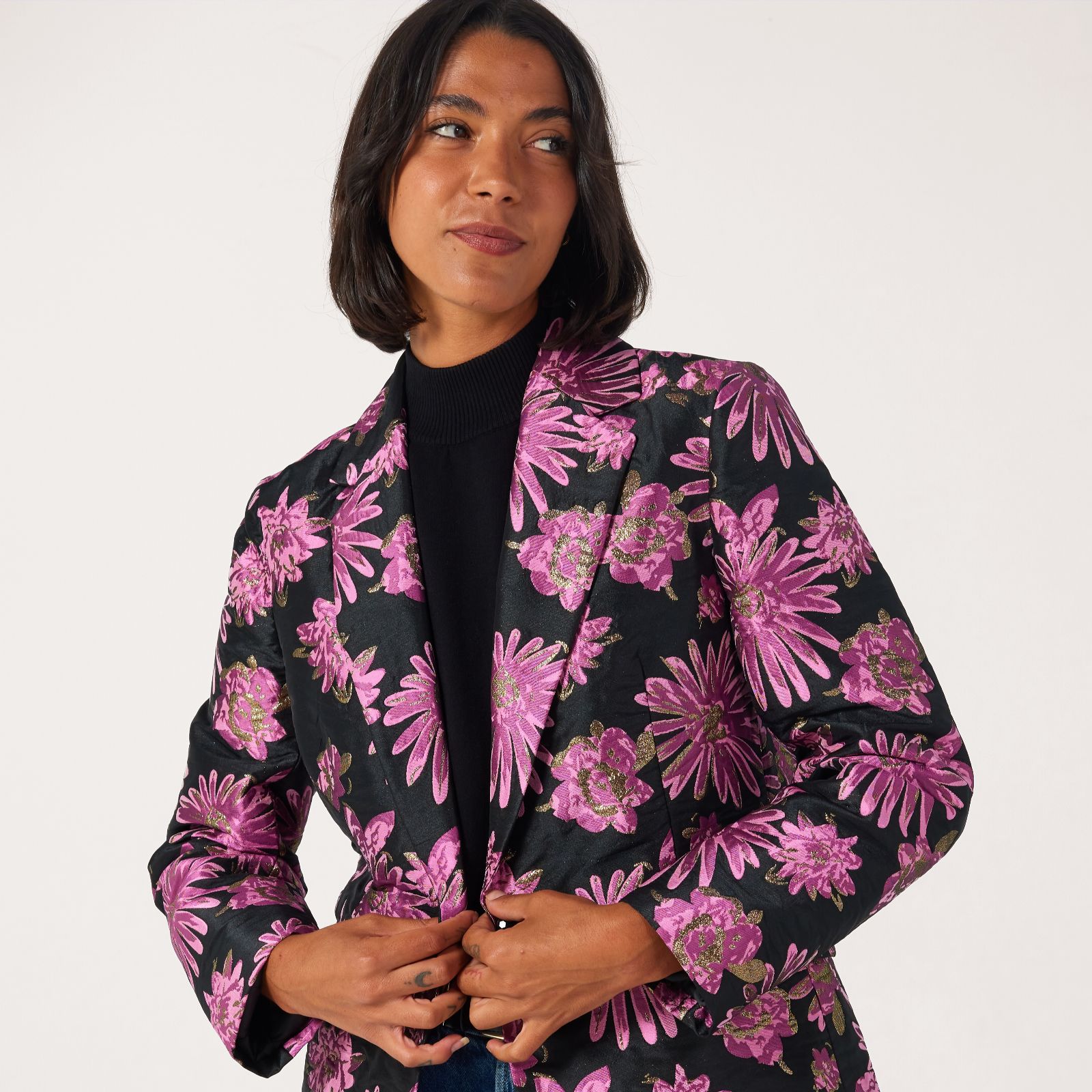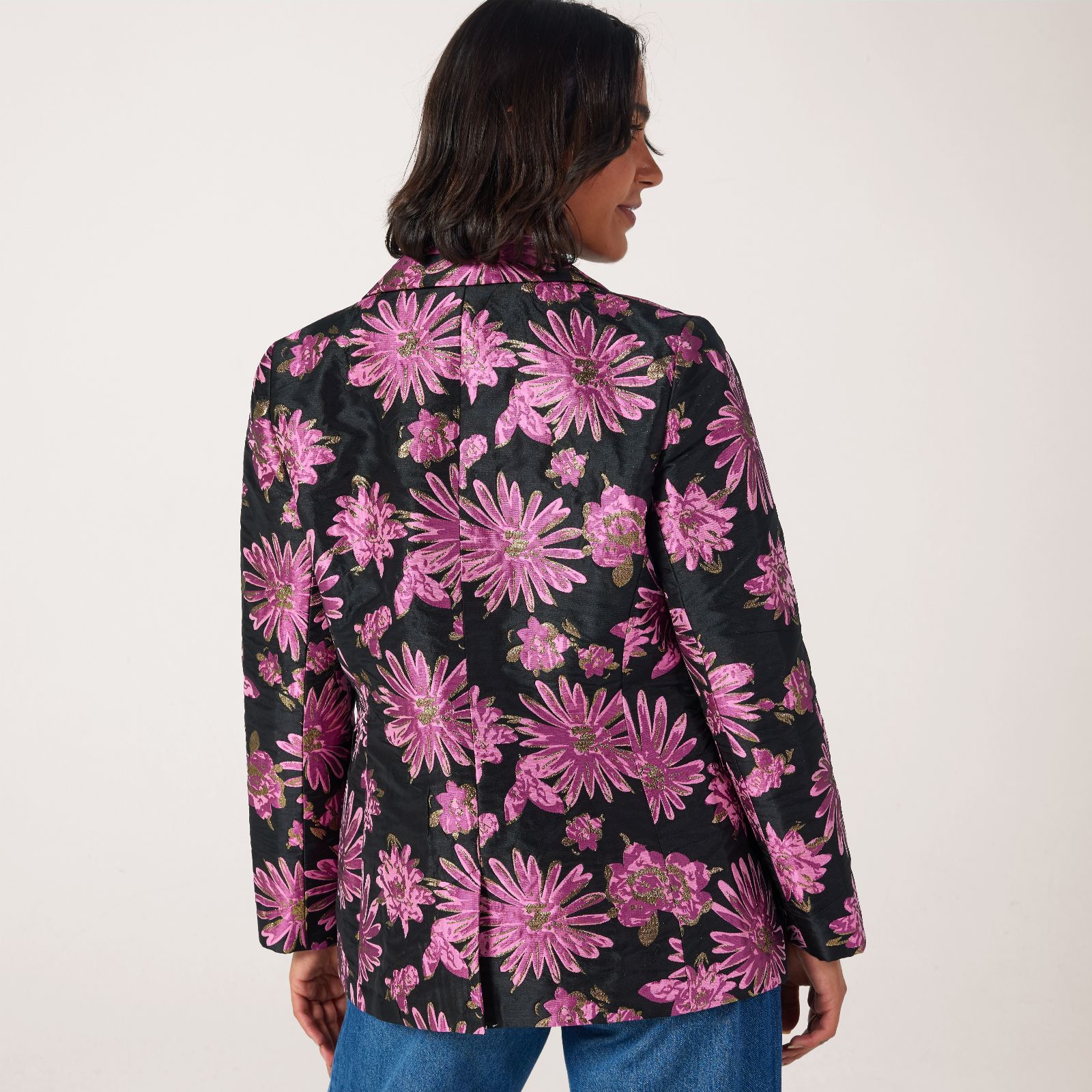 Evoke timeless elegance with the exquisite floral jacquard blazer from Helene Berman, woven with a touch of Lurex thread for a subtle shimmer. Crafted with a single-button closure, piped flap pockets and a back vent, it blends refined design with everyday comfort. Perfect for elevating workwear, dinner ensembles or special events, it pairs beautifully with tailored trousers or a sleek pencil skirt for a polished, confident look.
