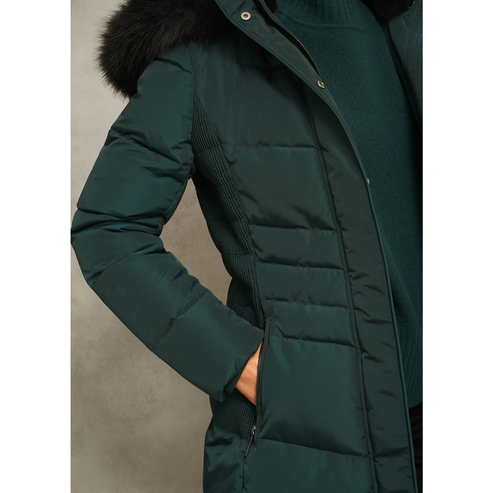 Bring a touch of elegance to cold-weather dressing with the Jaymie puffer jacket from Hobbs London. With its shaping waist panels, ribbed sides and a removable faux fur hood, this shower-resistant coat with fleece-lined pockets is perfect for brisk winter walks, outdoor gatherings or the daily commute. Style it with slim-fit trousers and ankle boots for a polished yet practical look that keeps you warm without compromising on chic appeal.