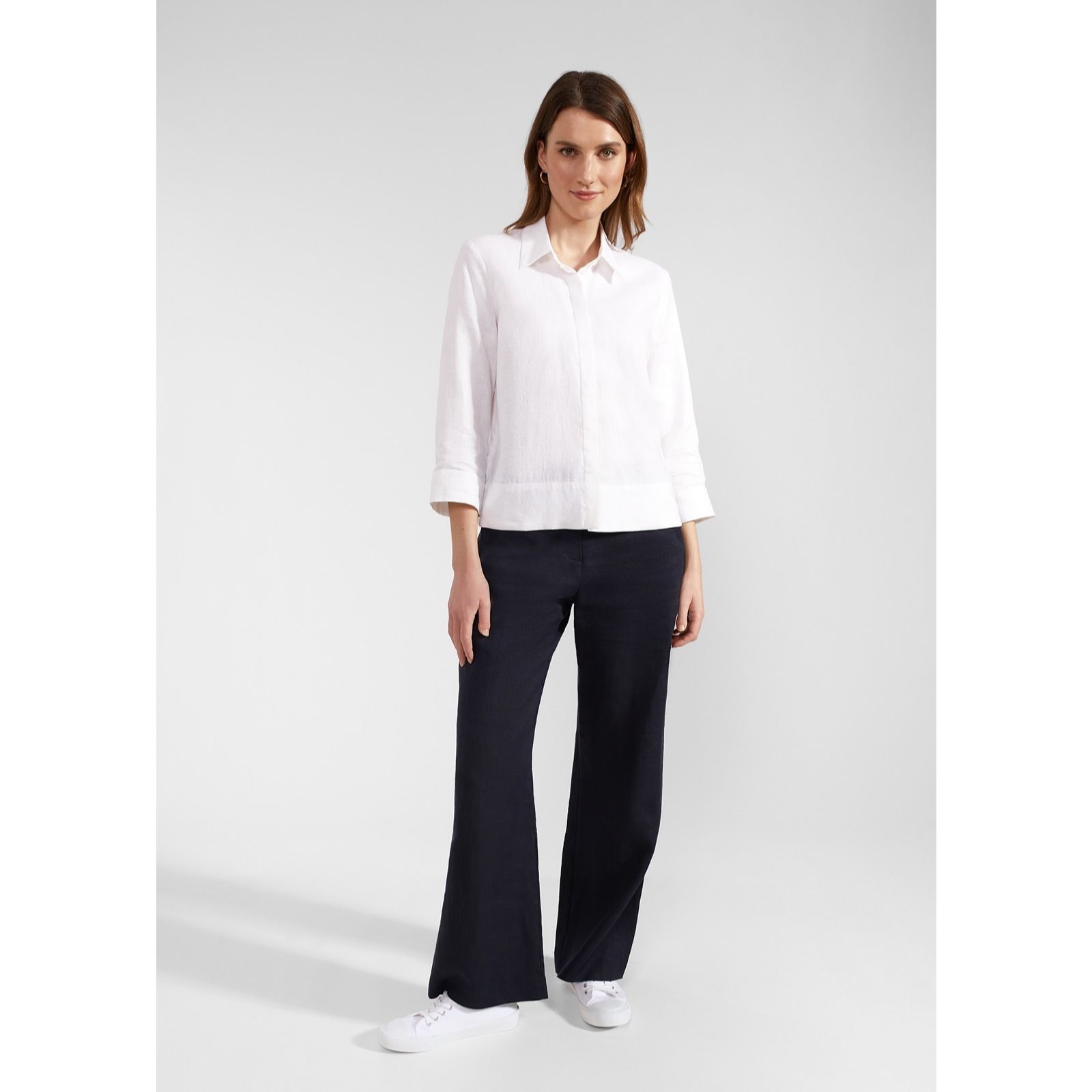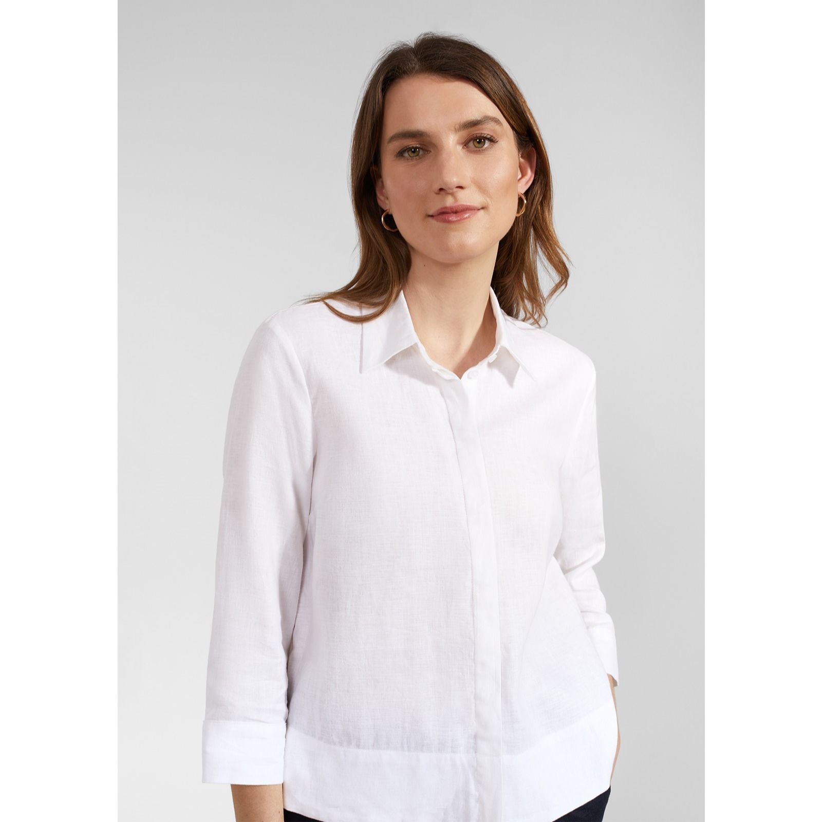 Get warm weather ready in the Nita linen shirt from Hobbs London, your ultimate go-to for relaxed days. This wardrobe staple boasts a naturally breathable fabric and a relaxed silhouette, making it ideal for easy, breezy styling. Featuring a concealed button-up fastening, three-quarter length sleeves and side splits, it offers both comfort and style in equal measure. Pair it with tailored trousers for a smart casual look or with jeans for a laid-back vibe.