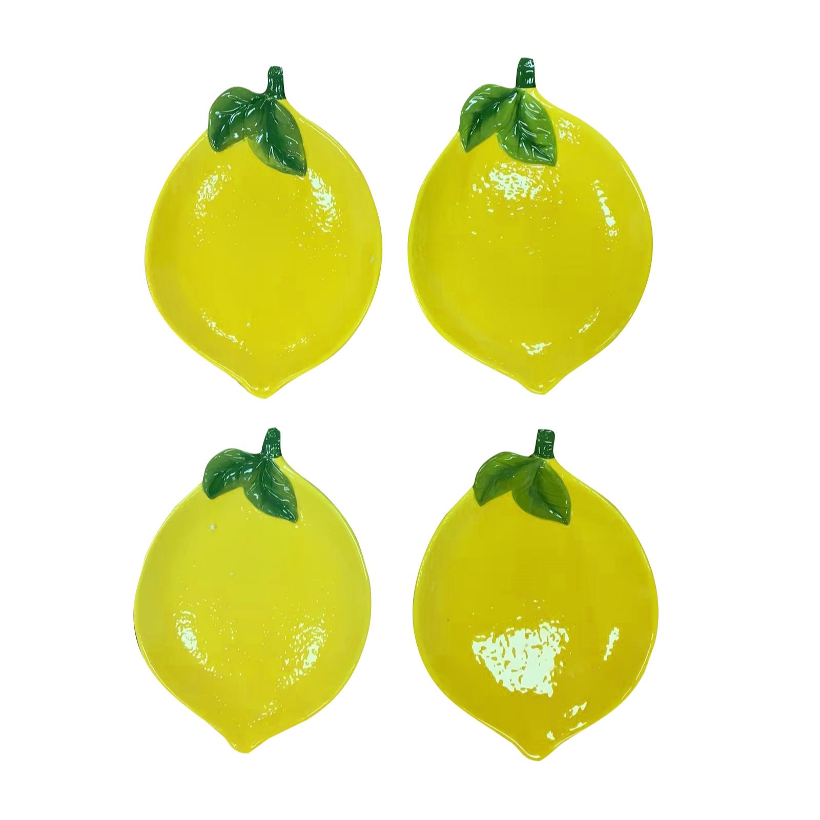 Add a splash of citrus charm to your dining table with the My Home Stories set of four Lemon Fruit Plates. These delightful plates feature a whimsical lemon design that brings a touch of summer to any meal. Perfect for serving appetizers, desserts or as eye-catching decor pieces.