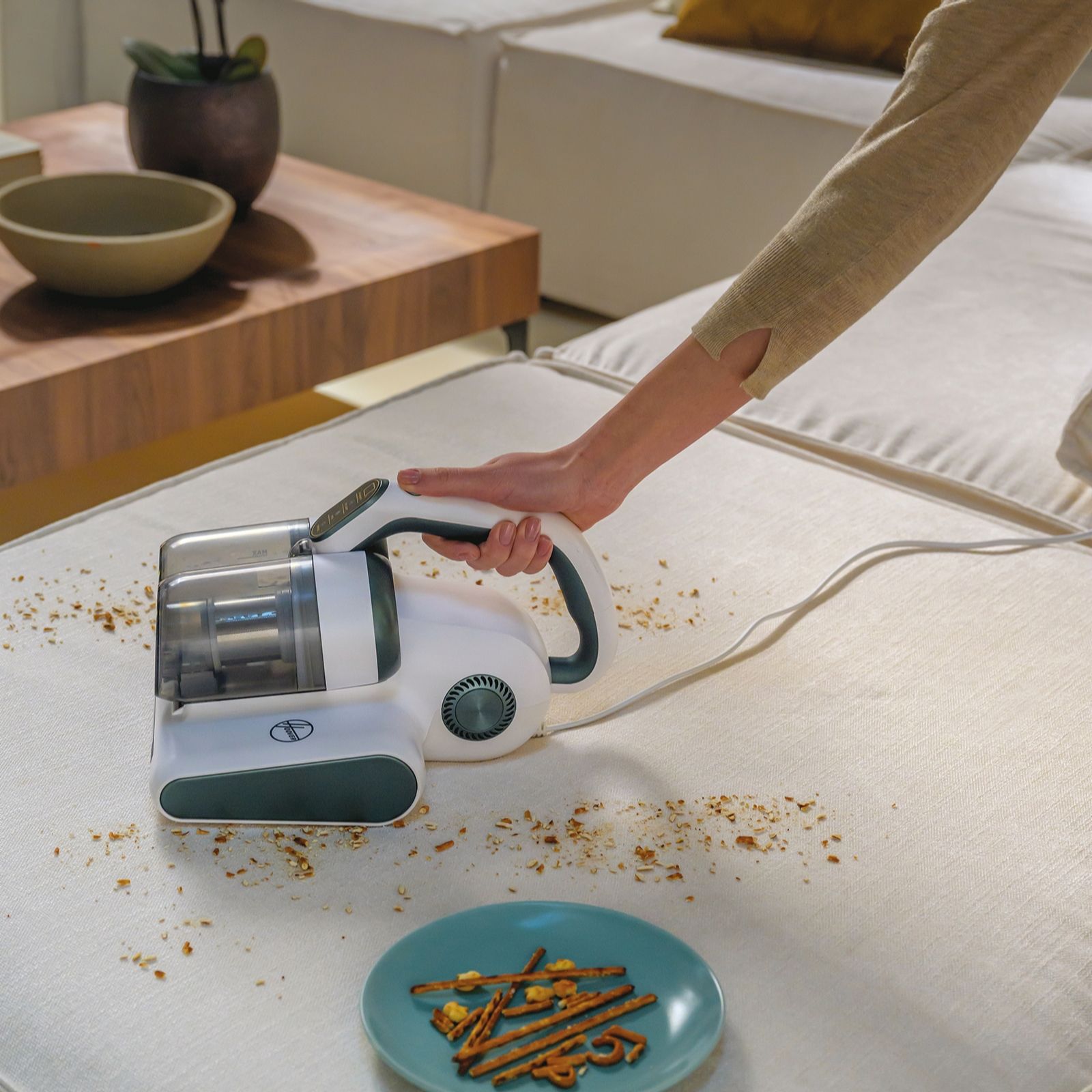 Clean smarter, not harder, with Hoover's 4-in-1 corded handheld UV mattress vacuum cleaner. Designed to help your cleaning routine, it features four auto functions, including UV Light and drying, plus a smart dust sensor that turns green when surfaces are clean. Parents and pet owners can relax as it cleans cots, pet beds and more. Manoeuvring from mattress to headboard is a breeze with its lengthy 5m cord and ergonomic shape, ensuring this vacuum is a deep cleaning ally for all your soft furnishings.
