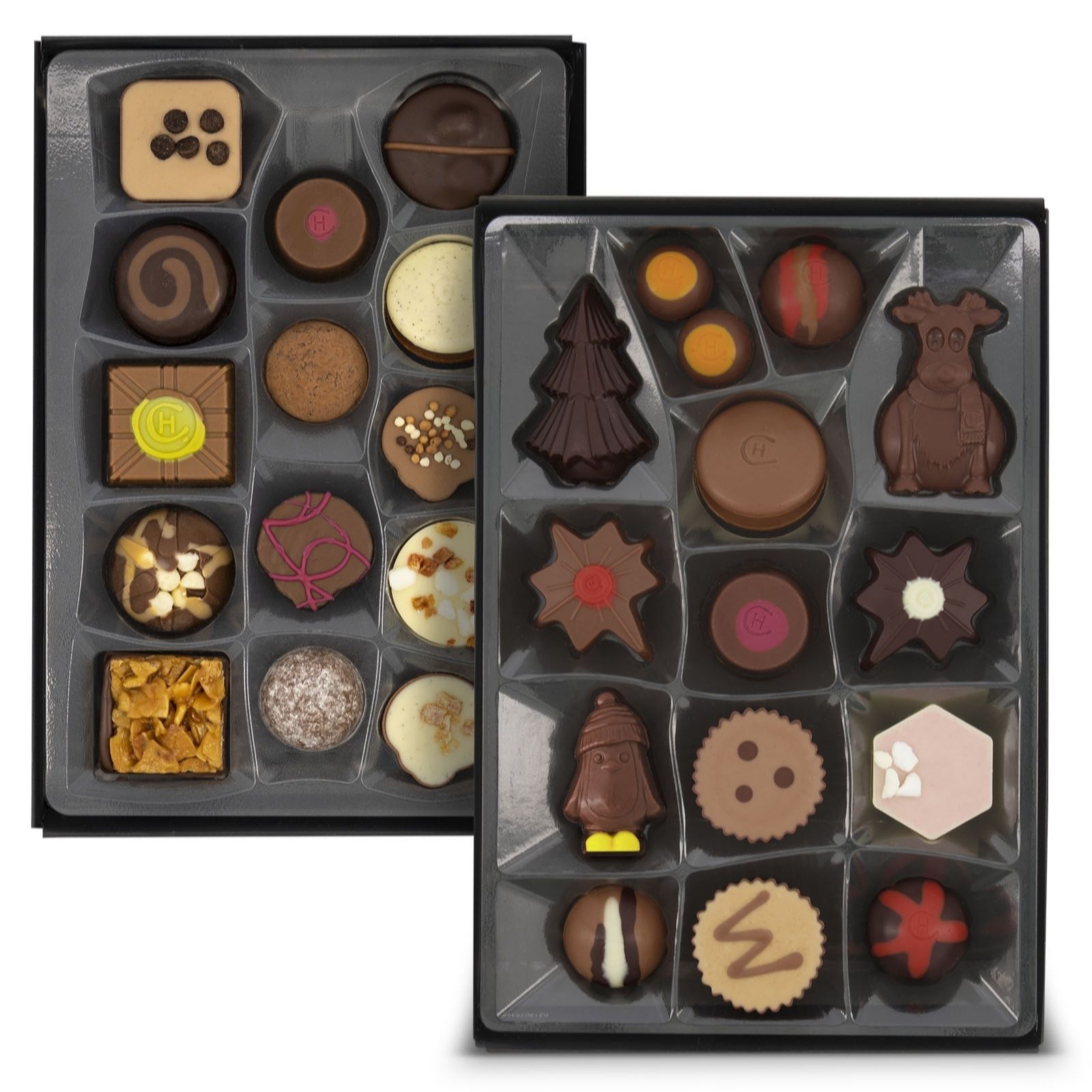 Indulge in the festive magic with this set of two Christmas H Boxes from Hotel Chocolat. This delightful duo includes an Everything H-Box featuring 14 of Hotel Chocolat's bestselling chocolates, hand-picked for a perfect mix of flavours and a Classic Christmas H-Box with 14 festive favourites like truffles, caramels and pralines. Perfect for sharing with loved ones during the holiday season, these boxes are a wonderful treat for any chocolate lover and make an ideal gift.