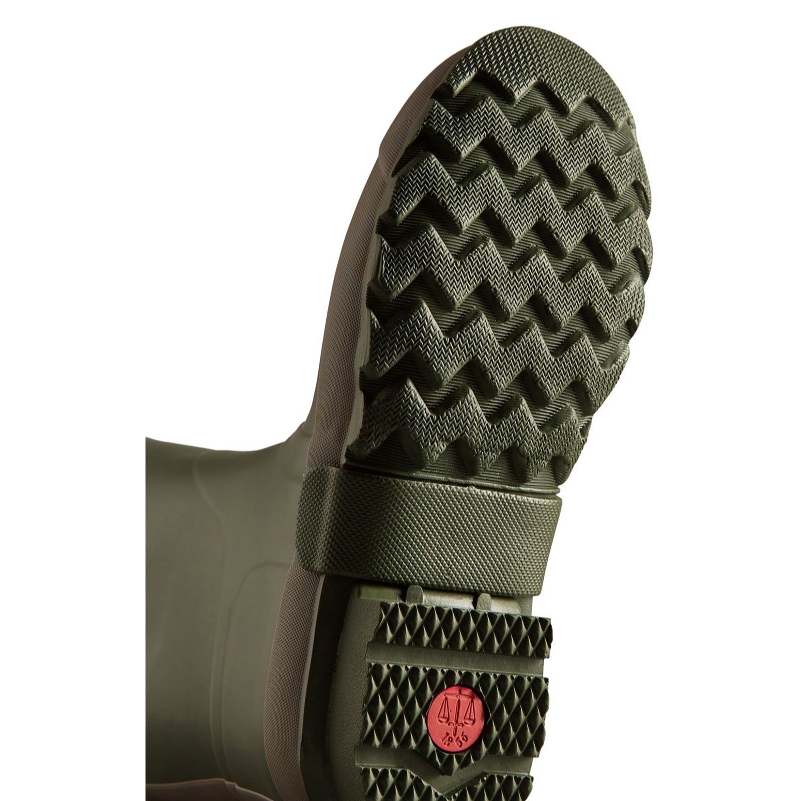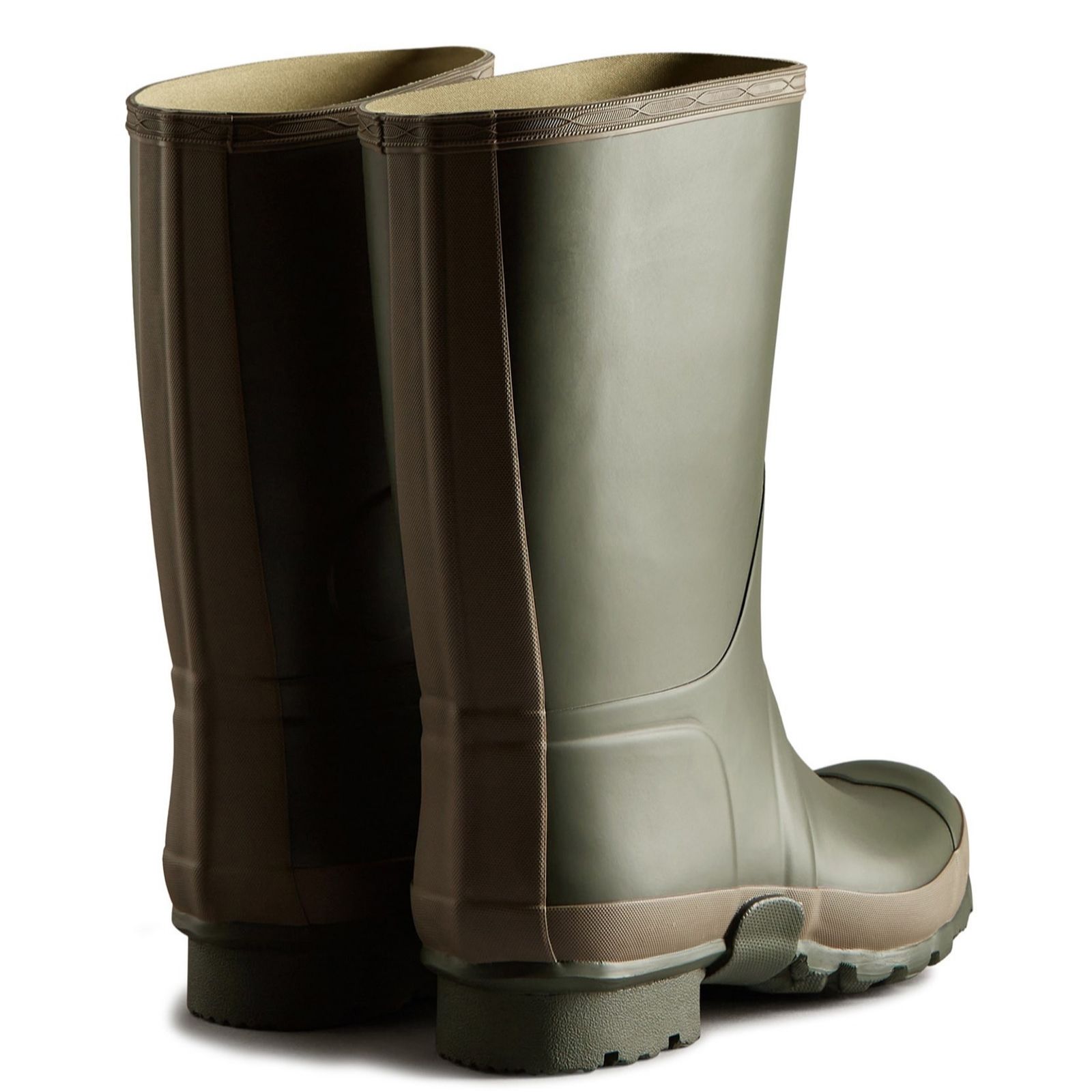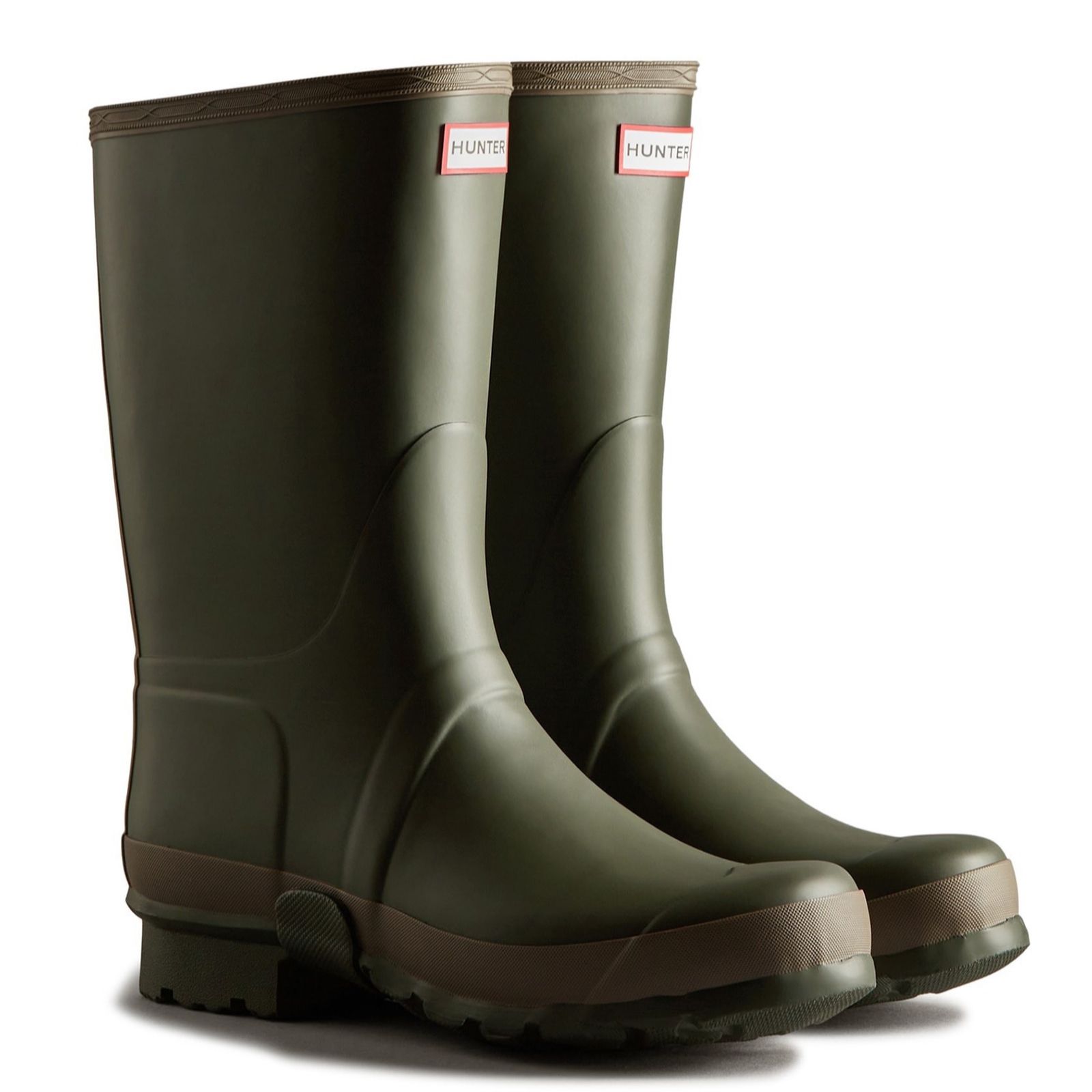 Tackle the garden with confidence in the men's Gardener Wellington boots from Hunter, crafted for those who take their outdoor tasks seriously. Designed with a dig pad at the centre of the sole and a thickened ankle patch, they offer extra protection when using spades and forks, while the zigzag sole ensures high-grip and easy mud-release. Perfect for laying new lawn or tending to the allotment, they pair well with durable work trousers and a waterproof jacket for all-weather readiness.
