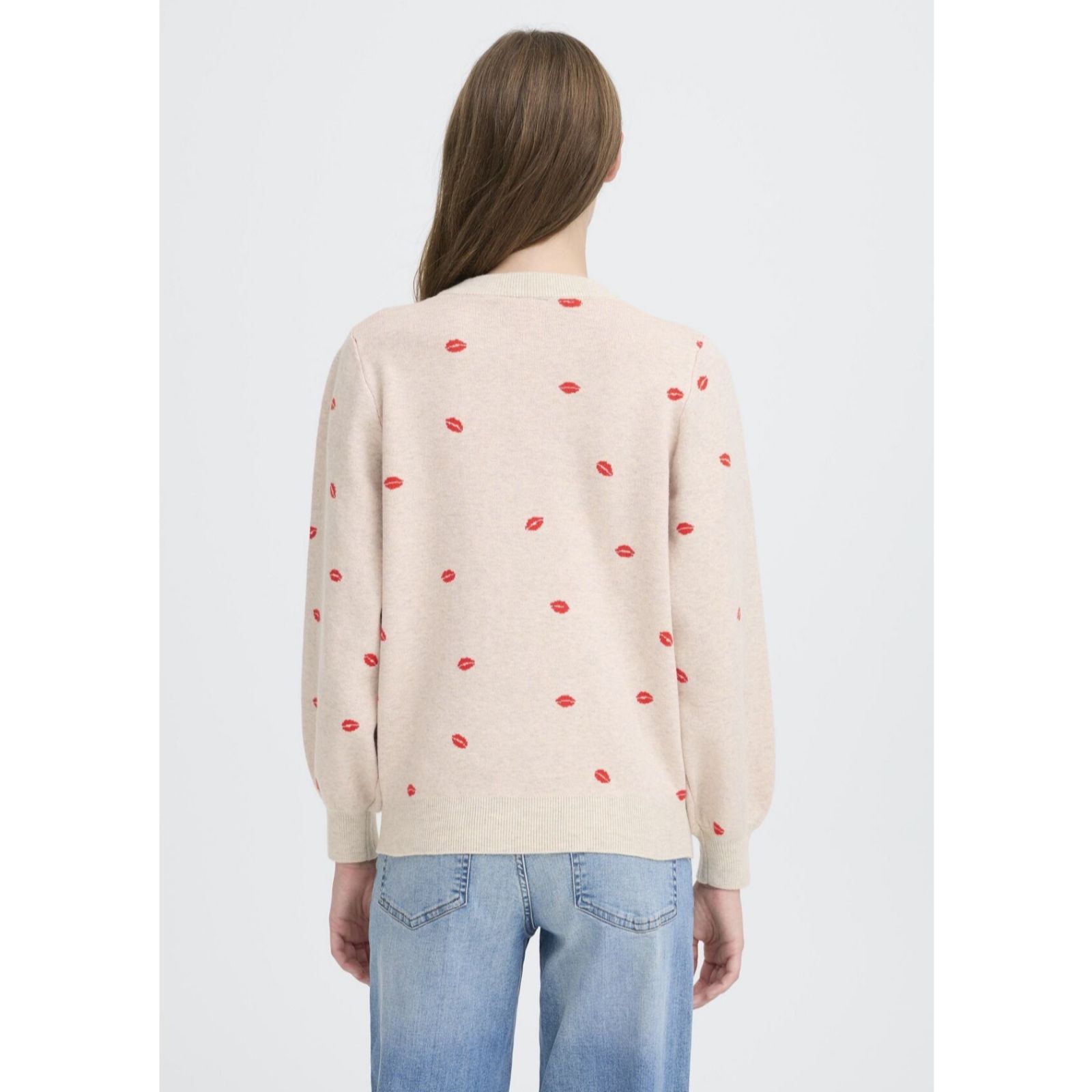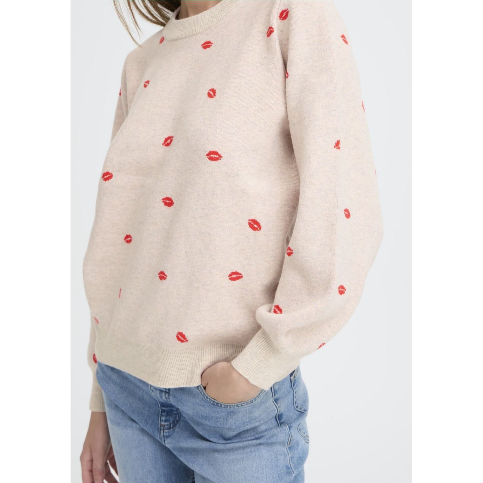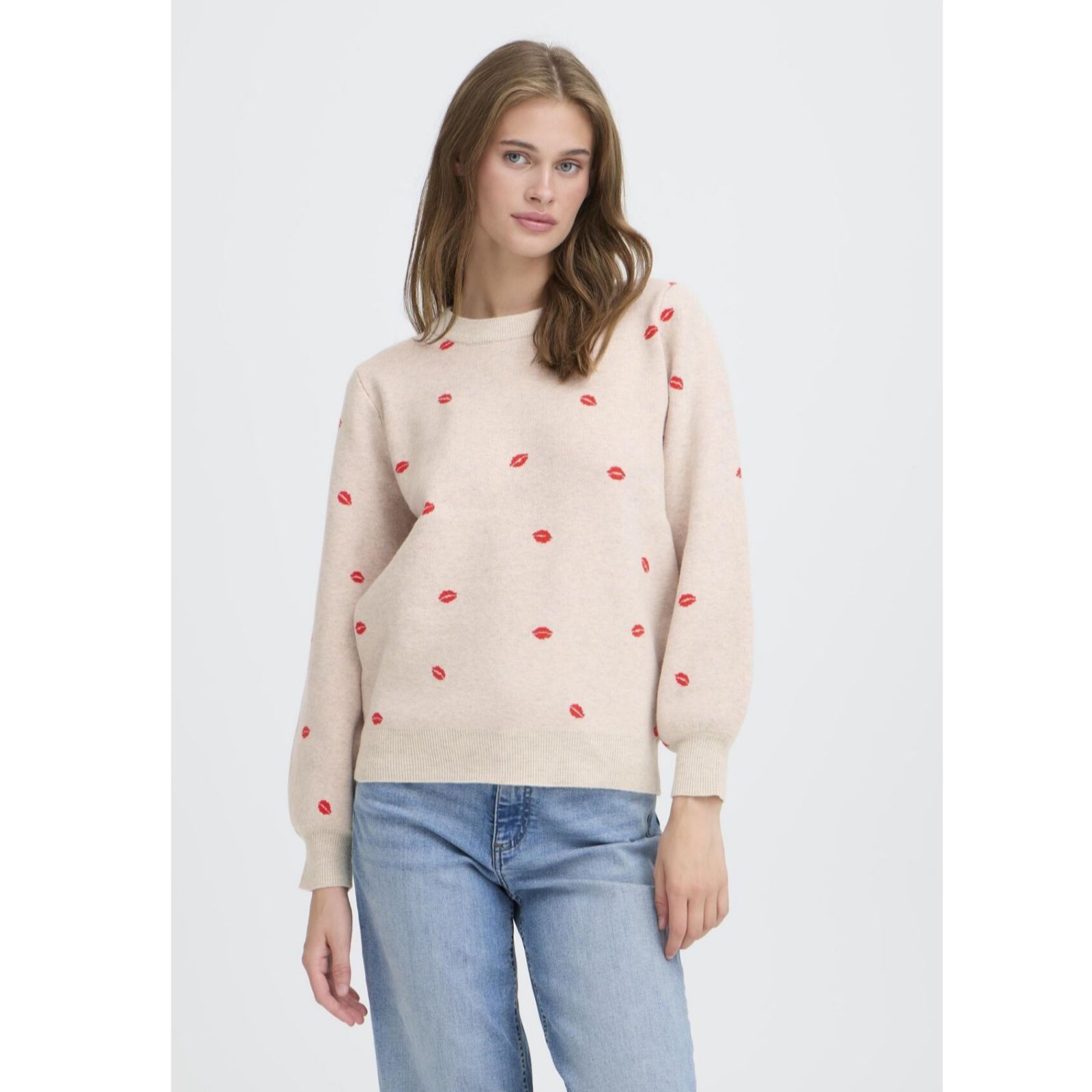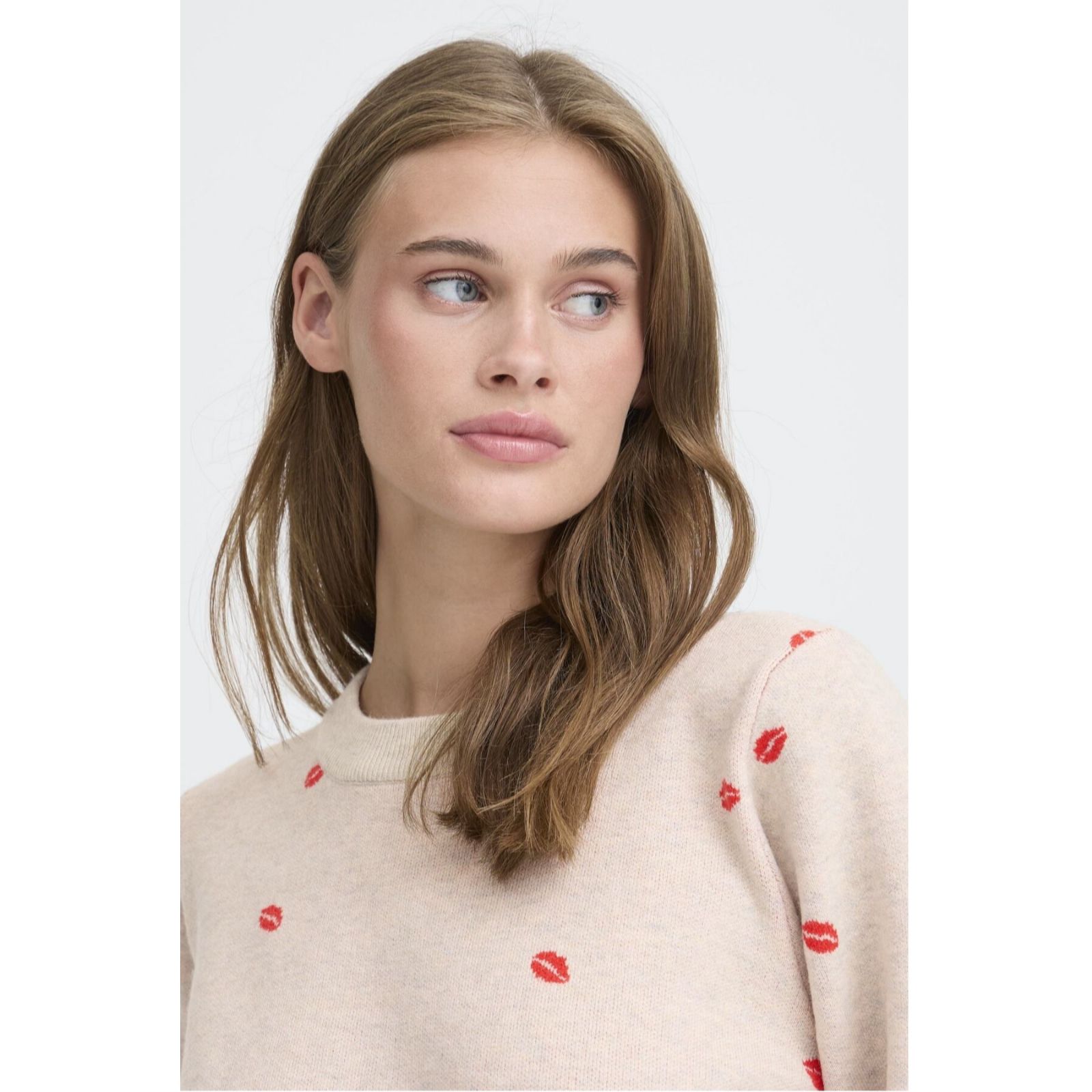 Bring a playful touch to your wardrobe with the Brielle Lips long sleeve jumper from ICHI. This loose fit knit features a quirky lips motif, making it perfect for adding a hint of fun to everyday outfits. Whether you're heading out for coffee or relaxing at home, its regular length and comfy design offer effortless style. Try pairing it with your favourite jeans or layer over a midi skirt for a casual, laid-back look.