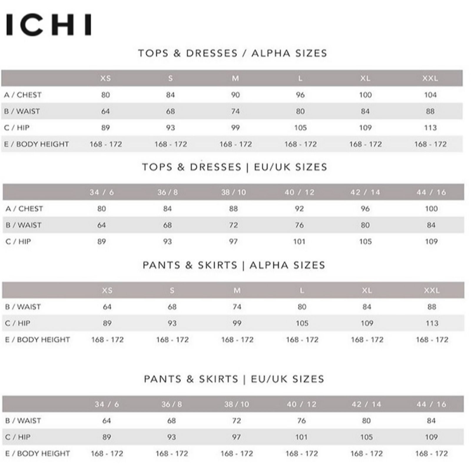 Waist: 8: 64cm (25.2"), 10: 68cm (26.8"), 12: 72cm (28.4"), 14: 77cm (30.3"), 16: 82cm (32.3")