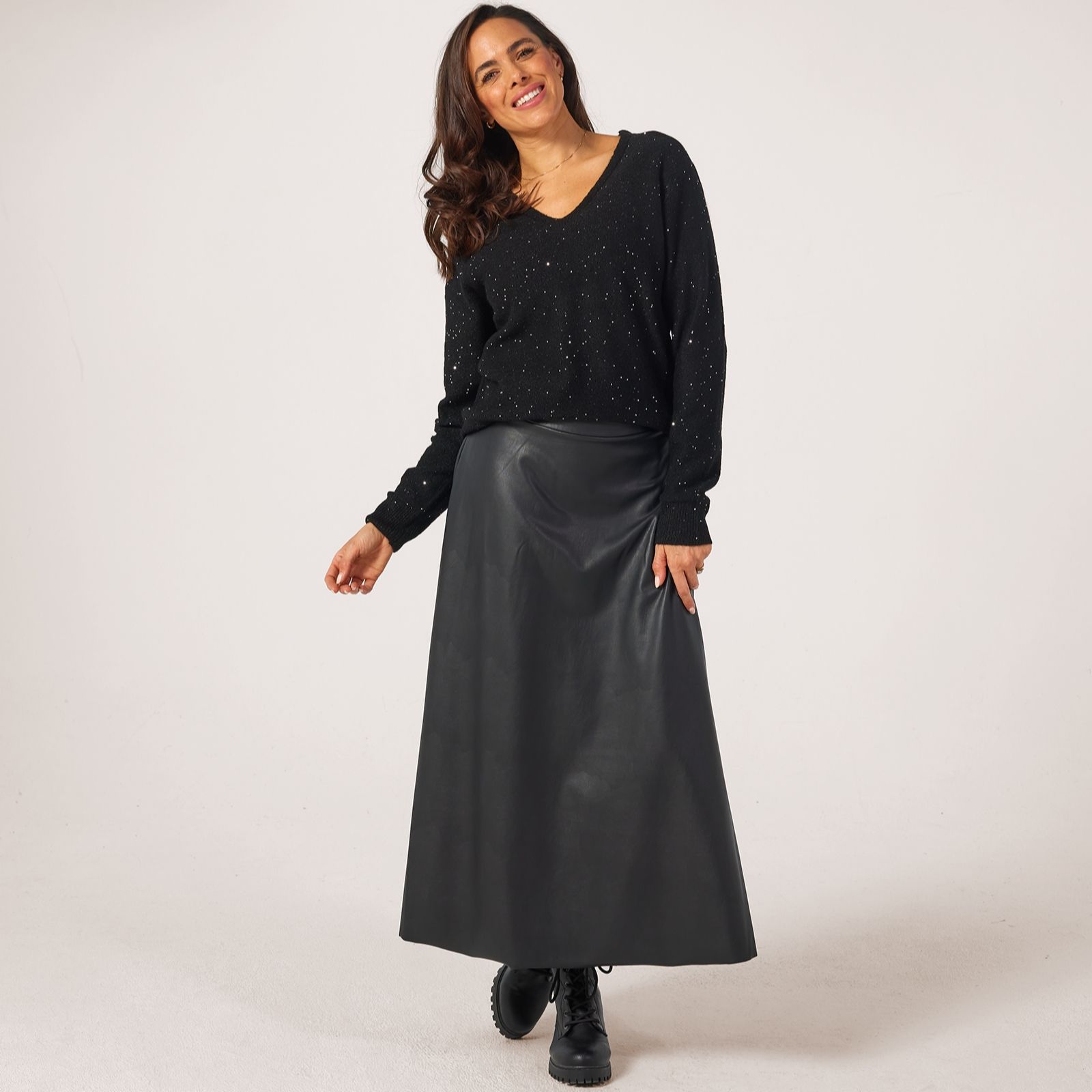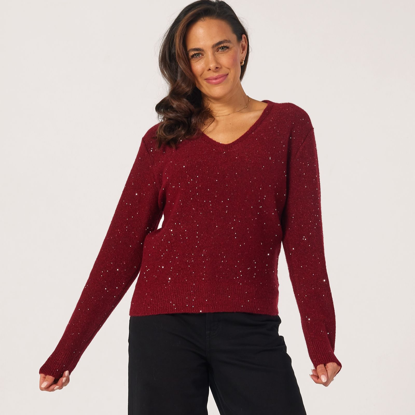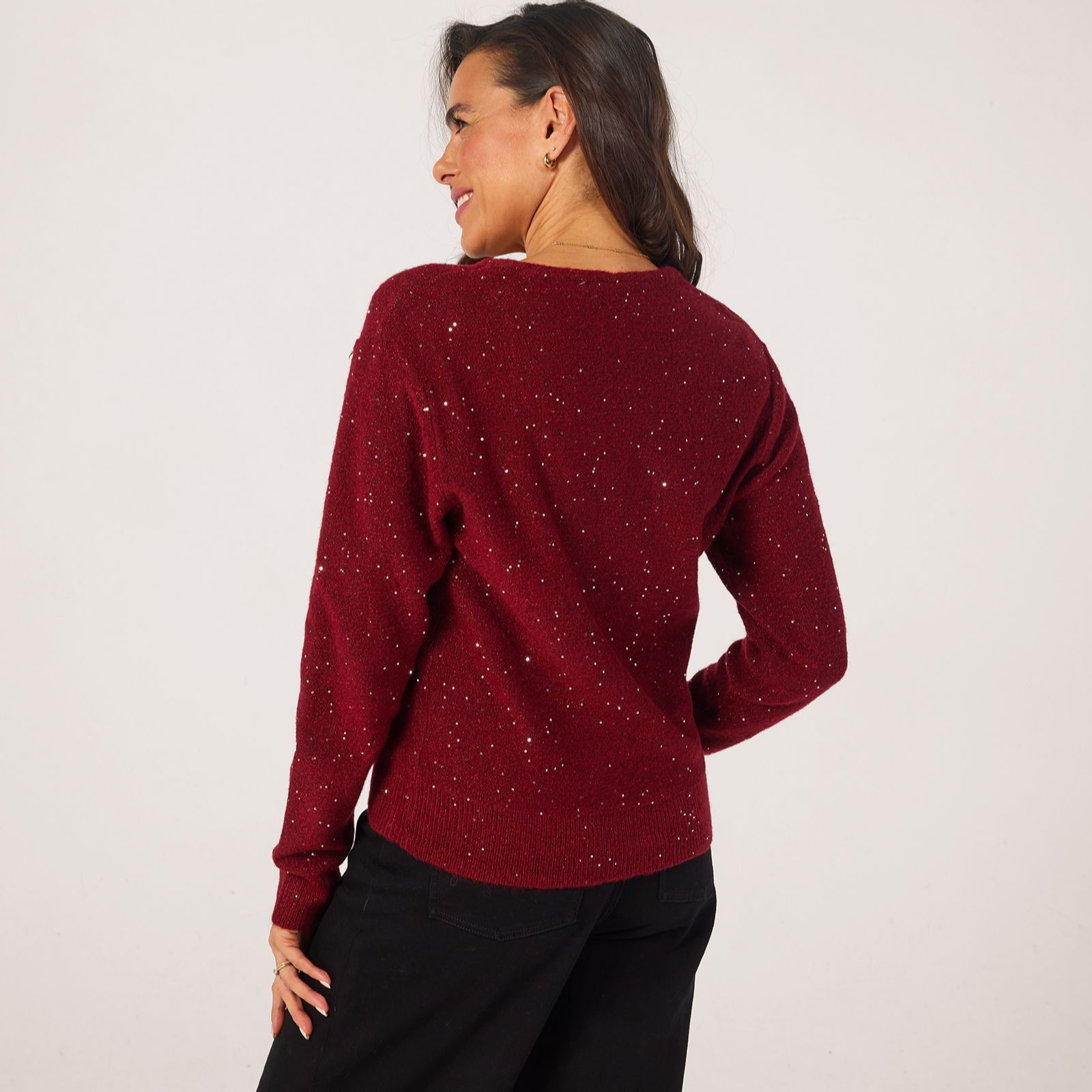 - Features subtle sequin embellishments and a loose fit