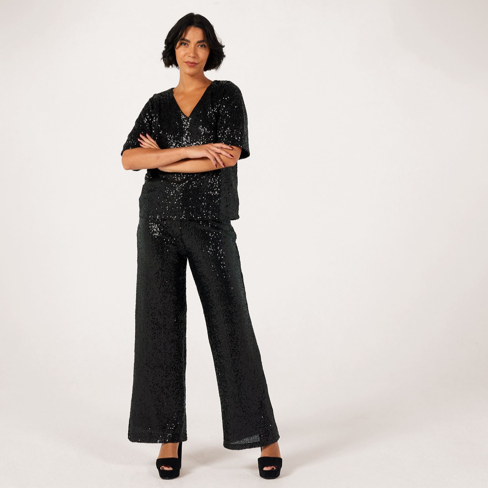Bring a touch of modern glamour to your wardrobe with the Fauca sequin trousers from ICHI, where a sleek wide leg and sparkling knitted finish set the scene for standout style. Whether youre heading to a festive gathering, dancing the night away or simply adding some shimmer to your everyday, these trousers blend comfort and impact. Try teaming them with a classic white shirt and strappy sandals for a chic, contemporary look.