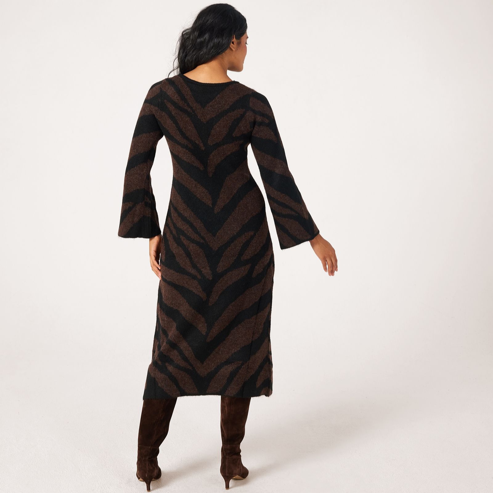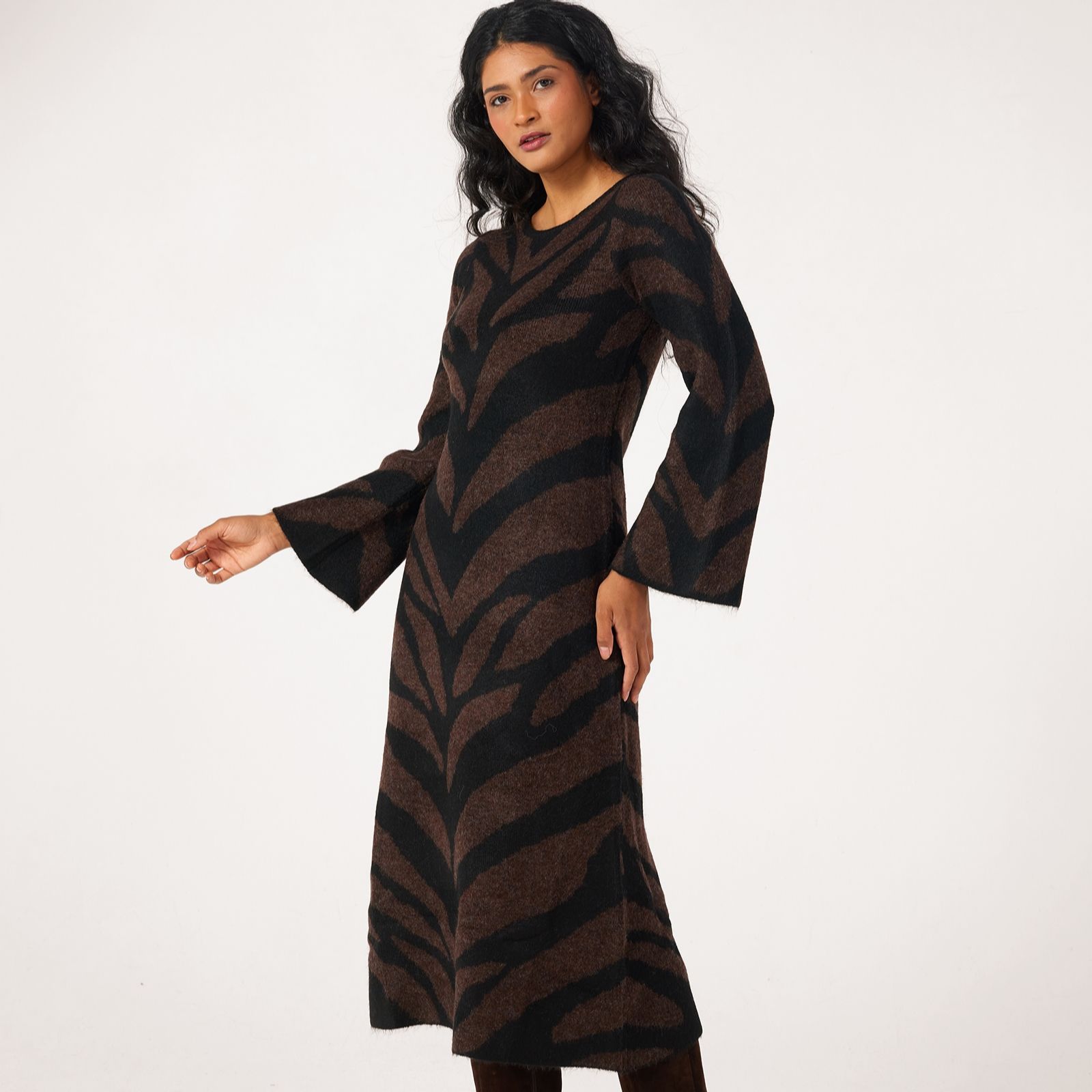 Unleash your wild side with the Kamora midi dress from ICHI, showcasing a striking animal print in a cosy knitted design. Its regular fit and long sleeves make it a chic yet comfortable choice for everything from casual brunches to evening get-togethers. Pair it with ankle boots and a leather jacket for an effortlessly stylish look that works through the seasons.