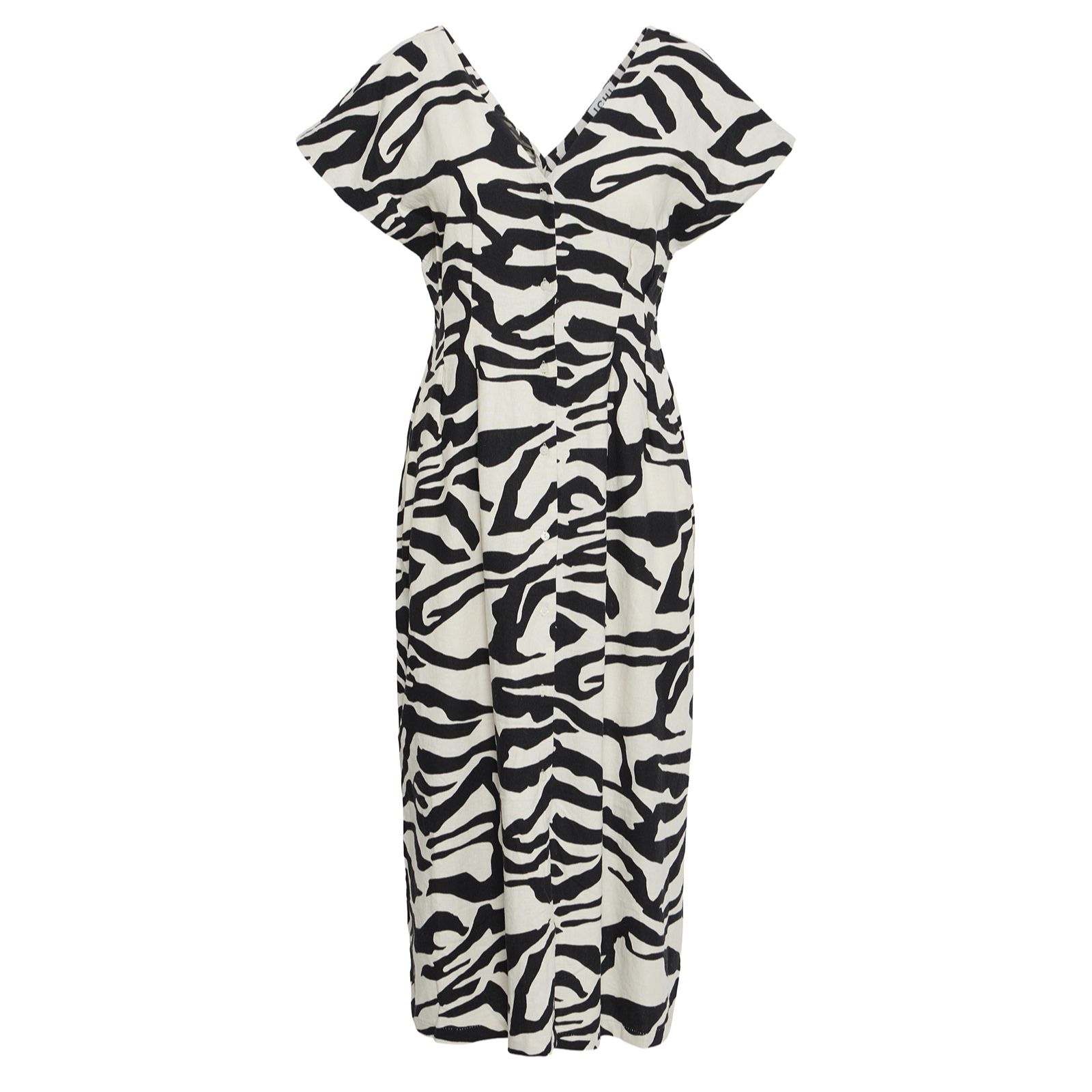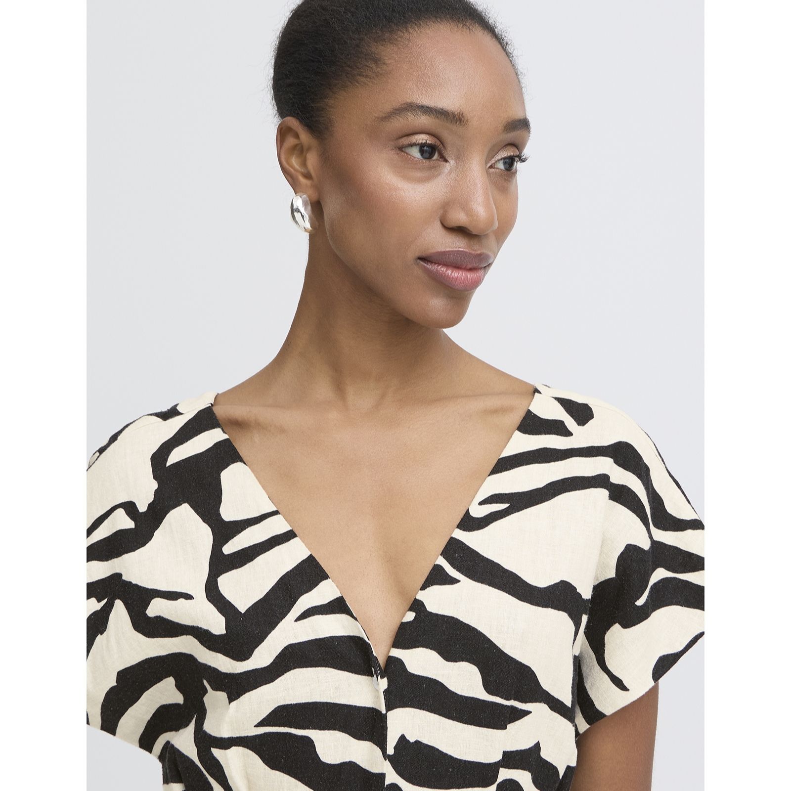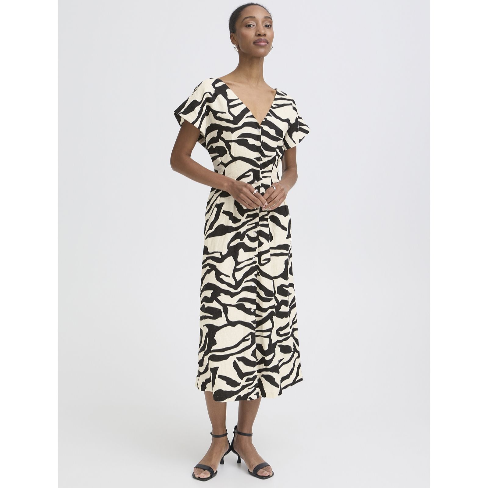 Rule any day with effortless flair in the Linno linen blend printed dress from ICHI, a midi-length style that blends a relaxed silhouette with a bold animal print for an easy yet confident look. Perfect for workdays, weekends or sunny getaways, its semi-fitted shape offers comfort with polish. Pair this statement dress with sandals for casual charm or elevate with heels and a clutch for evening appeal.