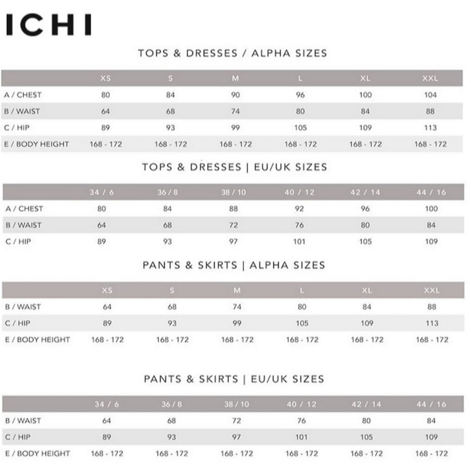 Inseam (all sizes): 76cm (29.9")