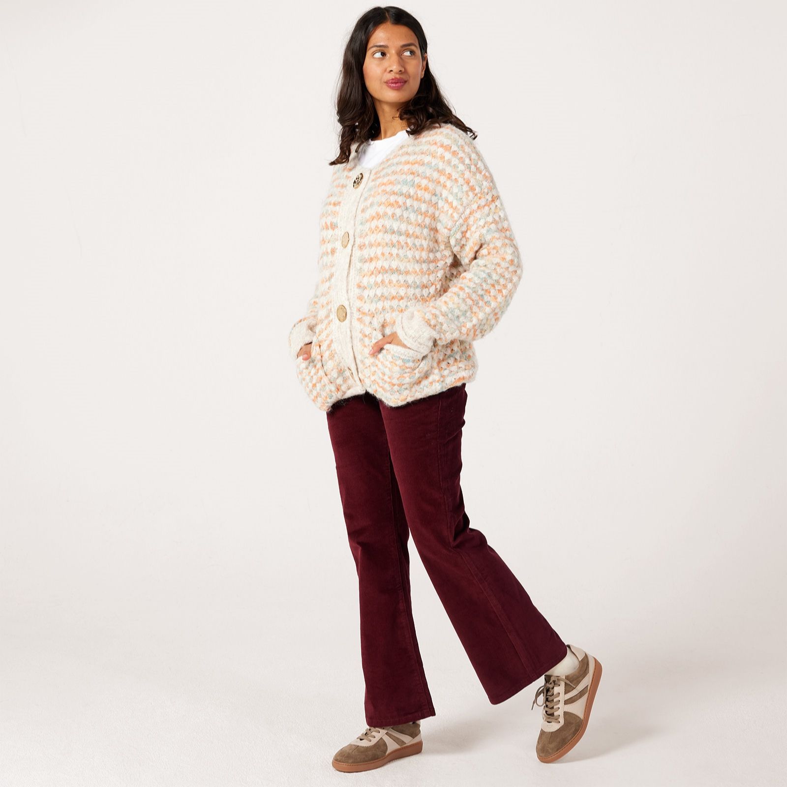 Bring texture and warmth to your wardrobe with these fine cord trousers from Izabel London. Featuring a classic button fastening and soft cord finish, they offer a timeless look that works for both casual outings and smarter settings. Style them with a crisp shirt for the office or pair with a cosy knitted jumper for weekend wear - a versatile piece you'll reach for season after season.