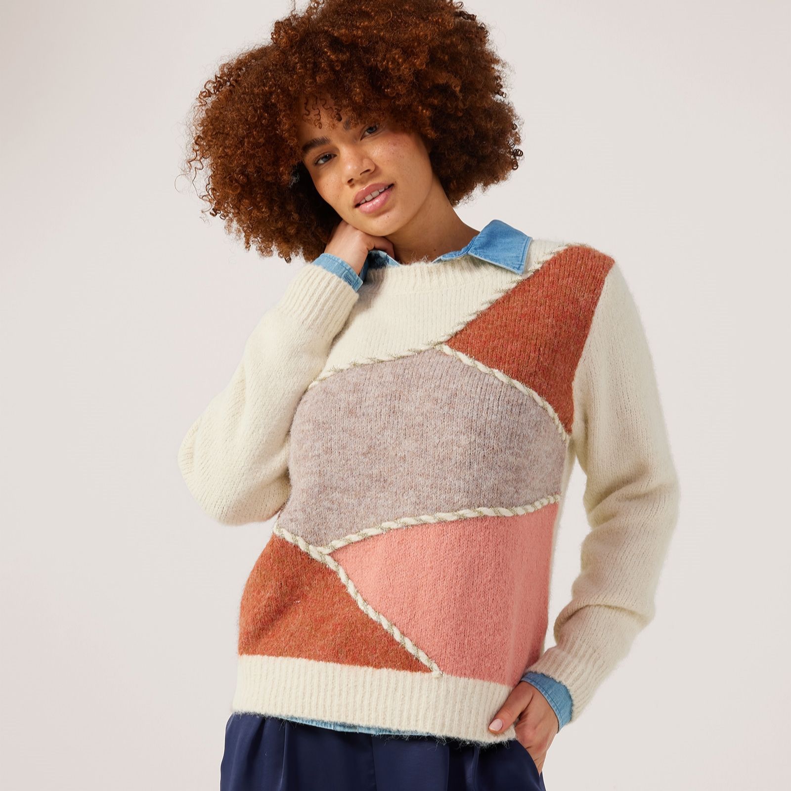 Add a touch of contemporary flair to your wardrobe with this asymmetric metallic stitch jumper from Izabel London. This stylish design features a unique patchwork design with foil edge detailing that adds a subtle shimmer, perfect for elevating your everyday outfits. Ideal for casual outings or cosy evenings, this jumper offers both comfort and style. Pair it with your favourite jeans and ankle boots for a chic, laid-back look.